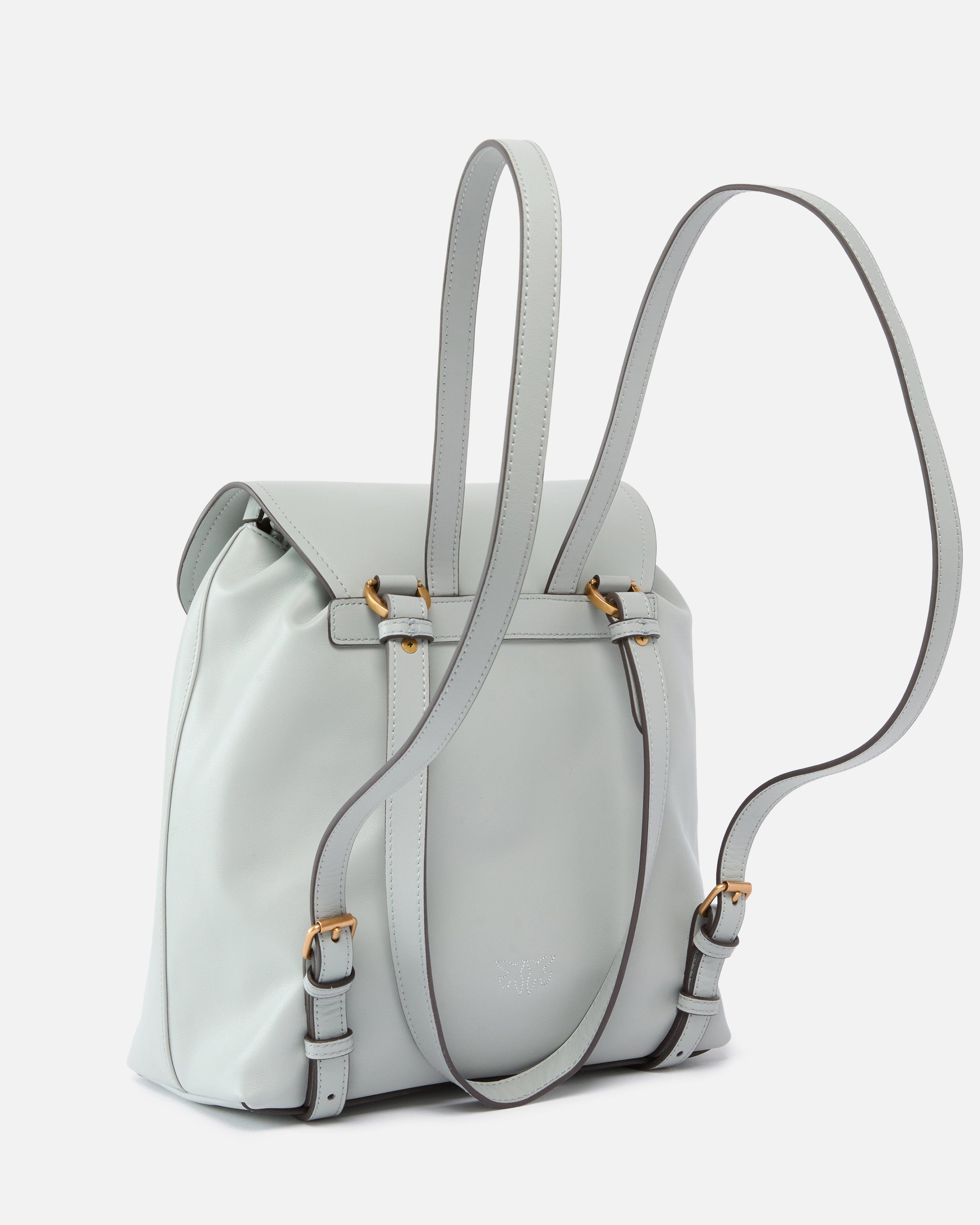 Medium-sized Saddle Backpack with convenient flat design, made from soft leather and customised with decorative metal rings—by the outer magnetic-button closure—that form the iconic PINKO logo lettering. Perfect for giving your everyday outfits a stylish, functional finishing touch, this model also has adjustable shoulder straps and an inner drawstring that opens to reveal a cotton drill-lined main compartment featuring a zipped slip pocket with logo-branded label. Activate your PINKO accessory: verify the authenticity of your product and access a personalised experience by scanning the Love Birds embroidery on the back with your smartphone! - SADDLE BACKPACK