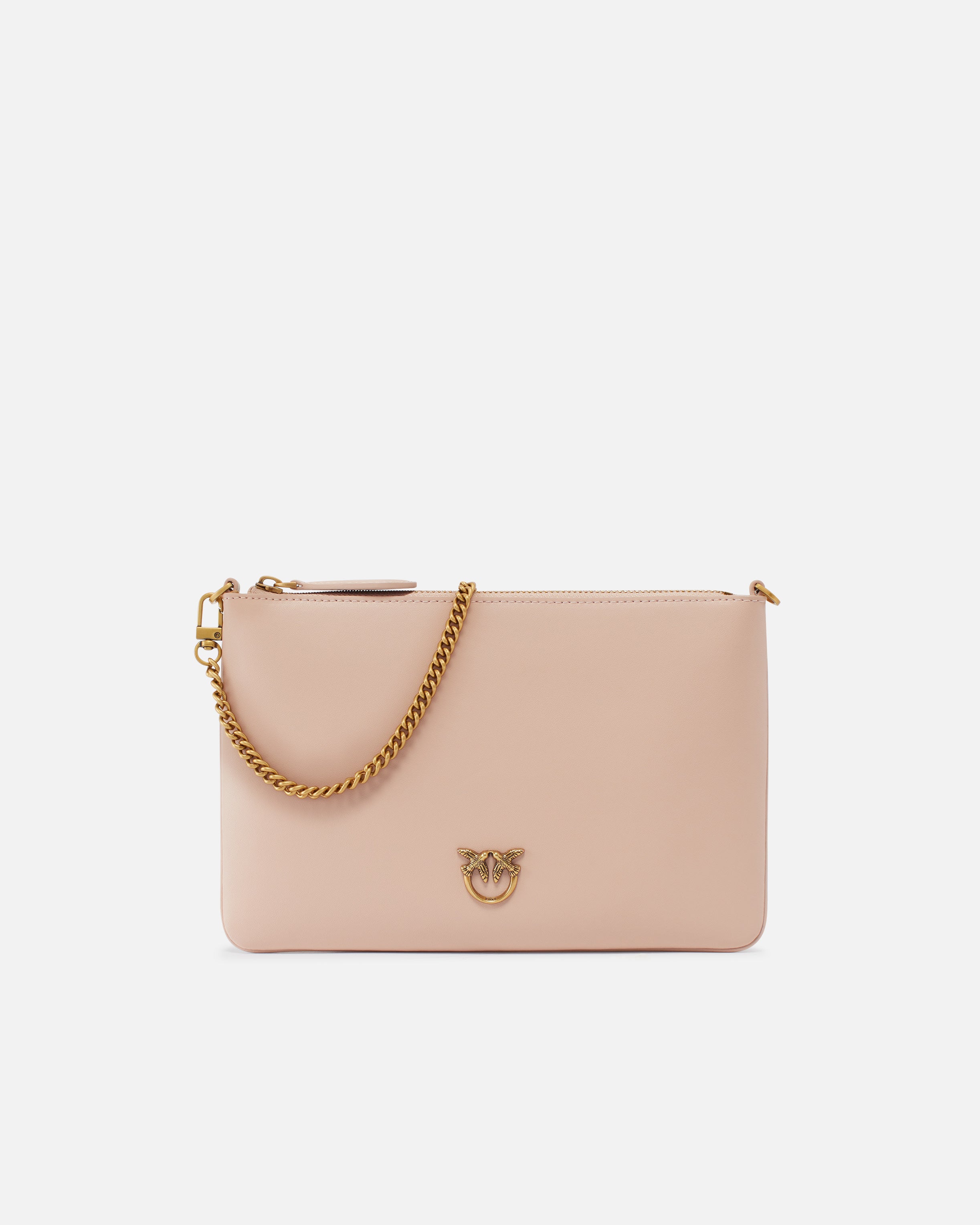 Flat shoulder bag in soft, silky leather. Love Birds Diamond Cut plaque embellishment. Lined with polycotton and complete with removable thin chain shoulder strap. Zip fastening. - FLAT CLASSIC VITELLO SETA
