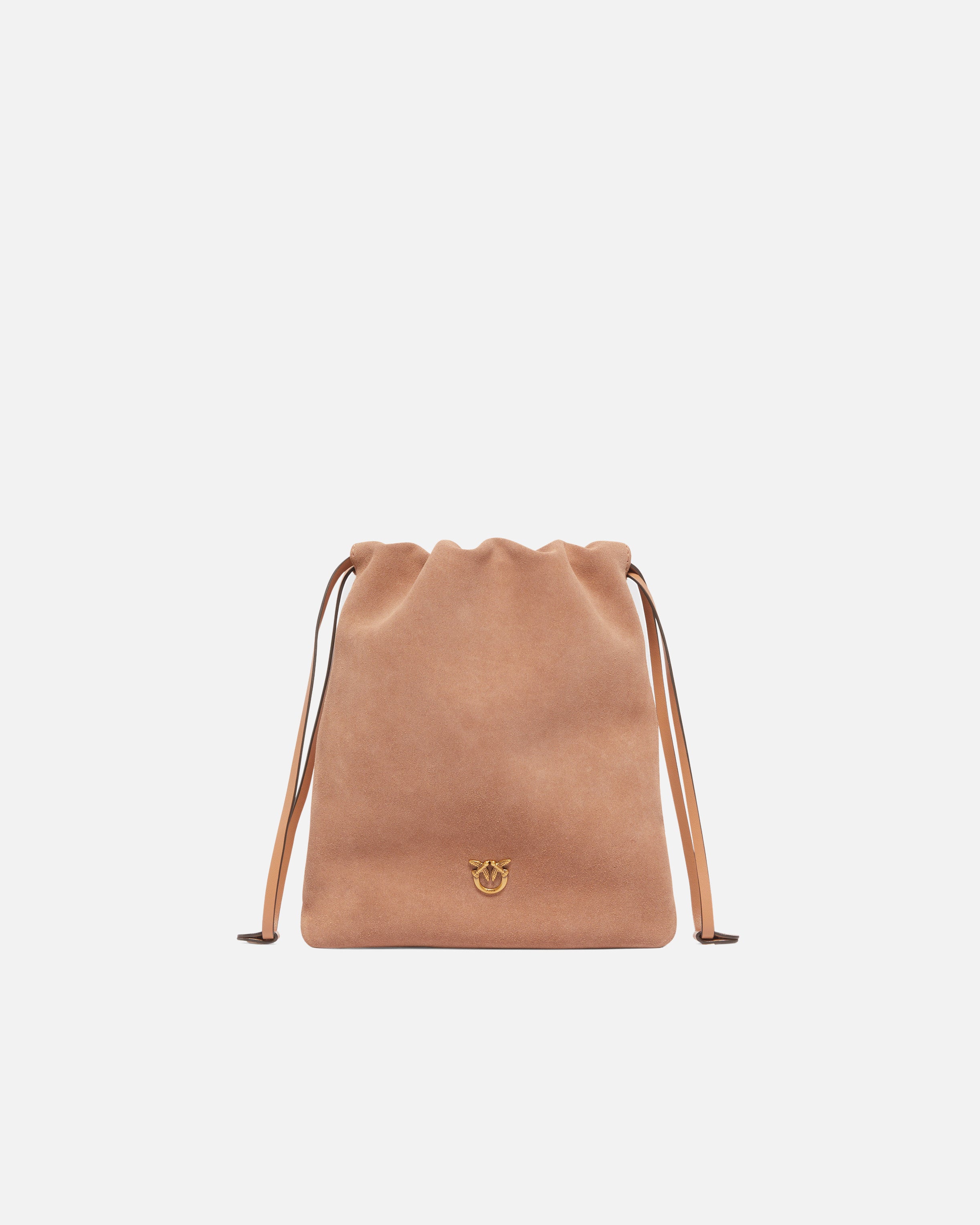 Soft suede bag featuring a cotton lining and an inner zip pocket. A distinctive accessory that is perfect for endless looks, this bag comes with a leather drawstring so you can adjust the pouch-style fastening. The refined design is complemented by the Love Birds logo, made from durable plated metal, which embodies the inimitable style of the brand. Understated and contemporary, this design will become the undisputed star of all your outfits, whatever the occasion. Activate your PINKO bag: verify the authenticity of your product and access a personalised experience by scanning the Love Birds embroidery on the back of the bag with your smartphone!