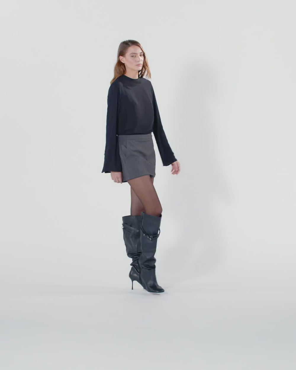 Slim-fitting shorts in classic-inspired melange canvas bonded with technical jersey. A perfect example of reimagining a classic, formal design, this garment stands out for its striking mini skirt-effect front part and shorts-effect back part with welt pockets. This item is complete with an invisible side zip to help put it on.