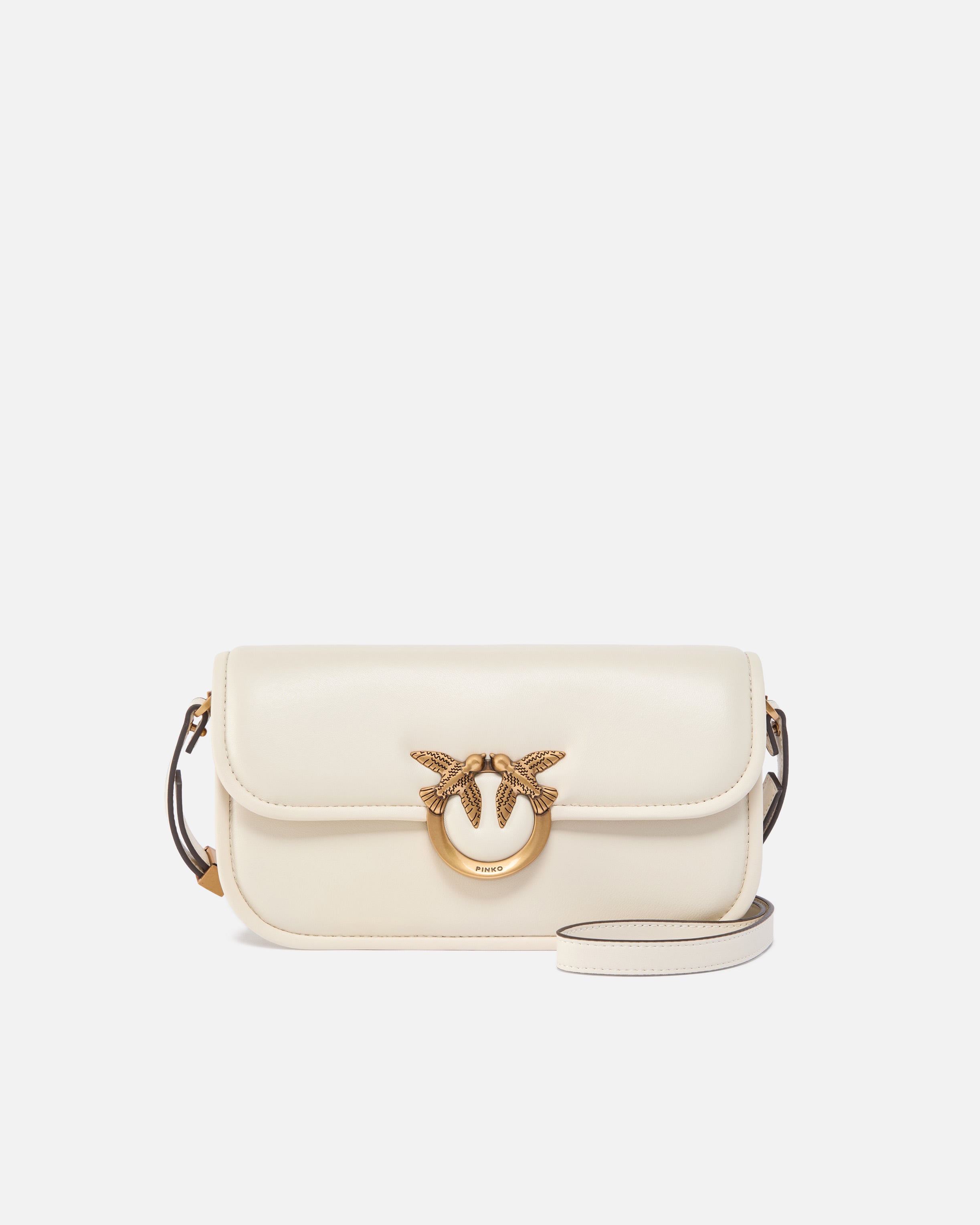 Small Love Bag Box bag with an elongated rectangular design in soft nappa leather, with cotton lining and inner zip pocket to keep your essentials safe. The accessory can be personalised according to your needs and occasions of use thanks to two different removable shoulder straps: an adjustable leather one, for carrying it over your shoulder, and a shorter one with a thin metal chain, for carrying it by hand. The accessory sports bold and personal allure, while the Love Birds Diamond Cut buckle embodies the inimitable PINKO style. Activate your PINKO bag: verify the authenticity of your product and access a personalised experience by scanning the Love Birds embroidery on the back of the bag with your smartphone!