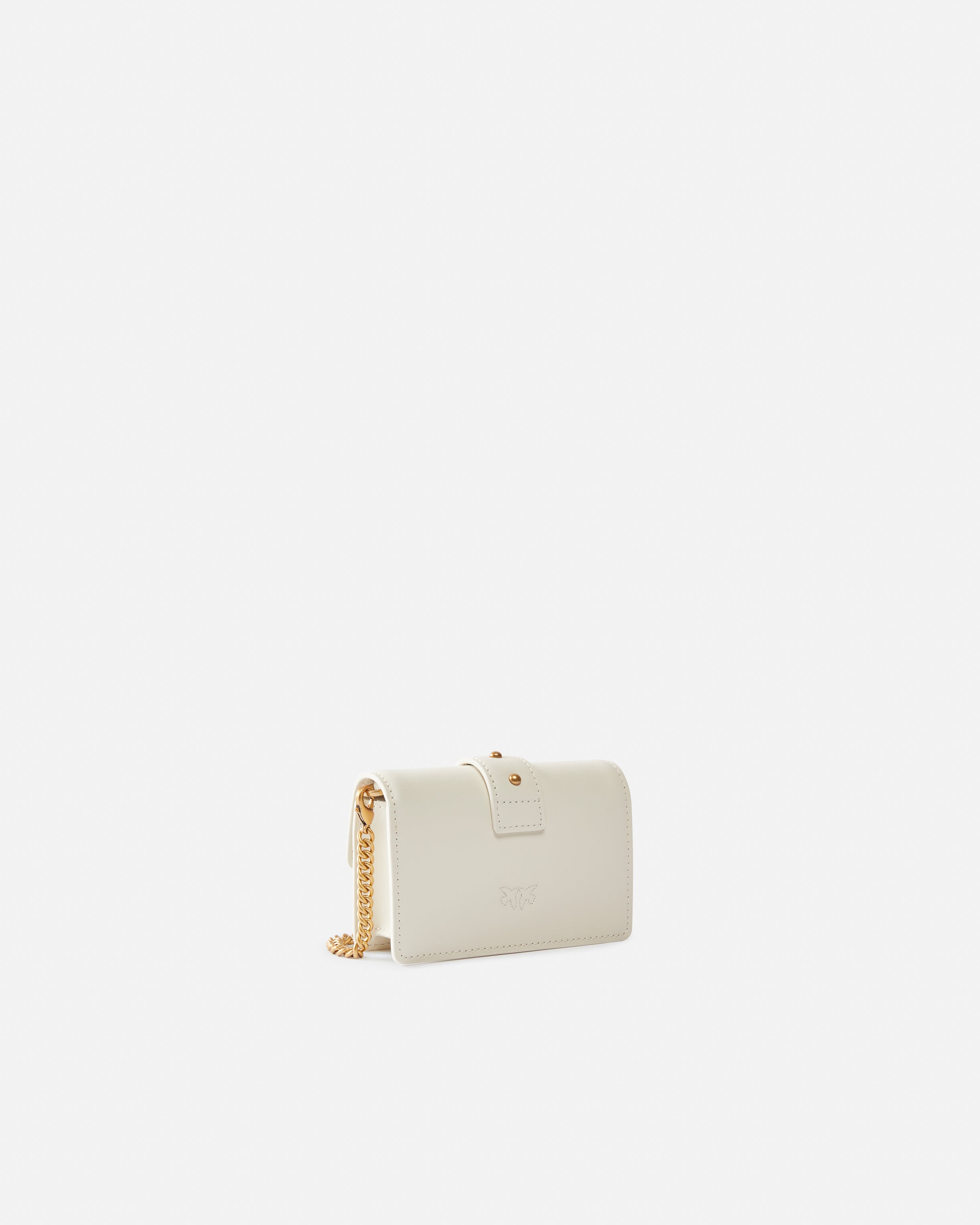 Micro Love Bag One in soft, silky leather. The leather strap with metallic studs is accompanied by the iconic Love Birds Diamond Cut metal buckle. Microfibre inner lining. Round-link metal-chain strap. Activate your PINKO bag: verify the authenticity of your product and access a personalised experience by scanning the Love Birds embroidery on the back of the bag with your smartphone! - MICRO LOVE BAG ONE SIMPLY