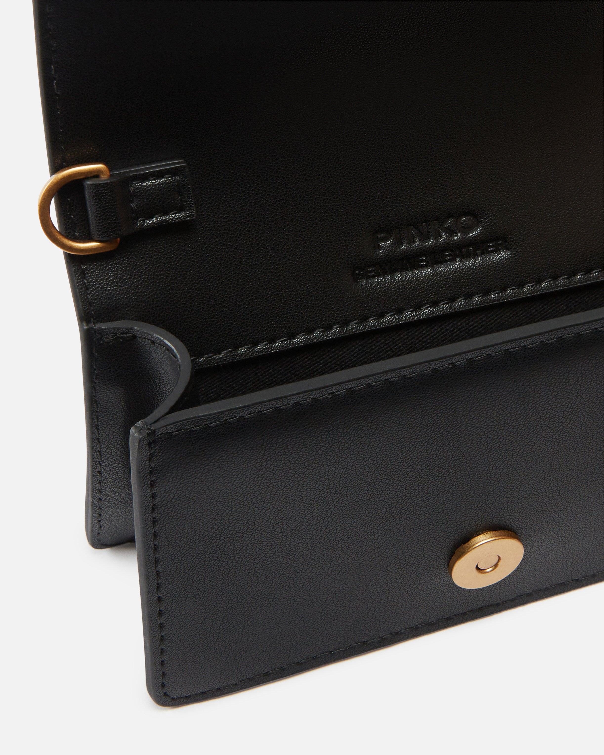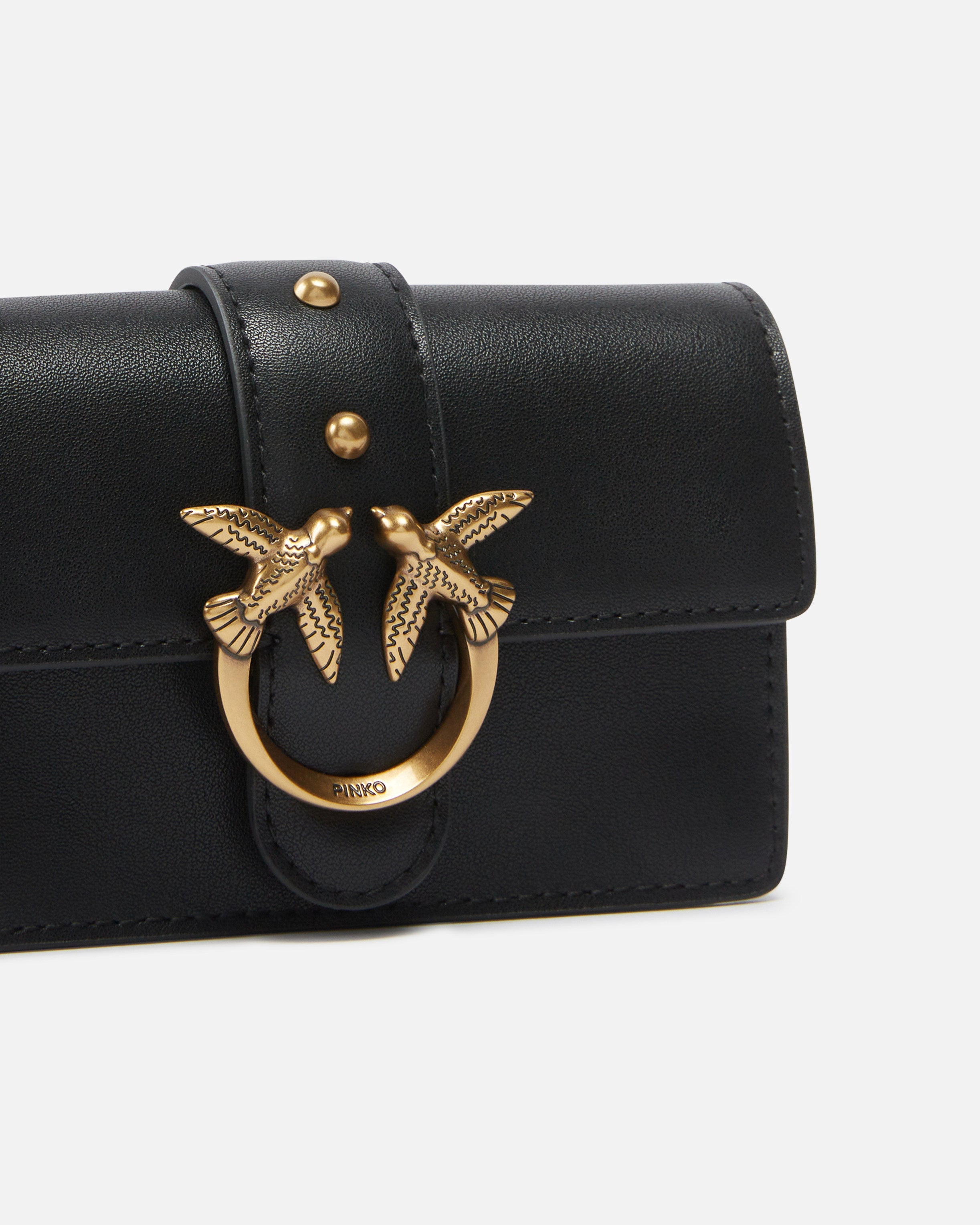 Micro Love Bag One in soft, silky leather. The leather strap with metallic studs is accompanied by the iconic Love Birds Diamond Cut metal buckle. Microfibre inner lining. Round-link metal-chain strap. Activate your PINKO bag: verify the authenticity of your product and access a personalised experience by scanning the Love Birds embroidery on the back of the bag with your smartphone! - MICRO LOVE BAG ONE SIMPLY