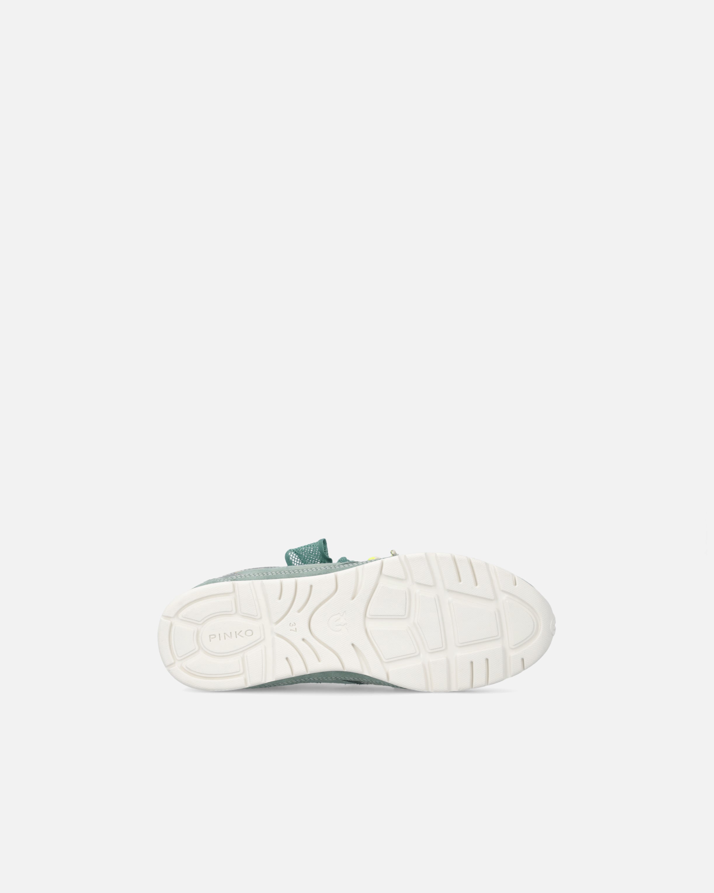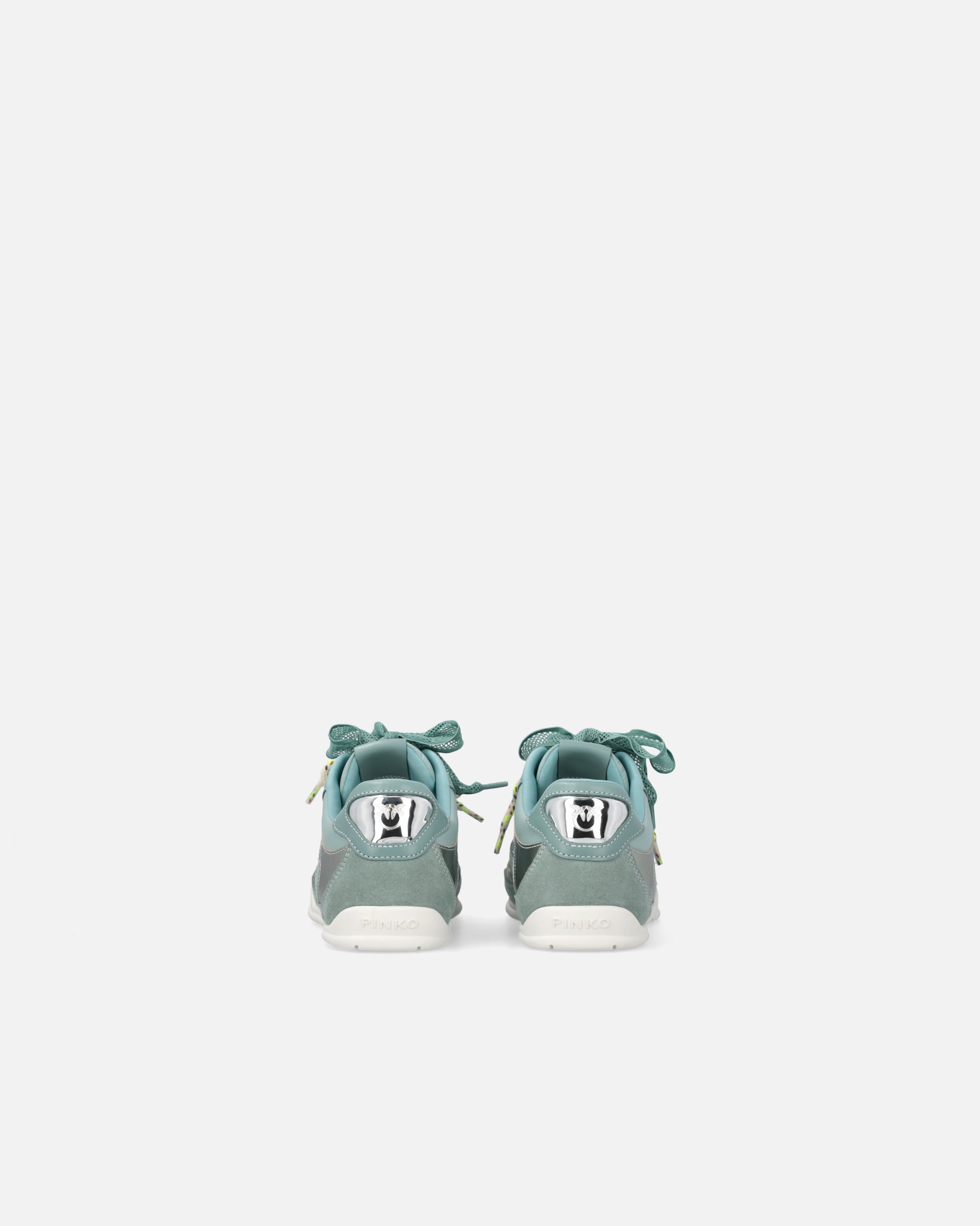 Sneaker in technical fabric with suede and smooth leather inserts, featuring double laces: the upper ones in mesh and the lower ones with colourful graphic details, for a refined material and visual contrast. The logo with the iconic Love Birds birds stands out on the tongue, on the mirror-effect heel and in the form of a golden metal detail on the laces, accompanied by metal rings that make up the PINKO logo lettering. The upper laces are enriched by a shiny jewel set on one shoe and a marble-effect charm on the other. Inside, the style features a 10 mm latex footbed for perfect cushioning, while the comfortable rubber sole ensures grip. A contemporary take on a sports wardrobe classic, these sneakers add a glamorous touch of pure PINKO style to any casual outfit. - YULIA 01