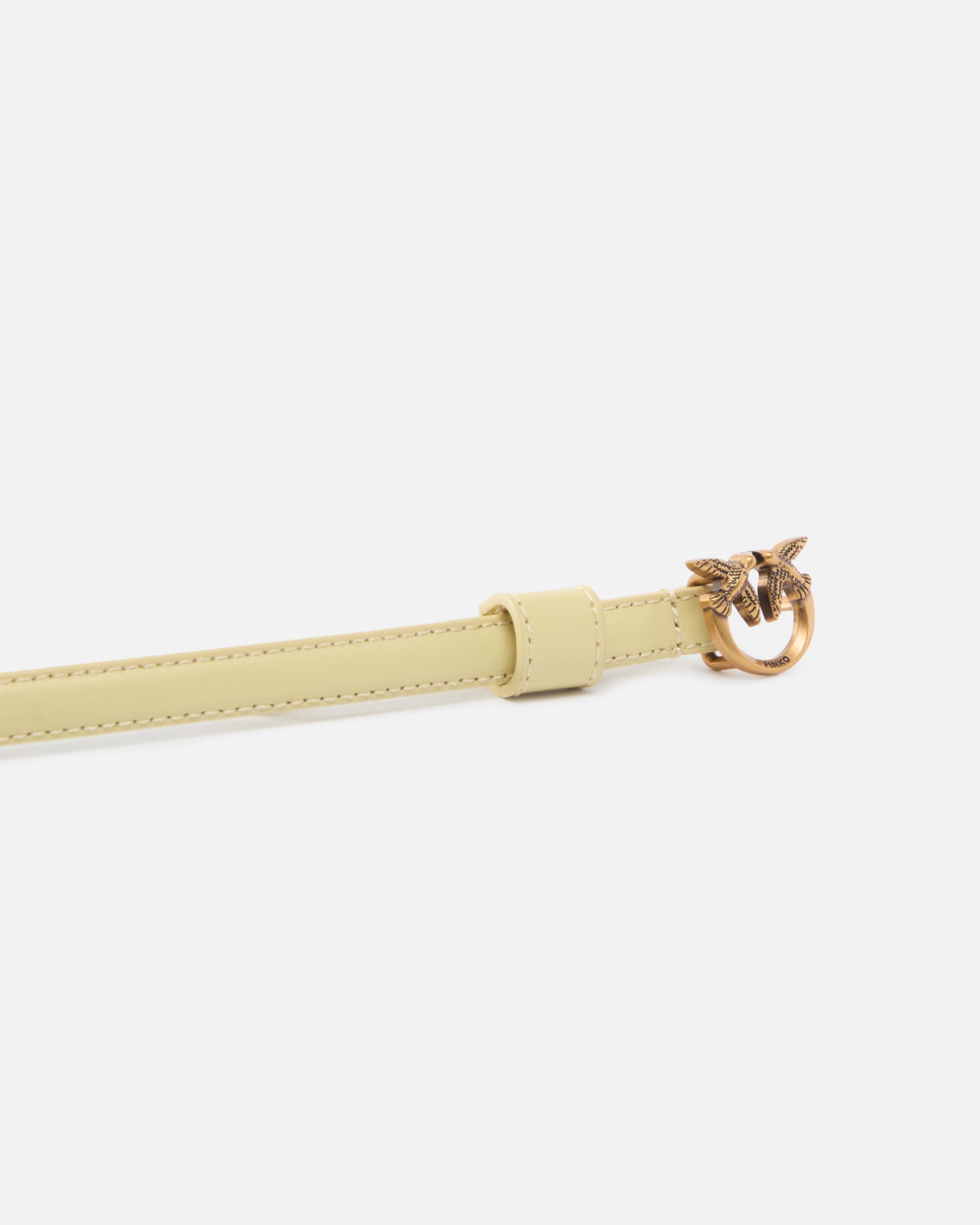 Thin leather belt with mini Love Birds Diamond Cut buckle in antique gold- or old silver-electroplated metal. - LOVE BERRY H1 BELT