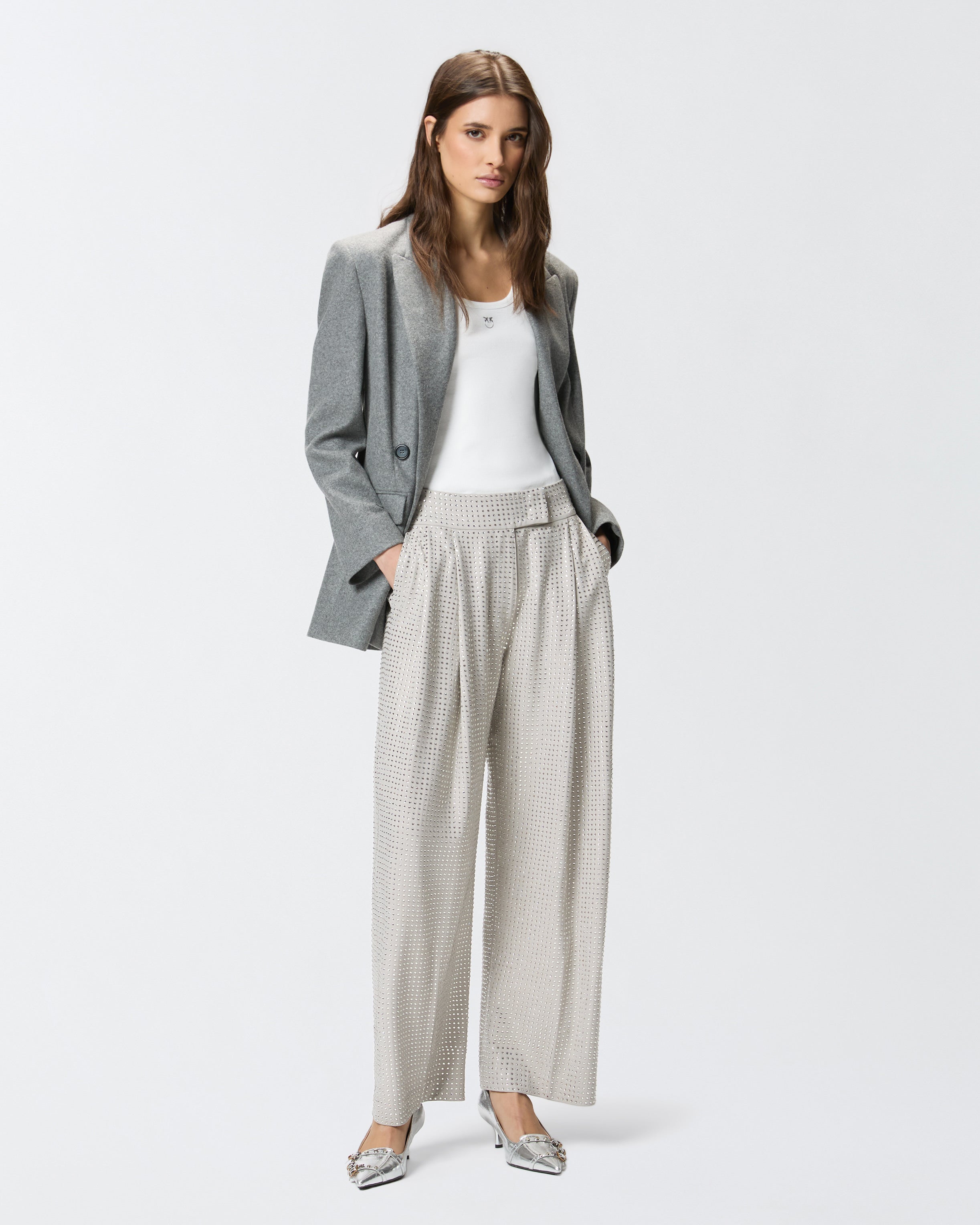 Wide-leg trousers with rhinestones