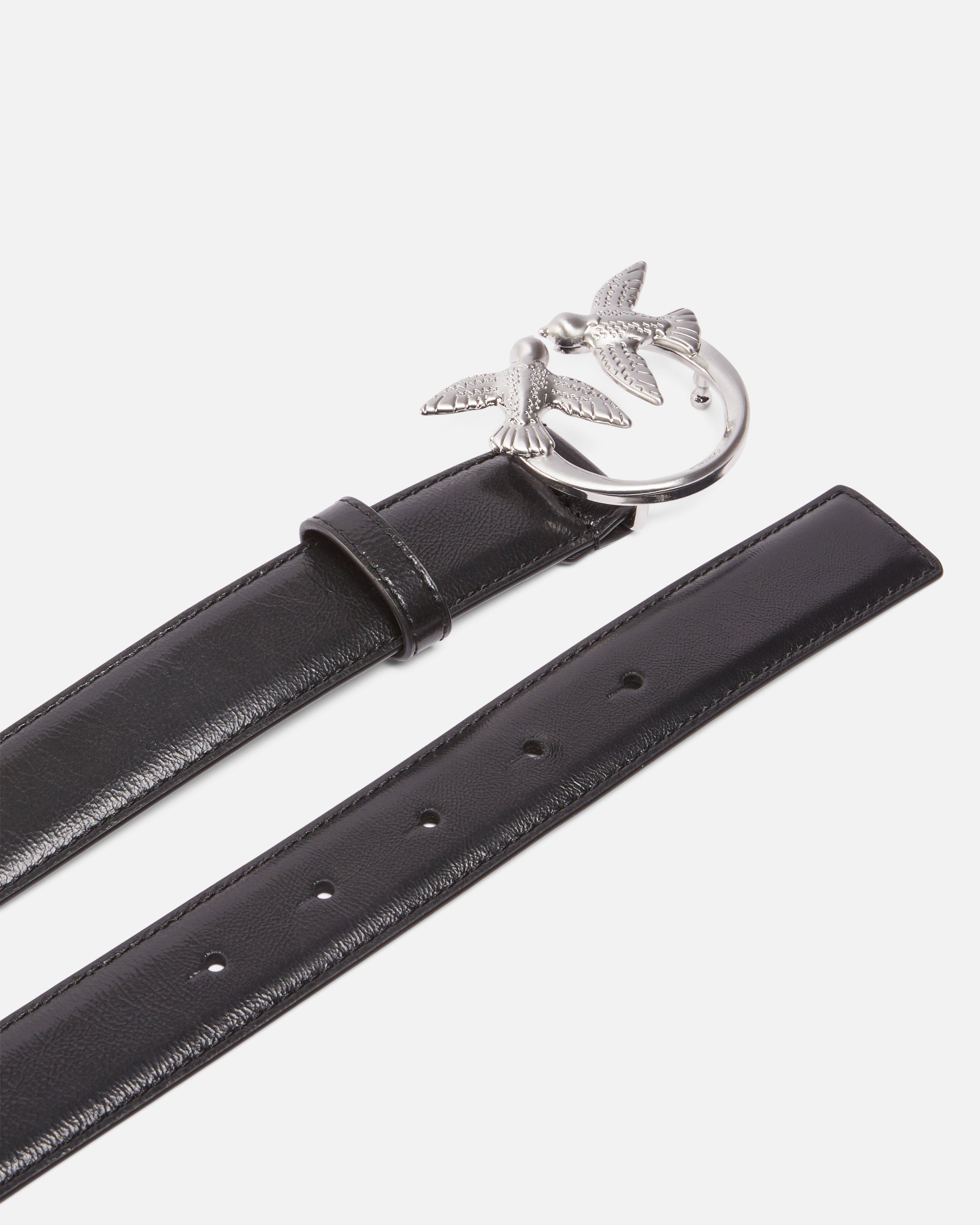 Slim 3-cm belt made from soft distressed-effect polished leather and equipped with a belt loop in the same material. The Love Birds Diamond Cut logo buckle, which completes the fastening, is made from silver-plated metal. Understated and refined, this accessory is the missing piece of your daytime looks and more.