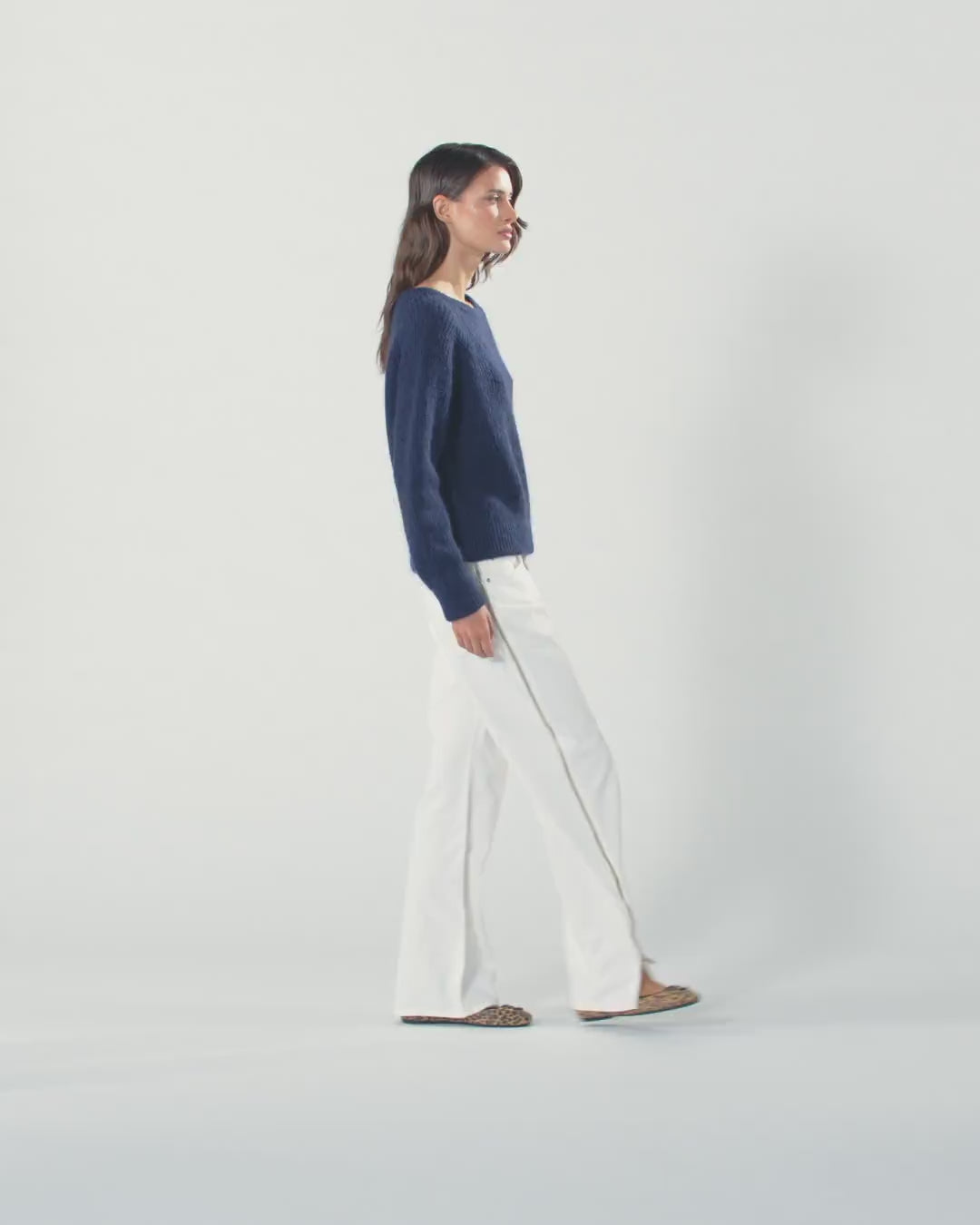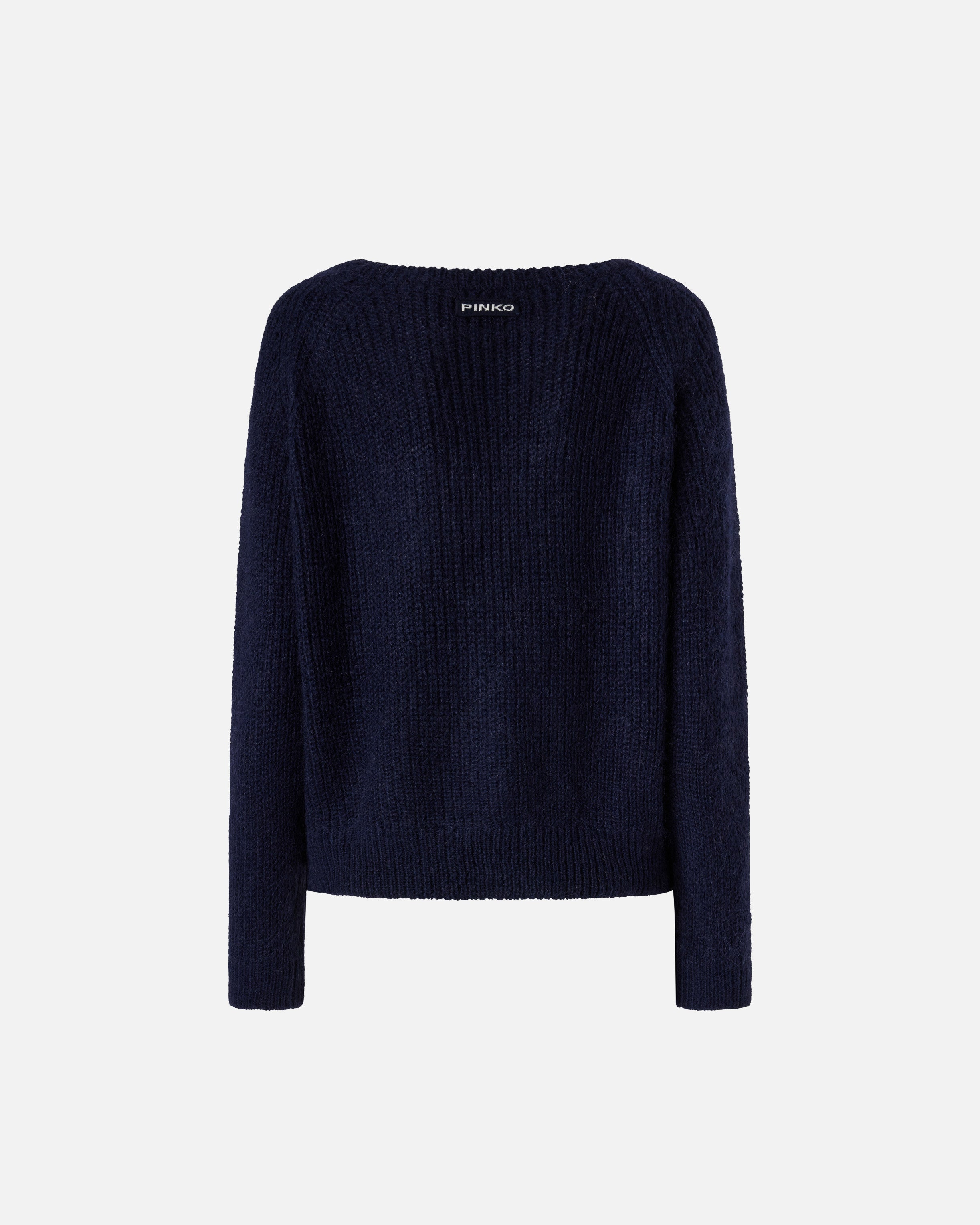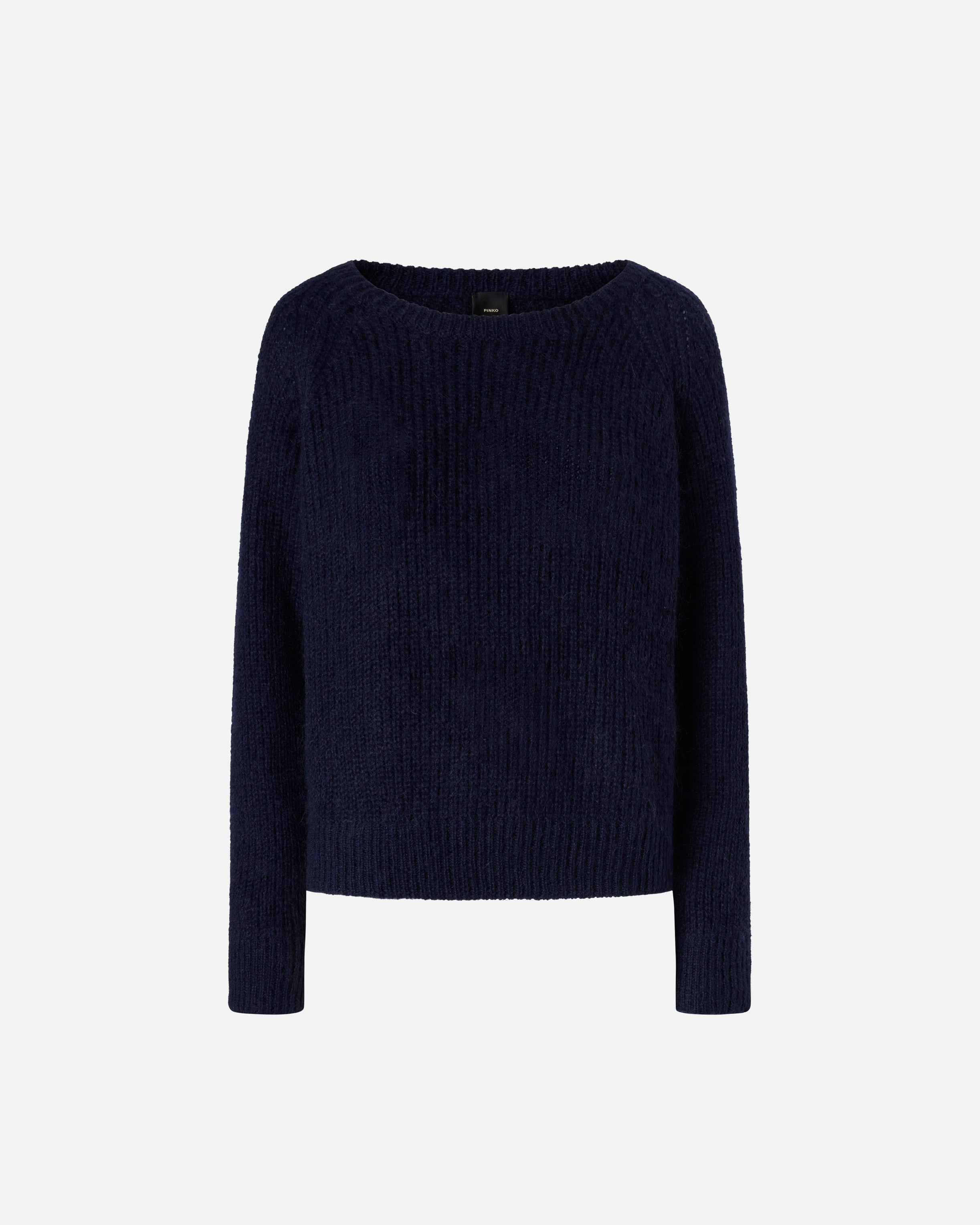 Long-sleeved sweater with a boat neck made from a mohair wool blend. The crew-neck, hem and cuffs are ribbed, while the final touch is given by the tone-on-tone label with PINKO lettering logo on the back of the design. The piece has undergone finishing tests to minimise the possible formation of pilling, ensuring greater fabric softness and durability. This understated design will become a go-to piece for your everyday looks.