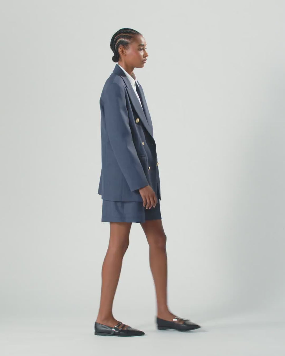 Double-breasted blazer with a straight cut, a lapel collar, front flap pockets and a welt breast pocket. This piece is made from textured wool, which is particularly structured and resistant for the winter too. The inside of the jacket is lined with fabric to ensure a perfectly comfortable feel when worn. Front fastening with star-decorated metal buttons. Pair the blazer with the trousers in the same fabric to create a suit effect or with a shirt for a slightly but not overly formal look.