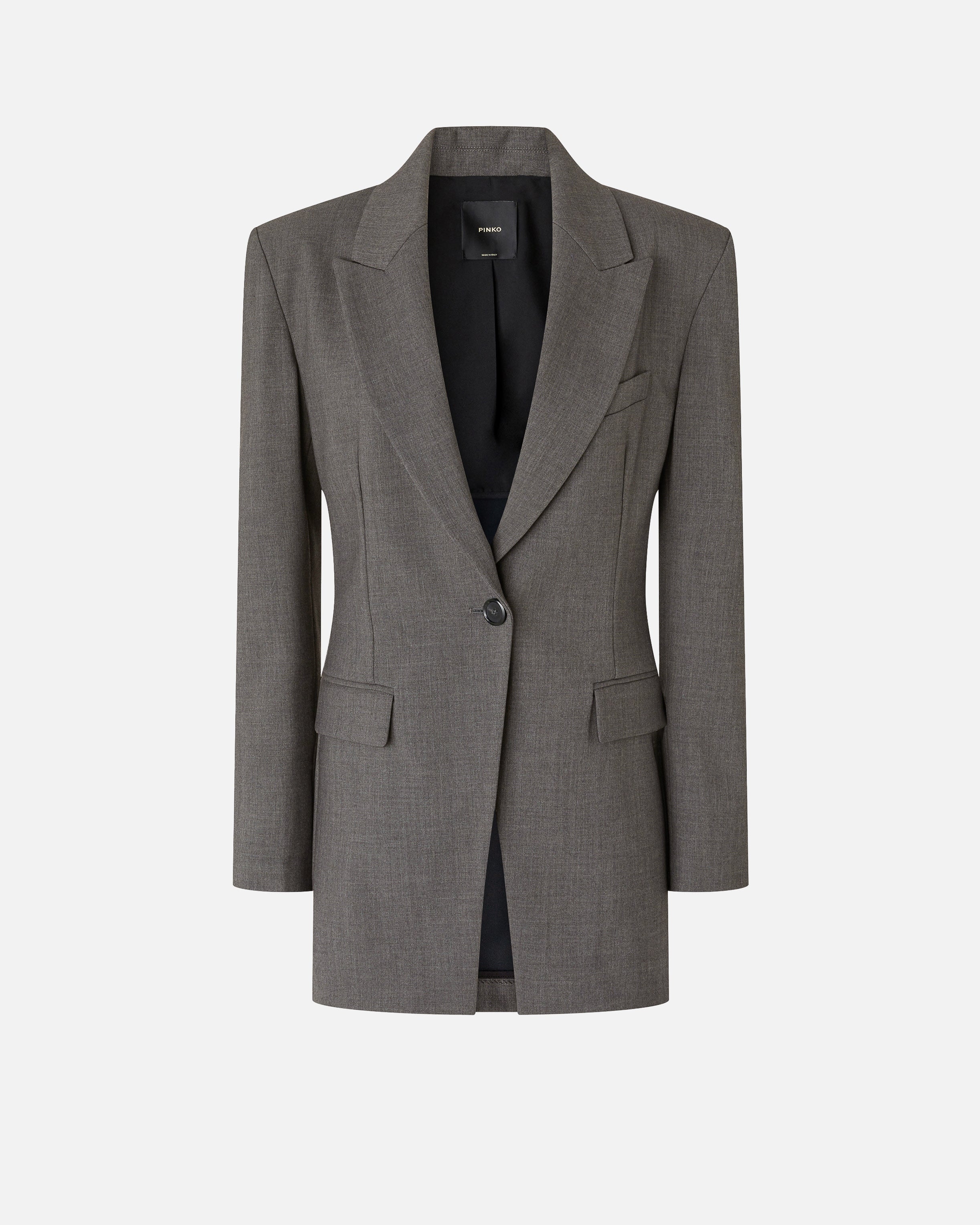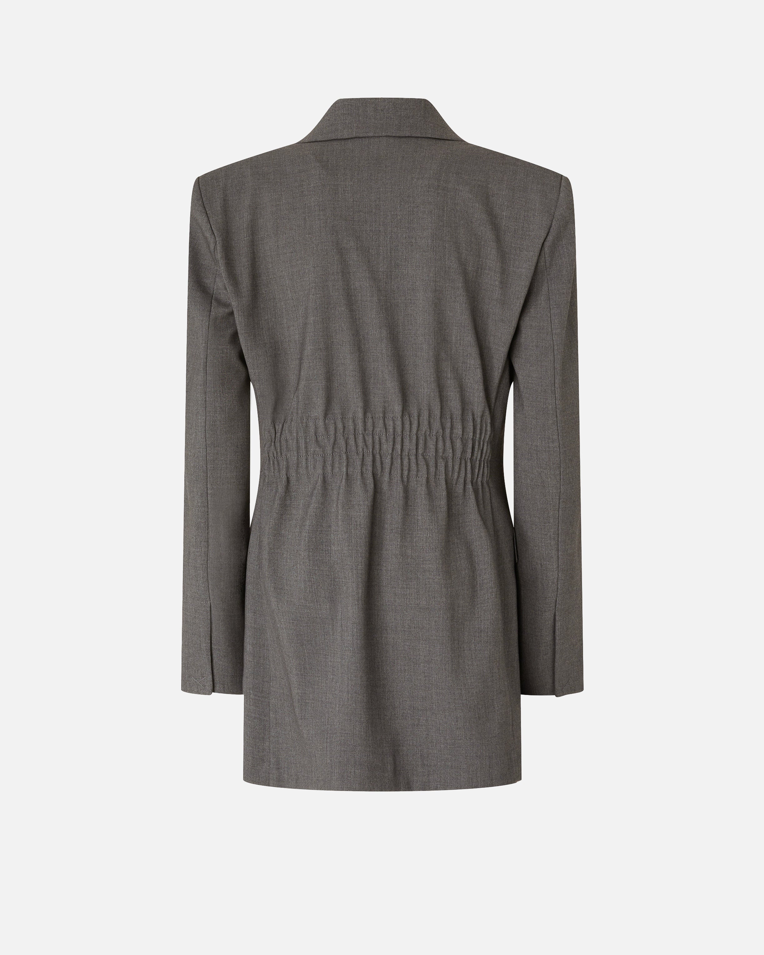 Single-breasted fitted-waist jacket in classic-inspired melange canvas bonded with technical jersey. A perfect example of reimagining a classic, formal design, this garment features innovative and more sporty details, including gathering at the waist on the back, and is lined to provide comfort when worn. If you're looking for the right piece to give your daytime outfits a refined finishing touch, look no further!