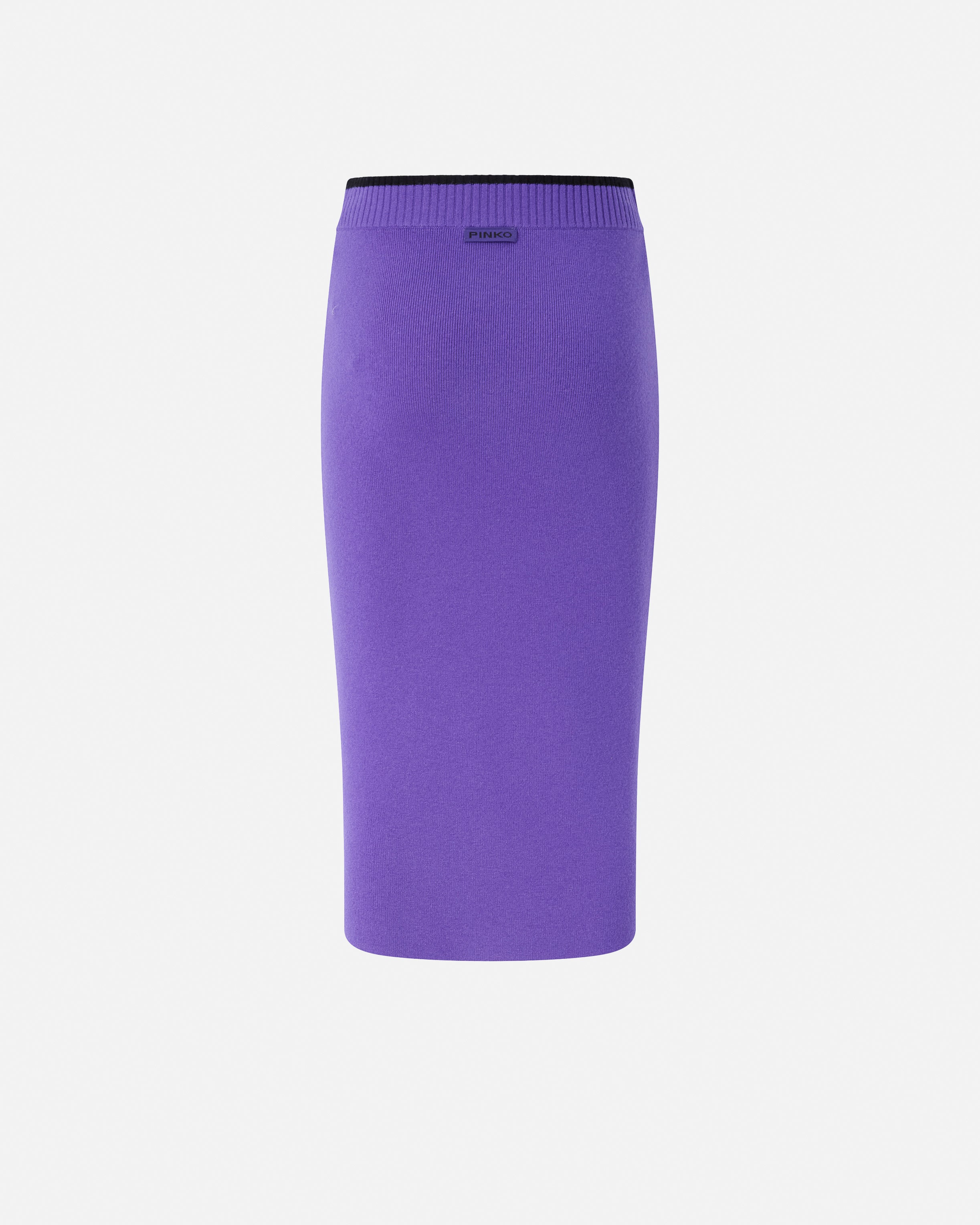 Merino wool and cashmere-blend pencil skirt with an extremely soft hand. Understated and contemporary, this style will become the undisputed star of all your outfits, whatever the occasion. The final touch is given by the tone-on-tone label with PINKO lettering logo on the back. The piece has undergone finishing tests to minimise the possible formation of pilling, ensuring greater fabric softness and durability.