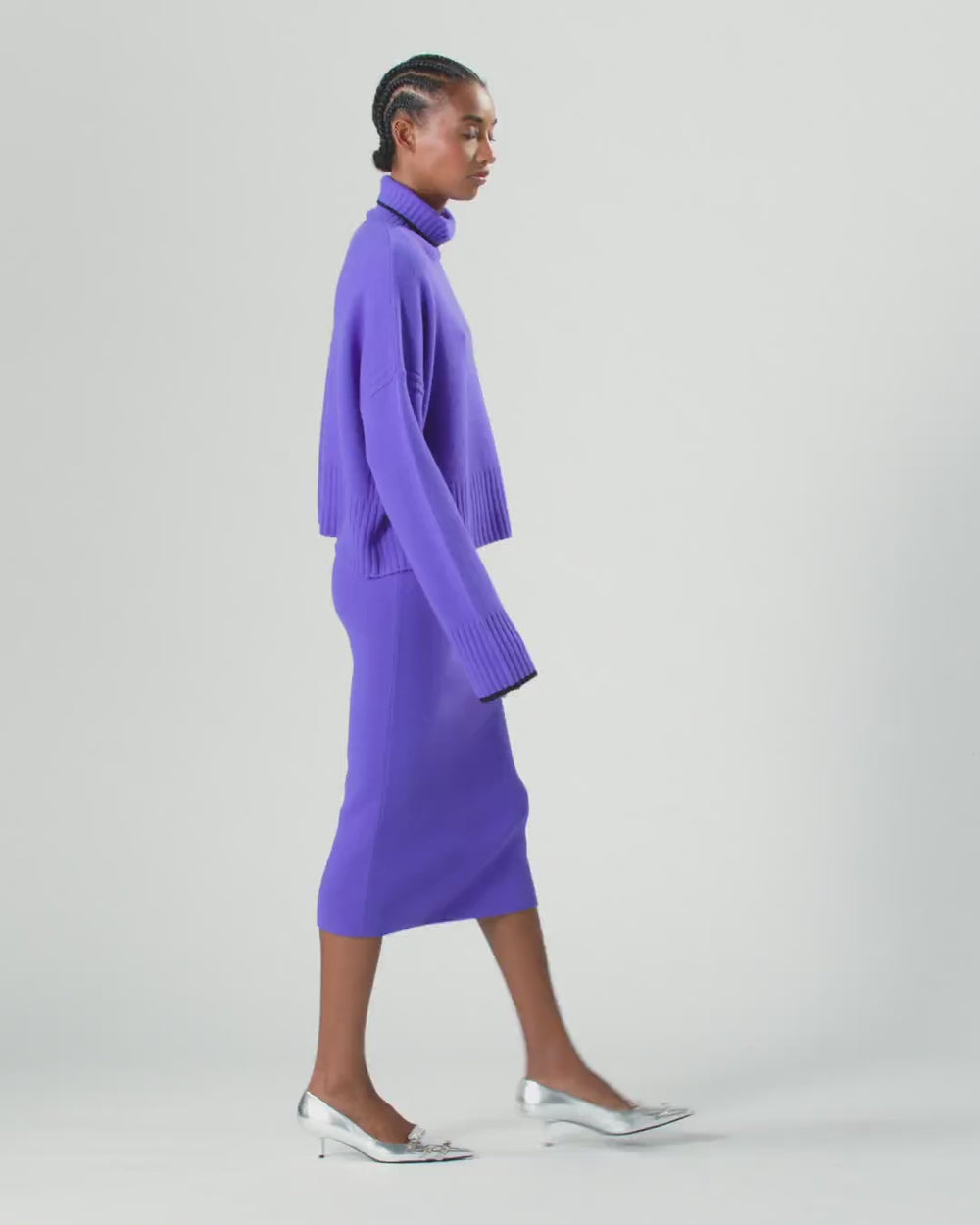 Long-sleeved polo-neck in a merino wool and cashmere blend, ideal for warming up your cold-season outfits. Understated and contemporary, this design will become the undisputed star of all your outfits, whatever the occasion. The contrasting yarn on the neckline and cuffs adds a touch of vibrancy to the design. The neck, hem and cuffs are ribbed, while the final touch is given by the PINKO lettering logo on the back. The piece has undergone finishing tests to minimise the possible formation of pilling, ensuring greater fabric softness and durability.