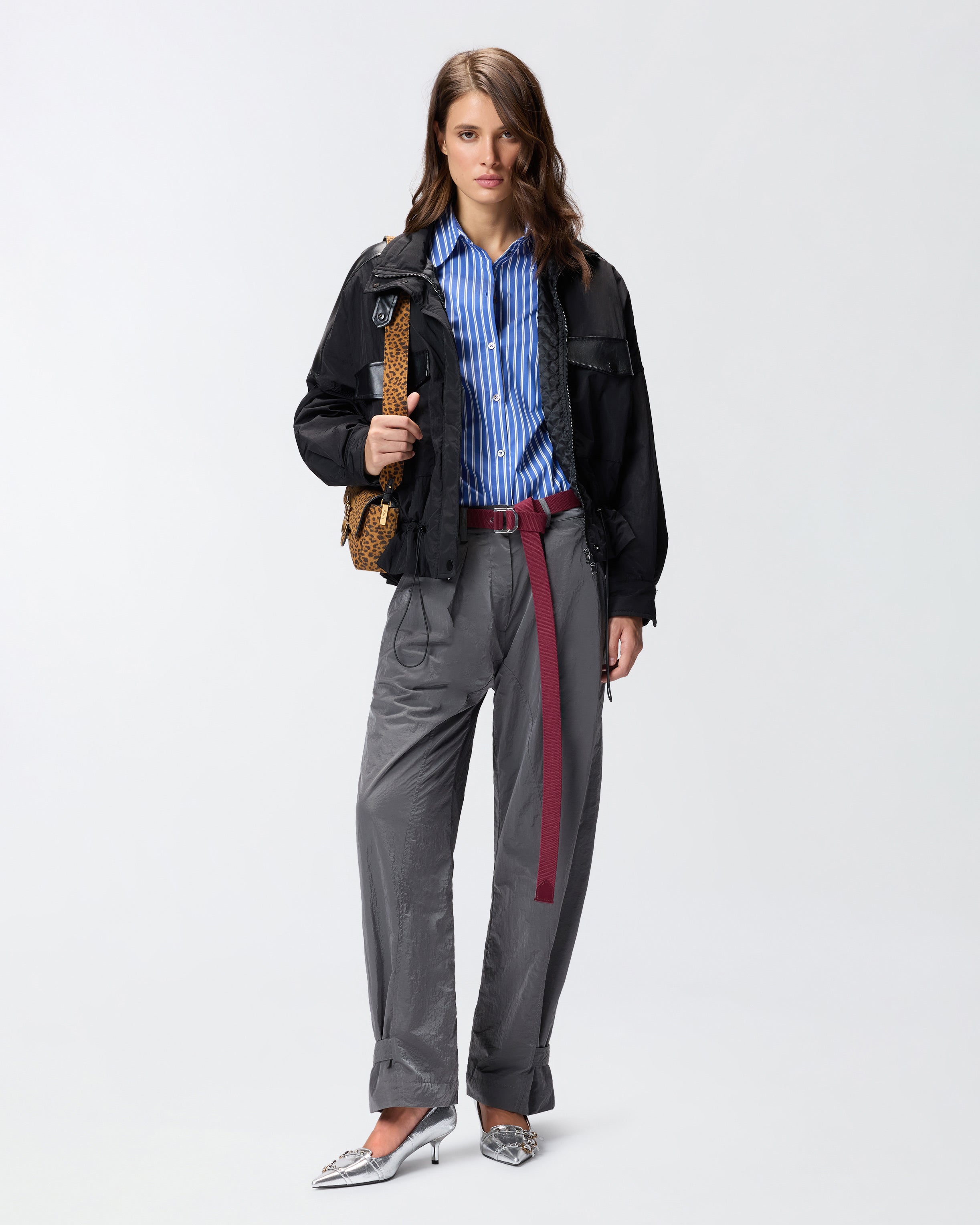 Loose-fitting trousers with removable waist belt and back pockets with flap and button. This garment is made from matte-finish technical fabric that gives it a functional appearance, and has straps at the bottom that allow you to adjust the fit. Add these relaxed-style trousers to your wardrobe and be amazed by the quality and innovation in pure PINKO style.