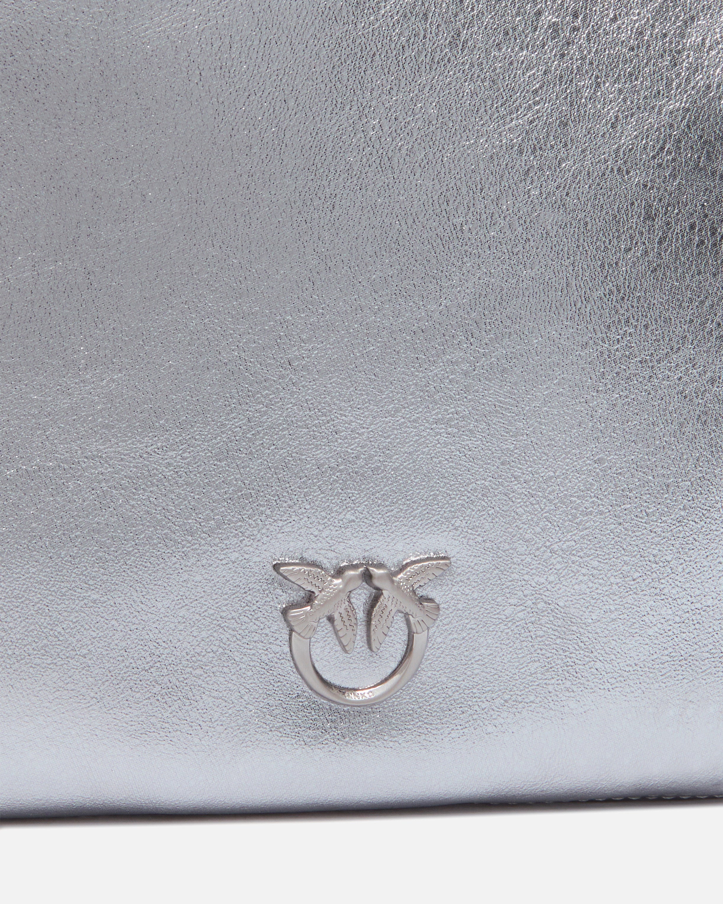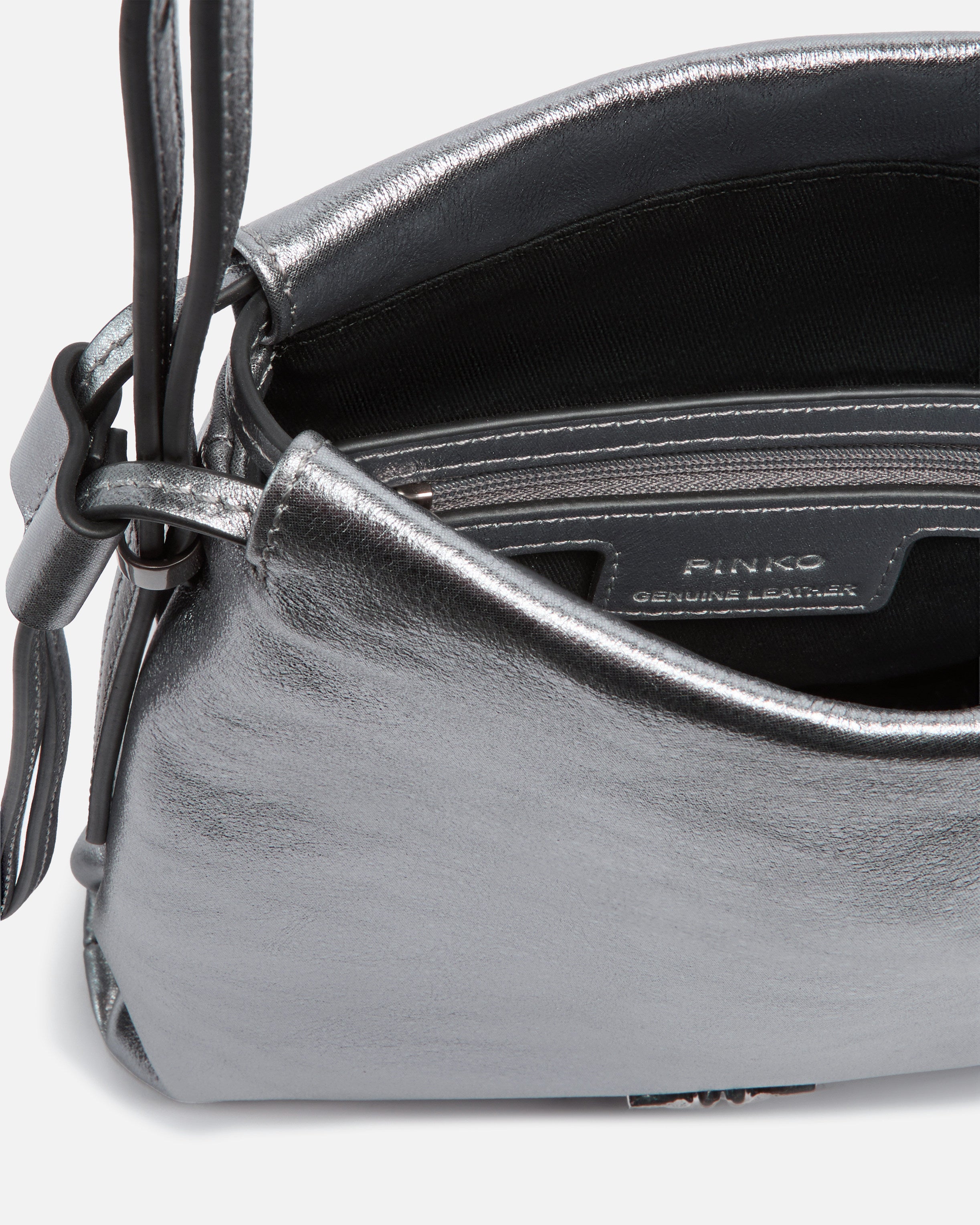 Small Mini Slouchy Bag bag with a flat design in suede with cotton lining. This laminated style will give you a dreamy look, while the iconic Love Birds logo conveys the inimitable PINKO style. A signature accessory with endless looks, this handbag features a drawstring and zip on the side to adjust its pouch-style closure and an internal pocket to keep your essentials safe. The design is versatile thanks to the leather shoulder strap that allows it to be worn in various ways depending on your preferences. The contrasting ribs, clearly visible along the shoulder strap, testify to the craftsmanship of the product. Activate your PINKO bag: check the authenticity of your product and access the personalized experience by bringing your smartphone close to the Love Birds embroidery on the back of the bag!
