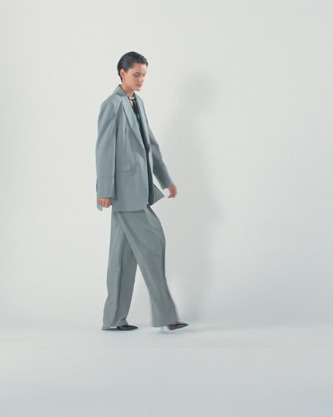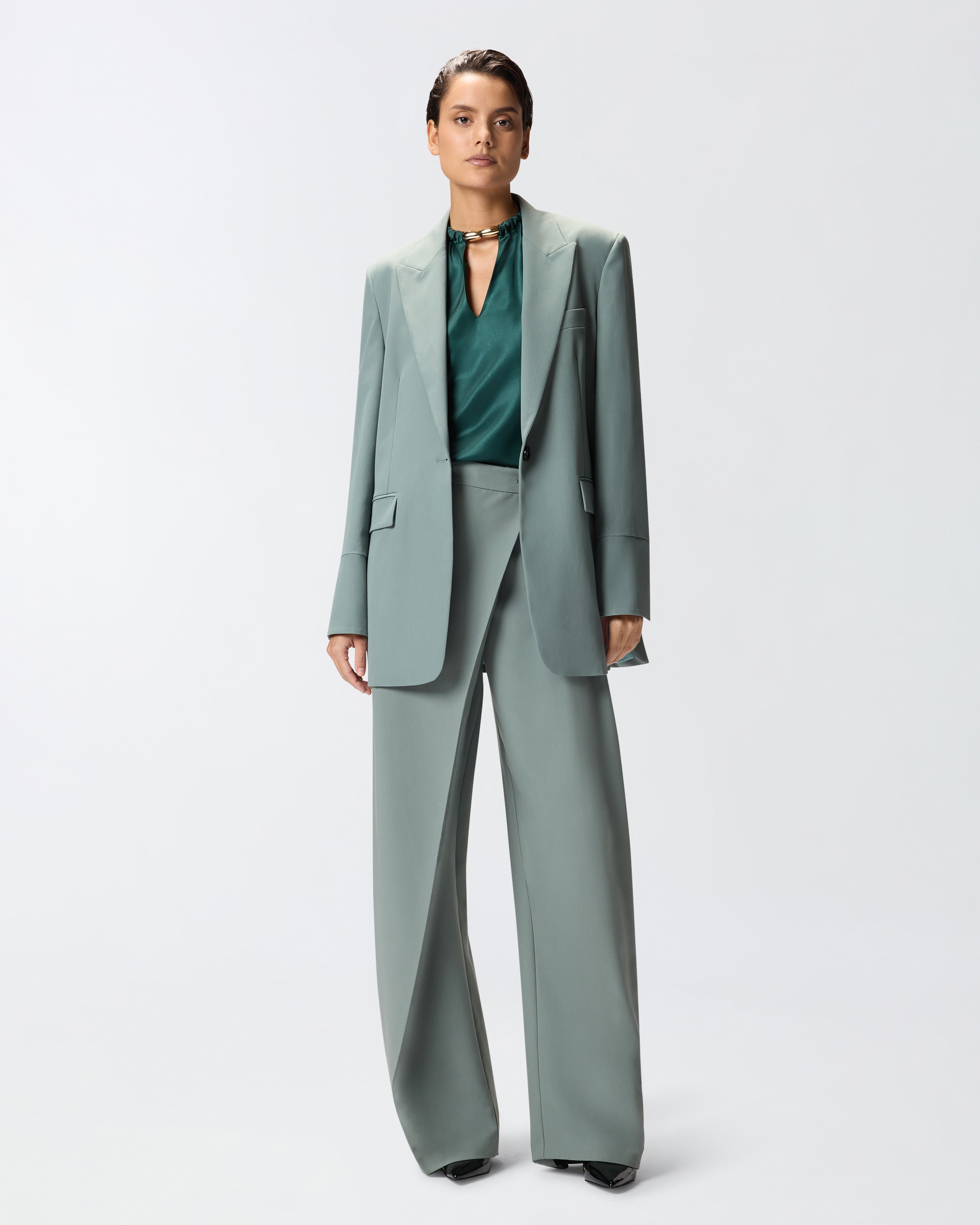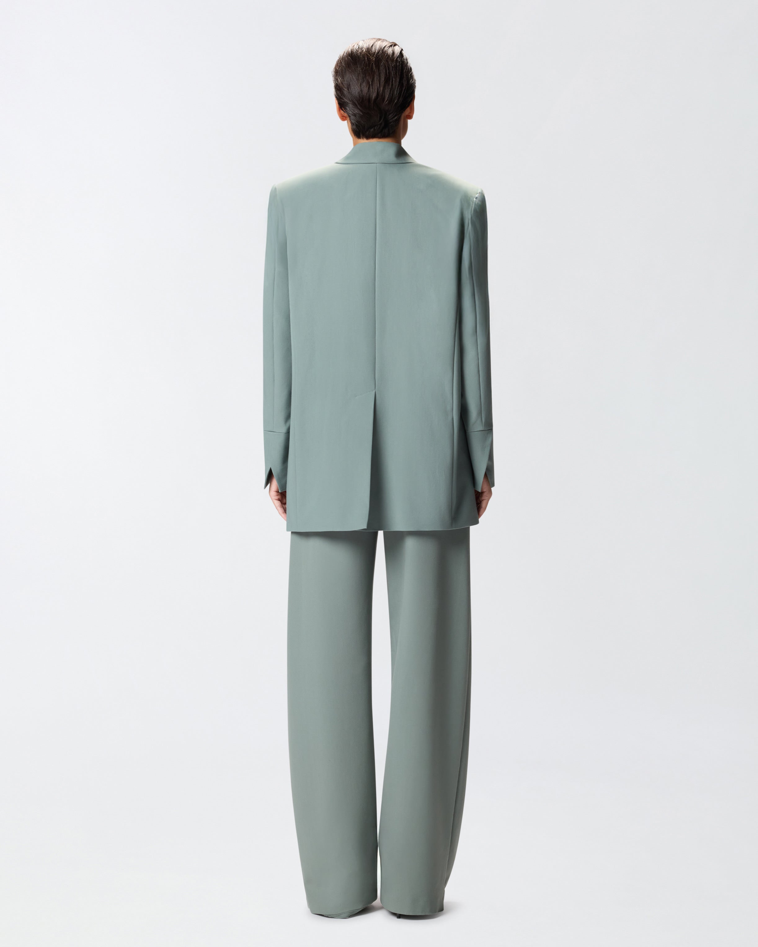 Oversized single-breasted blazer with a straight cut, a lapel collar, front flap pockets and a welt breast pocket. The garment is made from a stretch viscose fabric with a distinctly fluid feel. The inner fabric lining ensures maximum comfort when worn. Pair the jacket with the trousers in the same fabric for a refined suit to wear to ceremonies and special occasions.