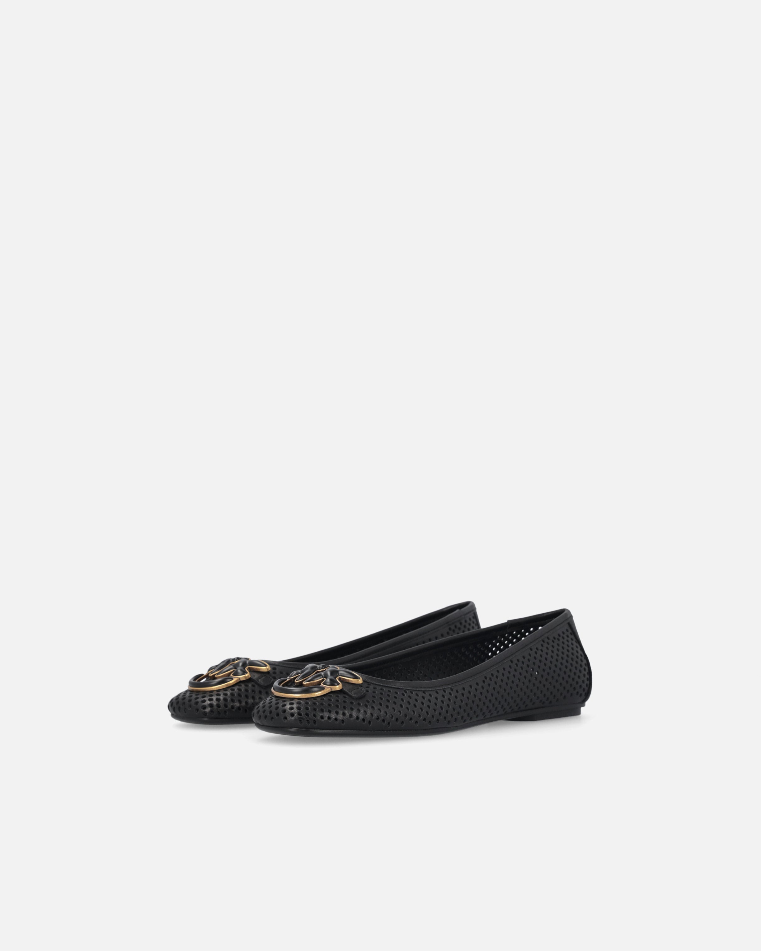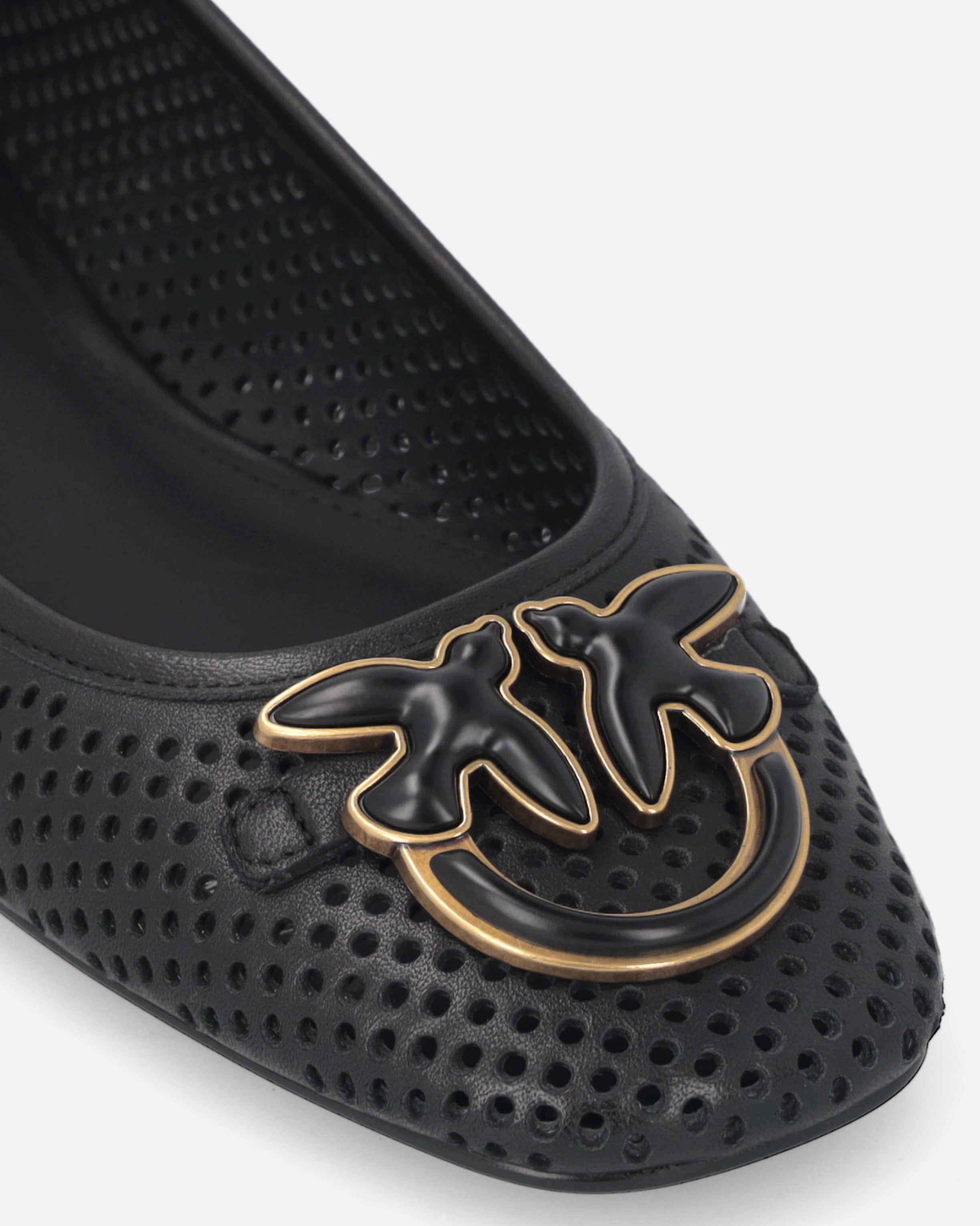 Ballerinas made of soft nappa leather for a comfortable fit and a flexible structure that follows the natural movement of your foot. The minimalist design is embellished with a metal detail with the Love Birds logo on the front, and a perforated workmanship that gives visual lightness and real breathability, making it the ideal model for the spring season. A perfect balance between essential elegance and everyday comfort, these ballerinas easily pair with casual chic looks, for daytime or evening.