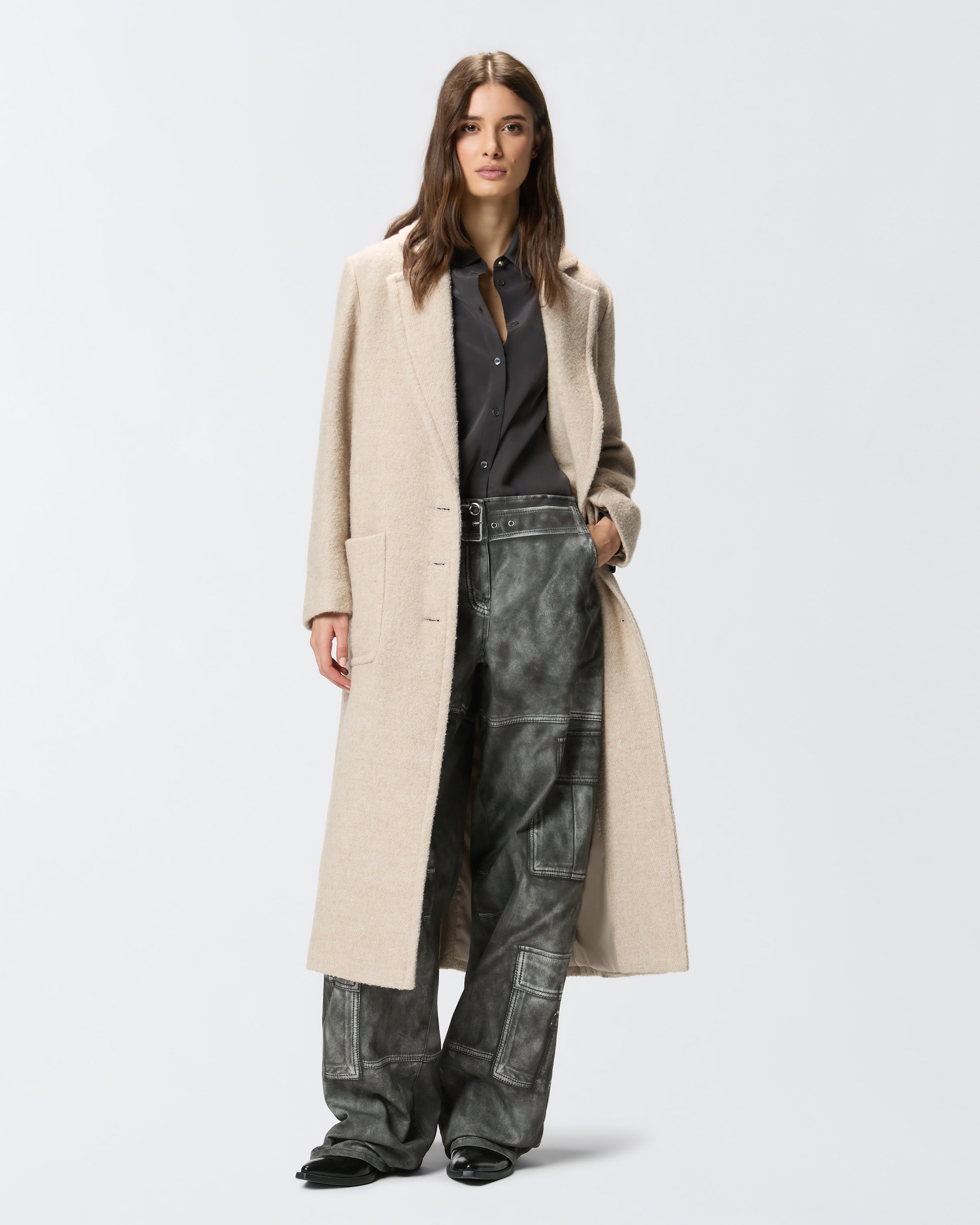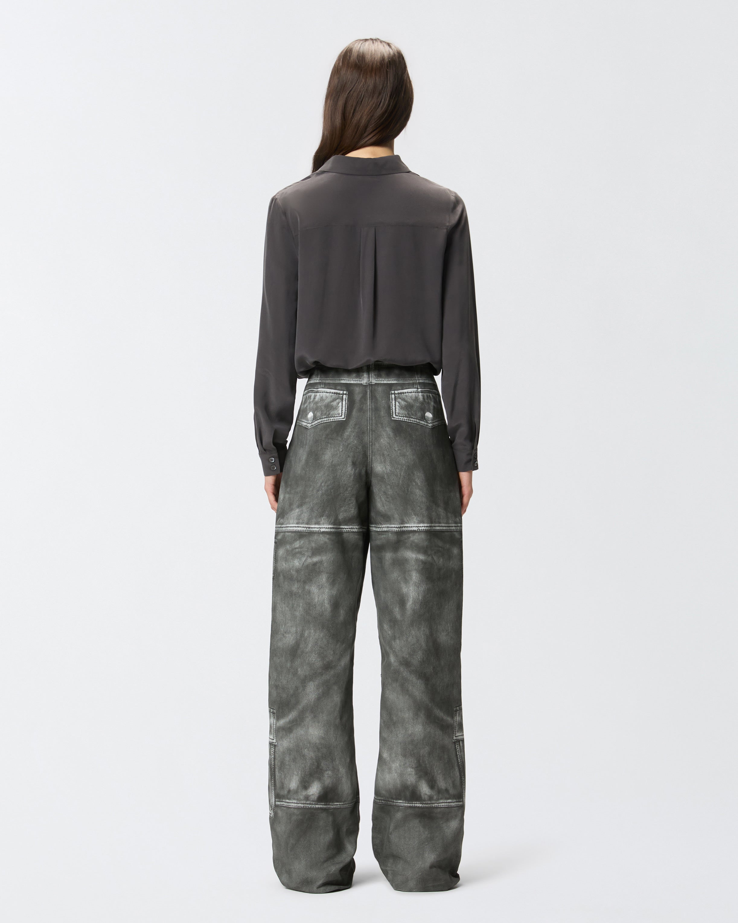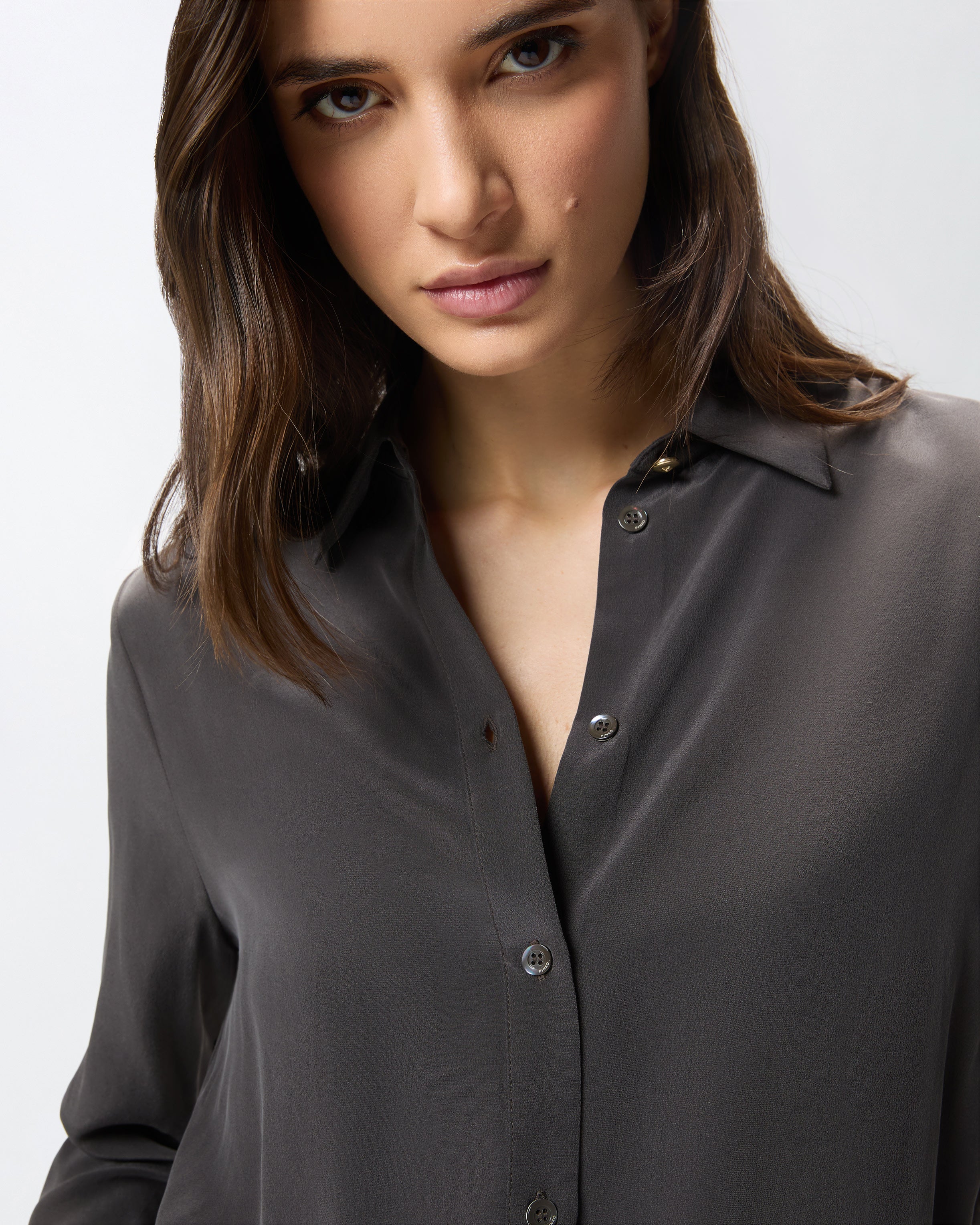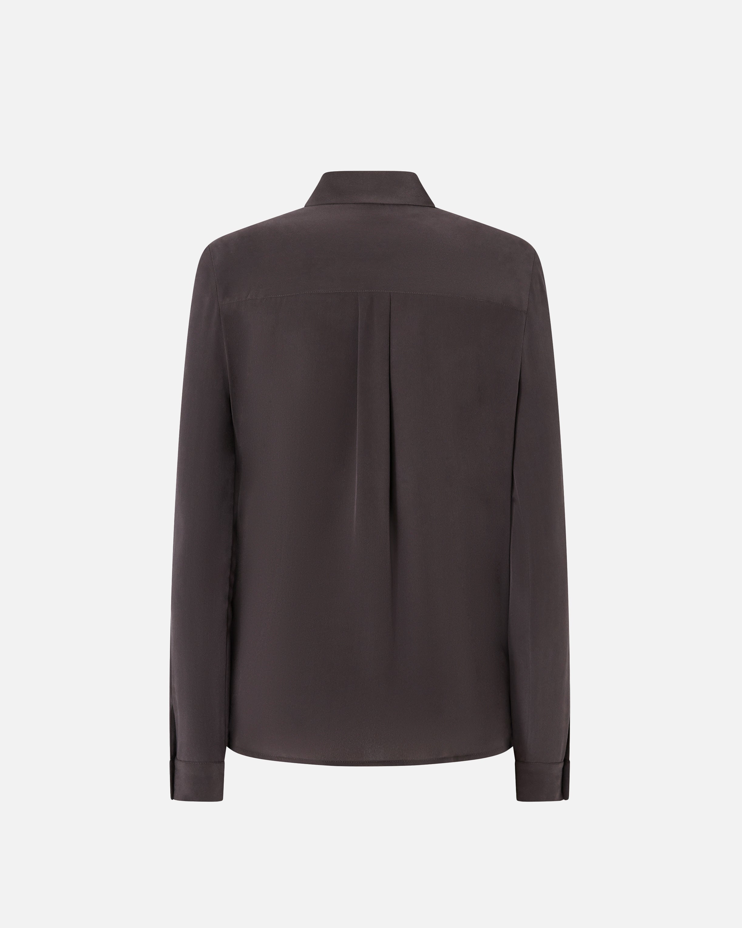 Classic shirt with small collar, long sleeves completed by buttoned cuffs and a refined rear yoke with inverted pleat. The garment is made from pure silk crepe de Chine with a sand wash treatment, which attenuates the lustre of the fabric, giving it a slightly worn look. The first button of the fastening is made from metal and is decorated with a star. Pair this shirt with jeans to give your everyday look a feminine and original upgrade that won't go unnoticed.