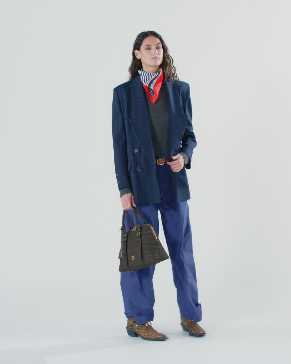Long trousers made of shiny taffeta with a crumpled effect. The material is light and shiny and goes perfectly with the design with the dynamic volume that distinguishes the garment. The model is completed with utility-style details for a casual but undoubtedly impressive finish.