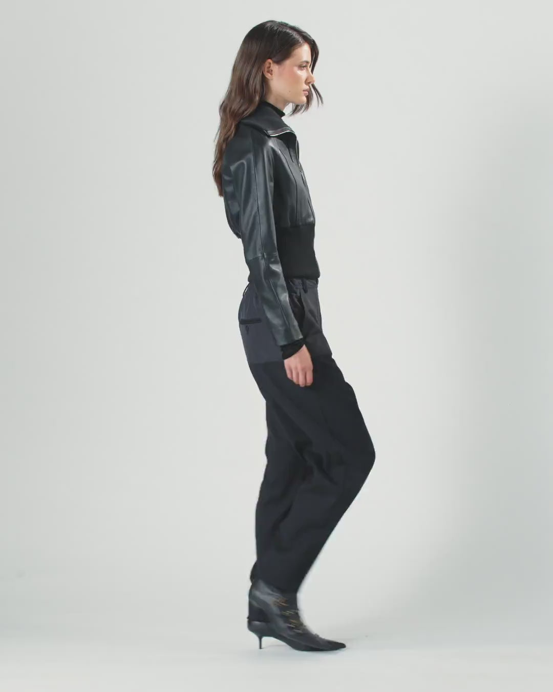 Slim-fit and feminine, it features a soft nappa leather body combined with a rib-knit maxi-hem. The very high collar, perfect for protecting you from the first cold spells of the new season, is also made from a comfortable ribbed knit. Metal zip fastening on the front. The biker jacket is a must-have for your wardrobe: the perfect outerwear piece to brave the change of season in truly bold style.