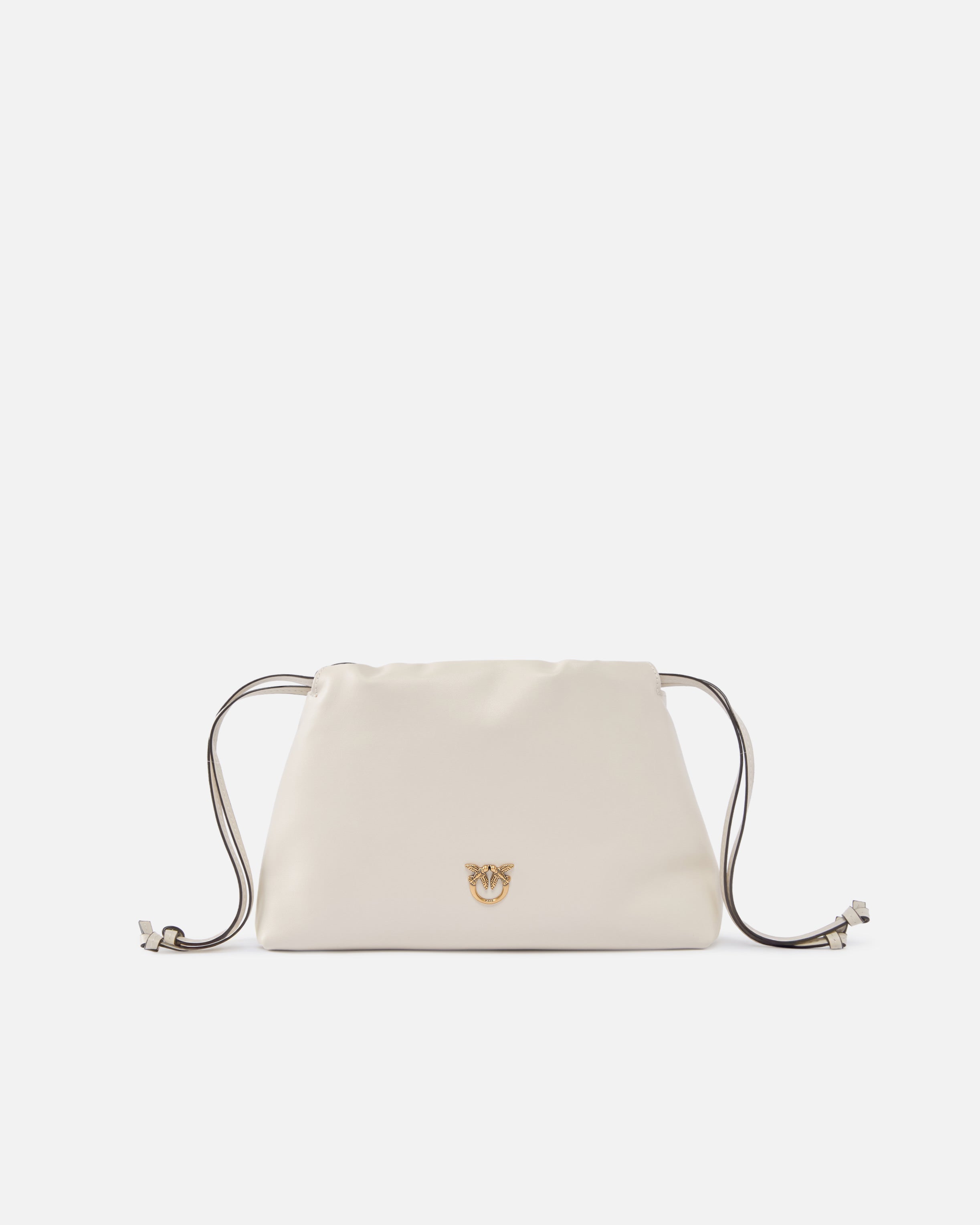 Small shoulder bag with soft, unstructured design, made from leather and featuring practical drawstring fastening. Featuring an adjustable leather strap so it can be worn on the shoulder or crossbody, the accessory is very versatile and practical for everyday use. The finishing touch is provided by the small Love Birds logo plaque symbolising the brand's singular style. The bag boasts a cotton fabric-lined interior and a zipped slip pocket. Activate your PINKO bag: verify the authenticity of your product and access a personalised experience by scanning the Love Birds embroidery on the back of the bag with your smartphone!