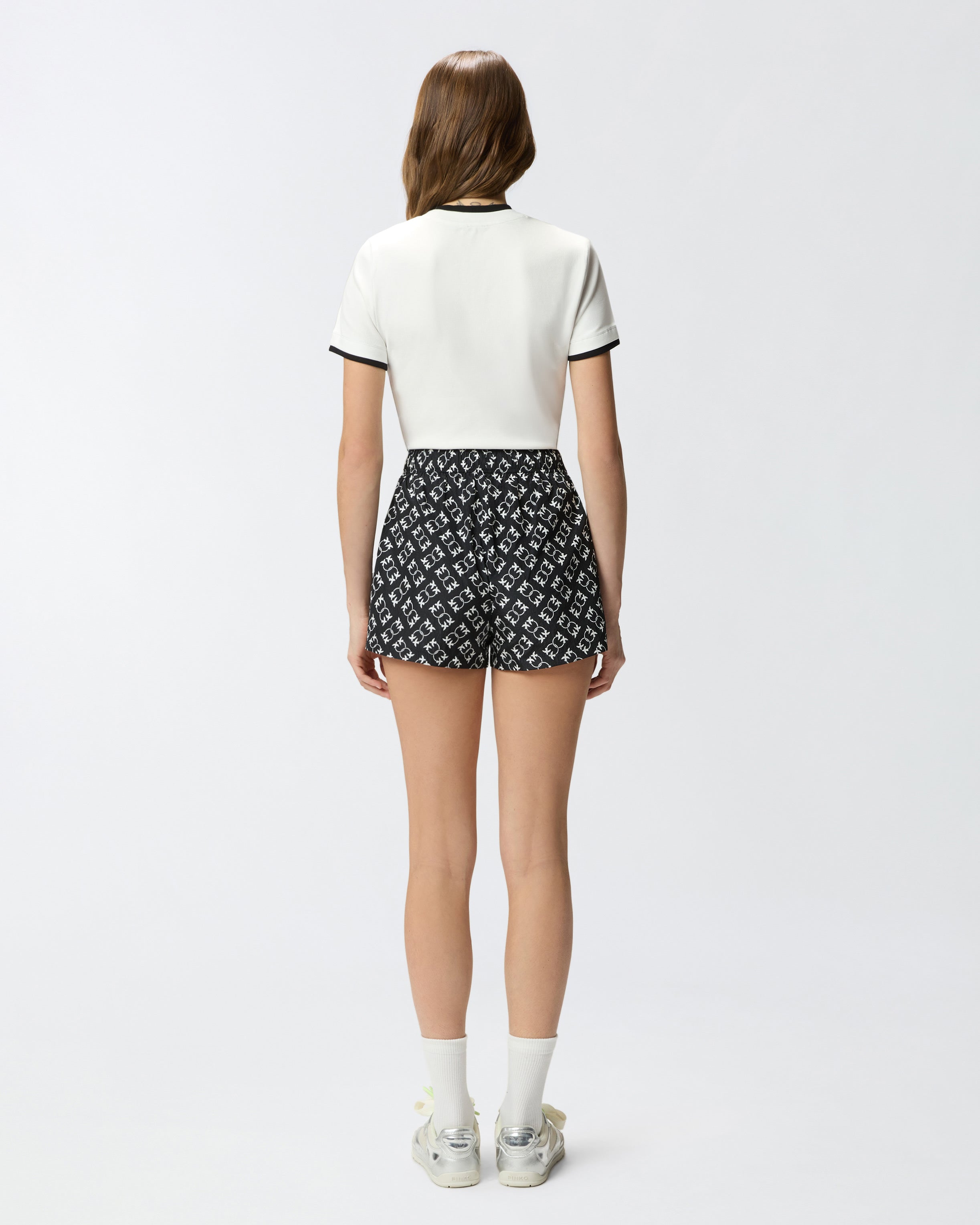 This garment runs one size small. T-shirt made from finely ribbed stretch cotton-blend jersey with layered-effect contrasting edges. This model also features the PINKO logo lettering, which stands out partially along the crew neckline, and a small Love Birds logo adorning the chest. This T-shirt will work seamlessly with your favourite trousers, elevating your look in a simple, elegant and original way. - NAVETTE T-SHIRT