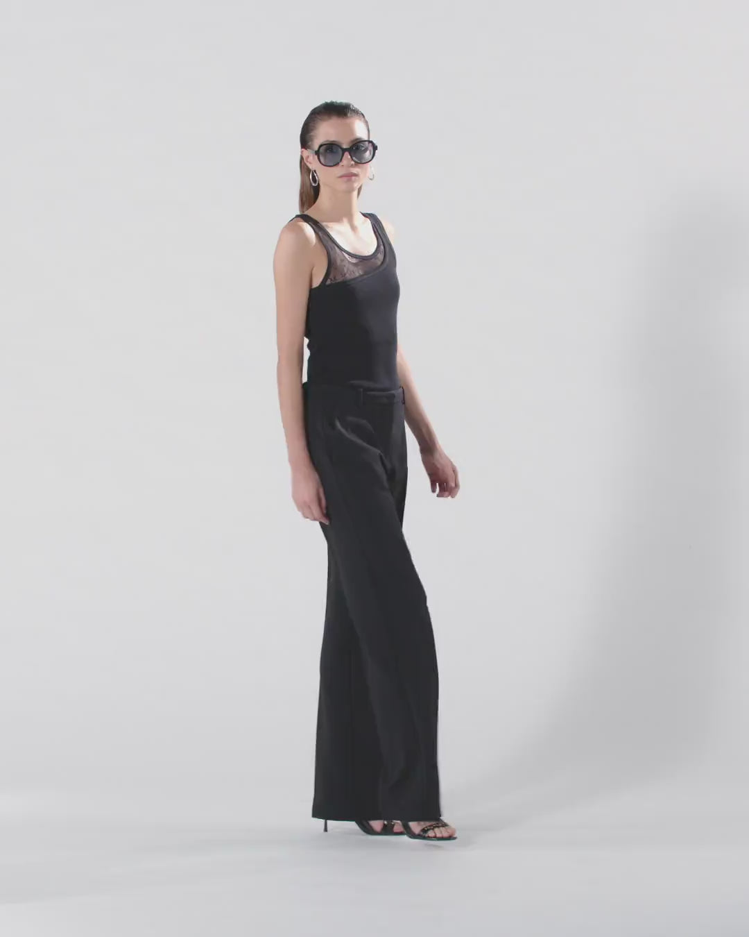 Round-neck top in soft, ribbed stretch cotton fabric, featuring a sheer lace insert with the Love Birds logo all over. Wear this garment with your favourite jeans for a modern look that won't sacrifice femininity. - CUPBOARD TANK TOP