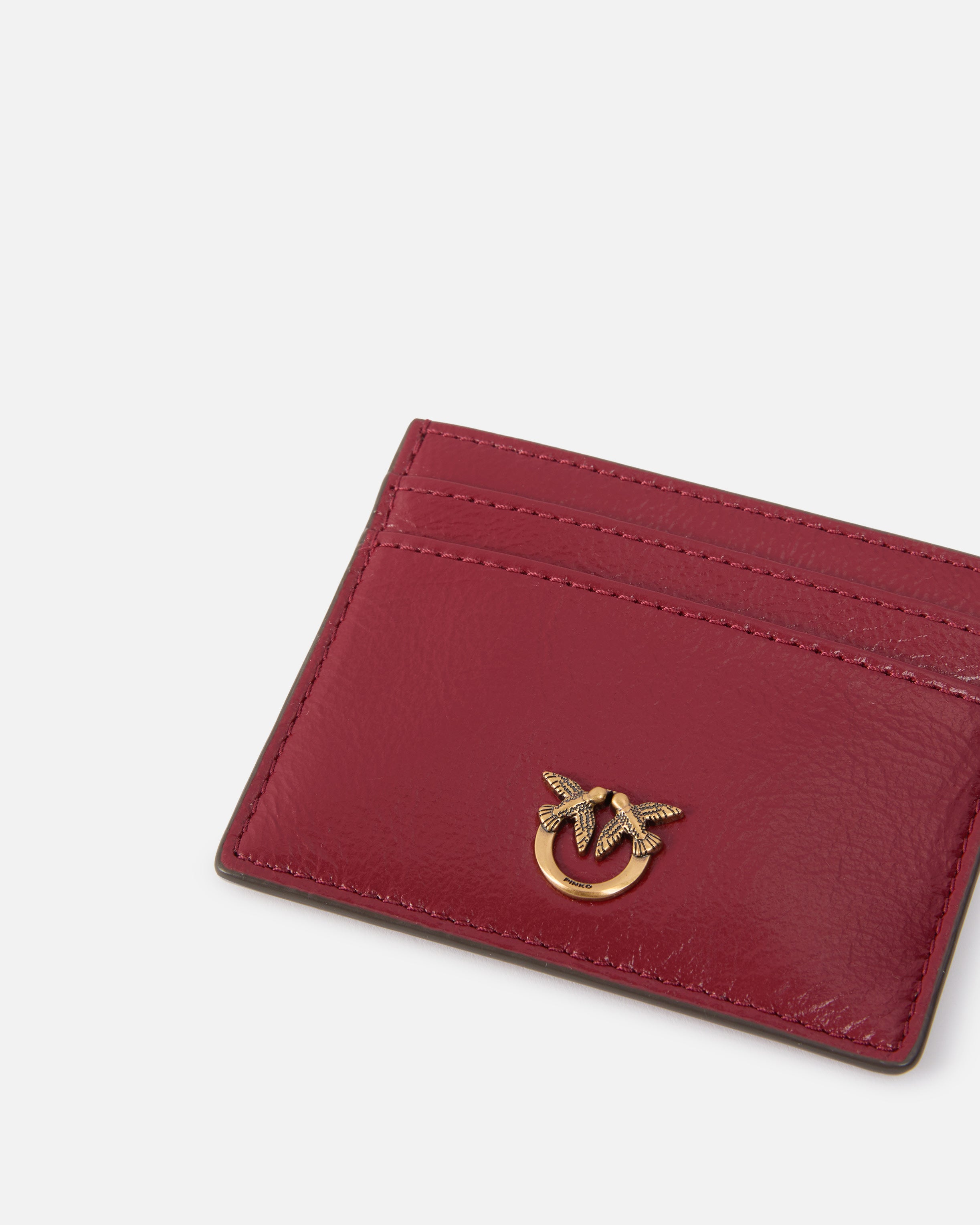Vintage-effect shiny leather card holder, complete with various slots for cards and documents and customised with a plaque depicting the iconic Love Birds Diamond Cut logo on the front. Essential and refined, this style fits easily into any bag and is perfect for on-the-go. Activate your PINKO accessory: verify the authenticity of your product and access a personalised experience by scanning the Love Birds embroidery on the back with your smartphone! - CARD HOLDER SIMPLY