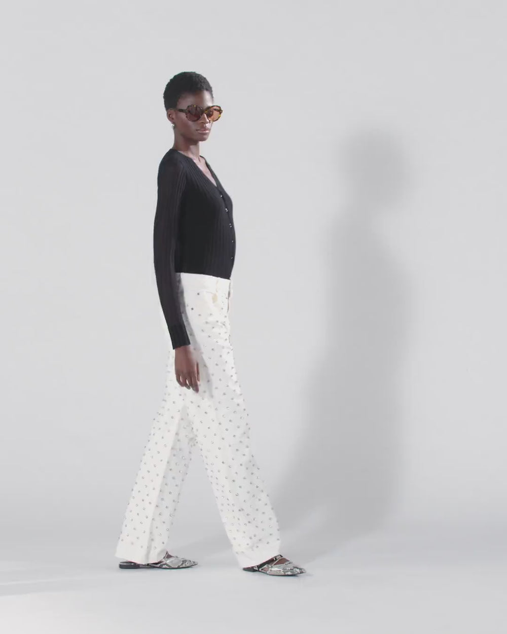 V-neck ribbed cardigan made of soft, lightweight wool, silk and cashmere-blend knit with cotton-blend inlay back and sleeves with an elegant transparent effect. This garment has a slim fit, is complete with a front fastening with buttons, and is finished with a label featuring jacquard PINKO logo lettering on the back. Understated and contemporary, this model will become a real all-purpose staple in your wardrobe. - CALDO CARDIGAN
