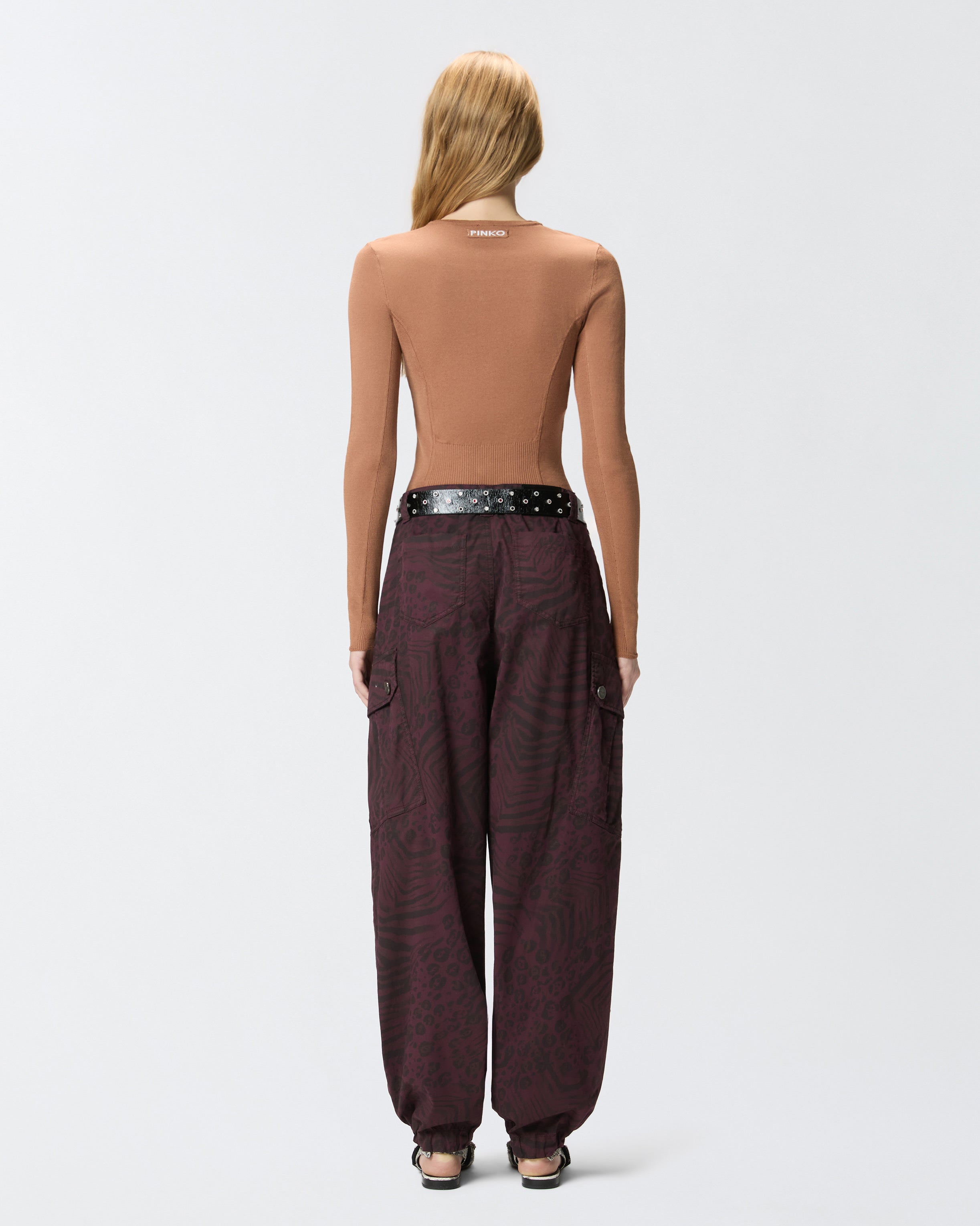Cardigan in ultra-cool cotton and viscose knit fabric, featuring ribbing at the bottom and along the armholes. The fastening with small mother-of-pearl buttons provides subtle elegance perfect for everyday use, while the final touch is given by the label with PINKO logo lettering on the back.
