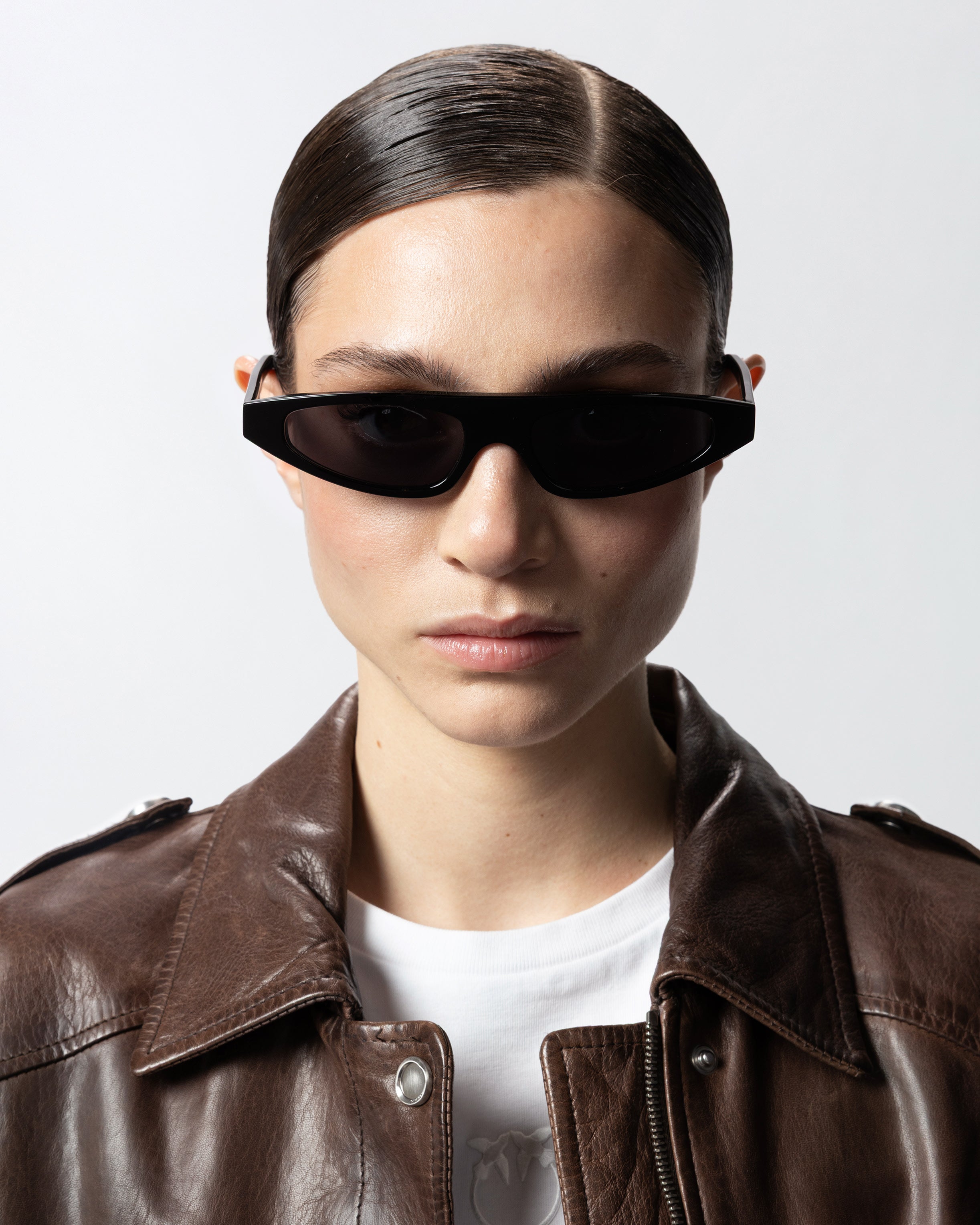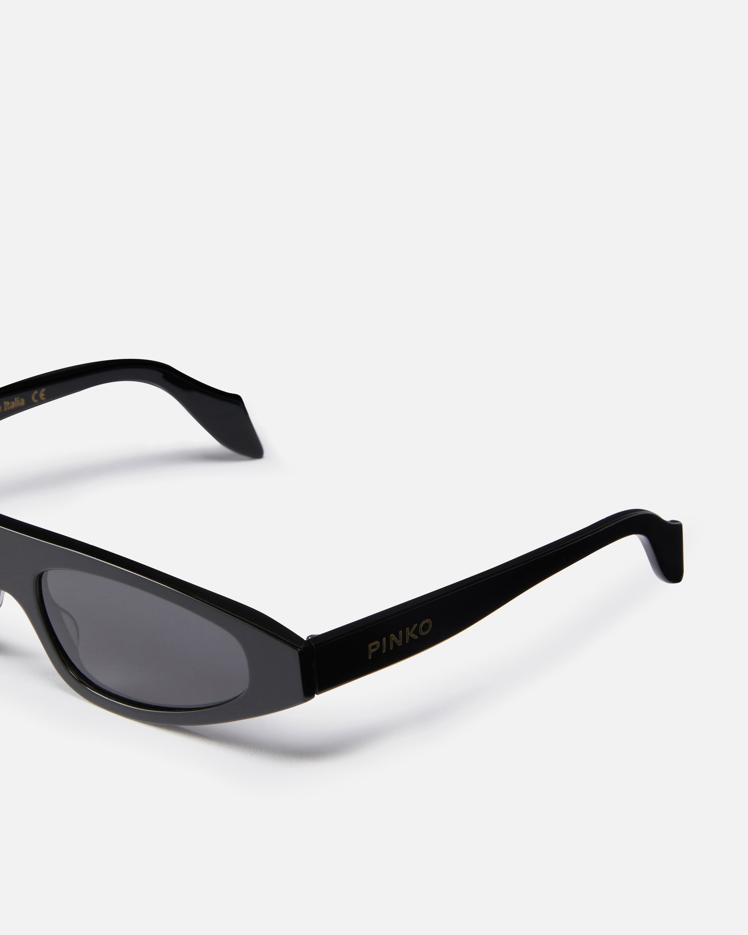 Sunglasses in cellulose acetate with elongated and slightly pointed modern design and left temple customised with the PINKO logo at the side. These sunglasses feature category-3 lenses made from CR-39, a material that, despite being similar to glass, is stronger and more durable. These provide excellent protection from sunlight and UV rays. From designing the model to creating the finished glasses, this capsule collection is produced entirely in Italy. Even the small parts, such as front hinges, temple cores and screws, are all purchased from Italian companies.
