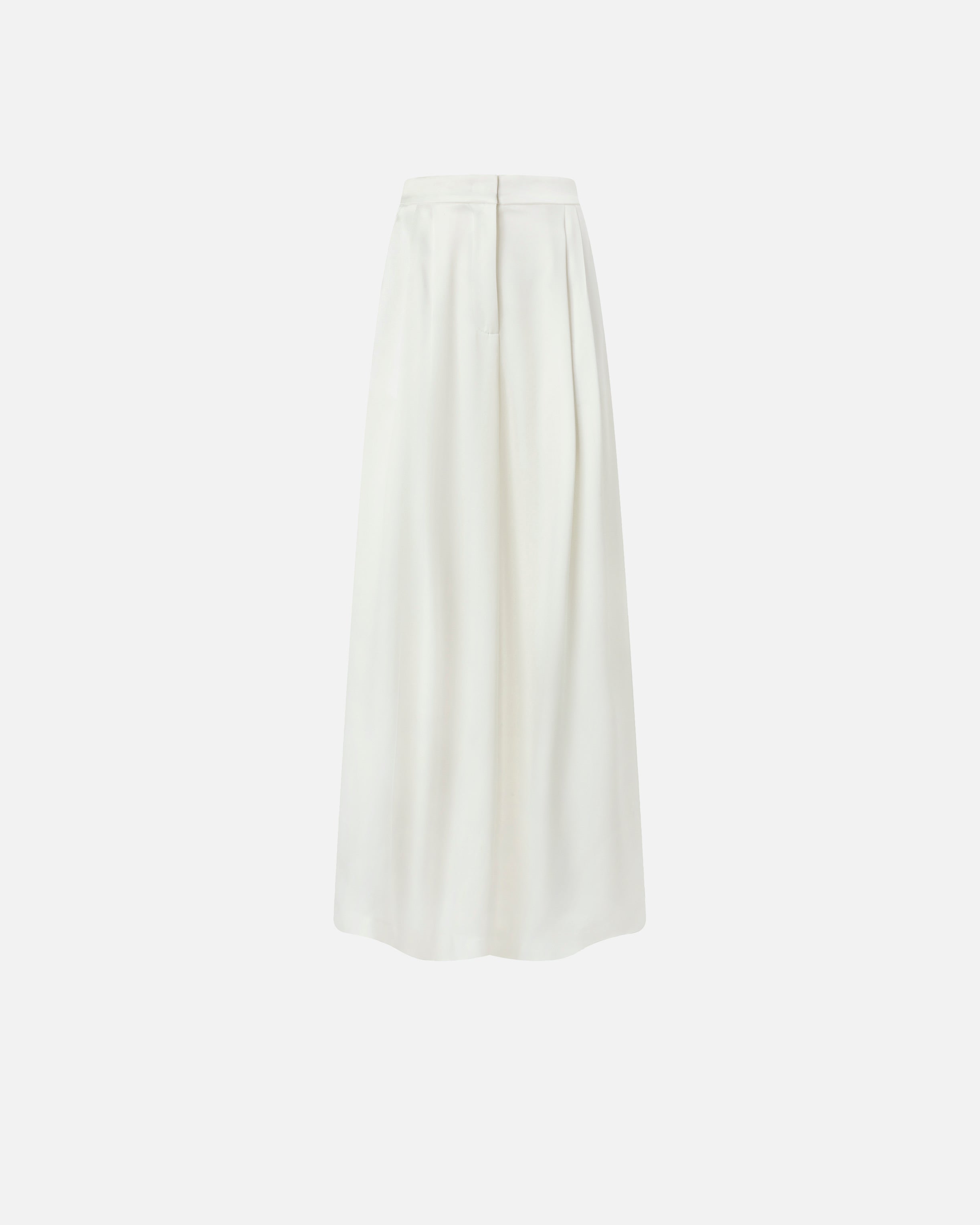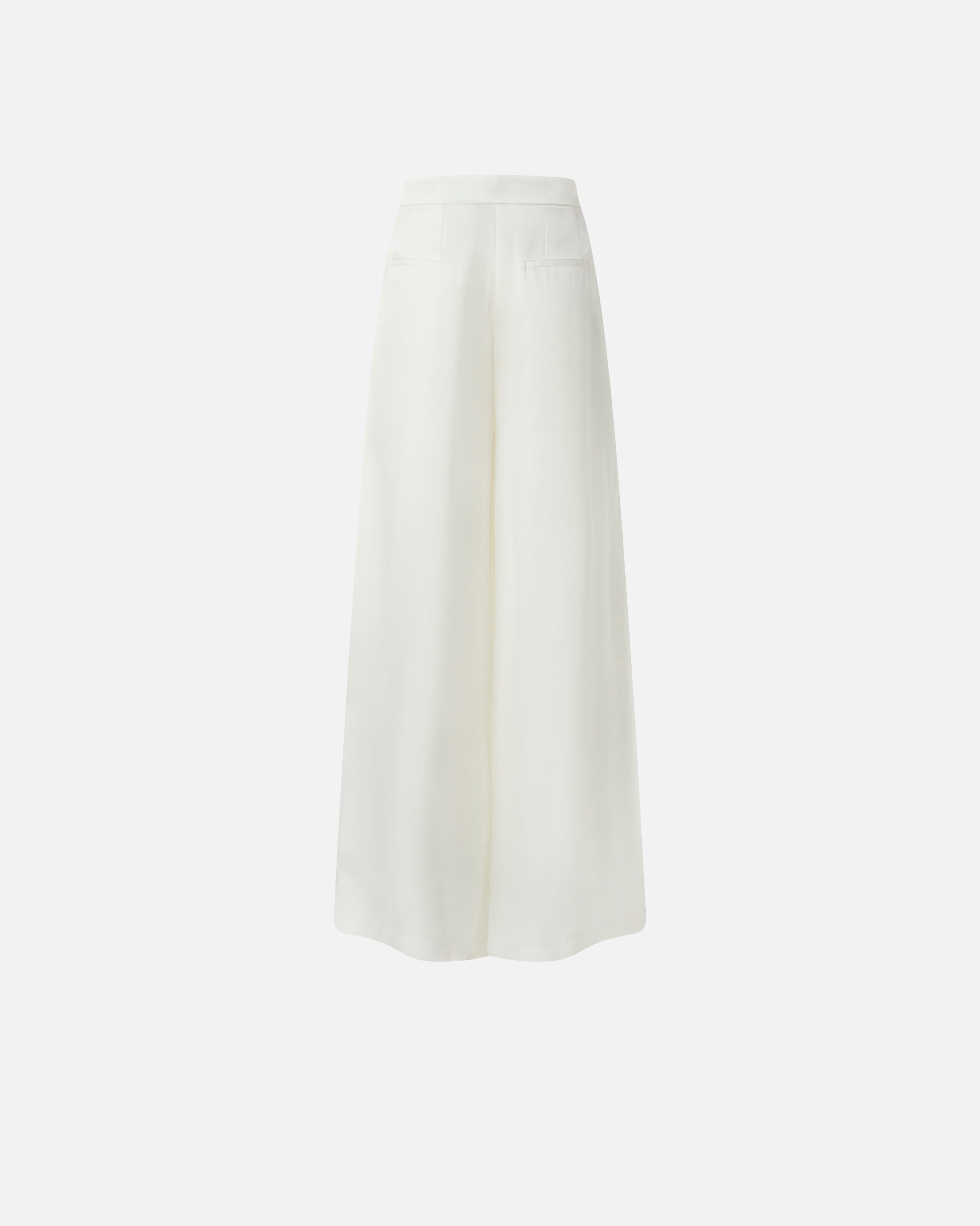 Palazzo trousers with a particularly wide hemline, embellished by double darts and functional welt pockets on the back. The shiny satin gives the piece unique shimmer and a particularly soft hand. Wear this style for a fluid, slinky effect that elegantly enhances the lines with sophistication and the feminine silhouette.