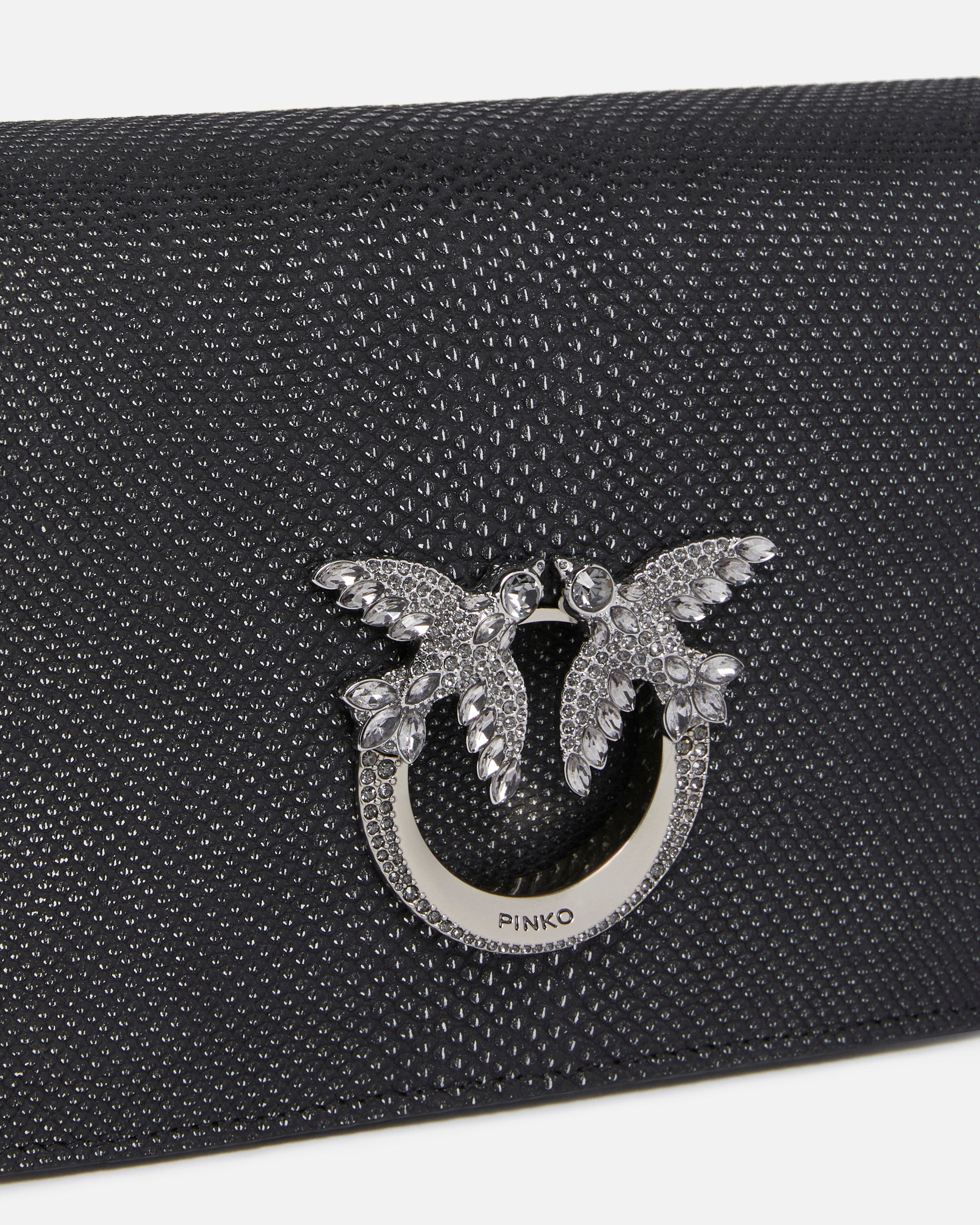 Mini Love Bag crossbody bag crafted from fine karung python skin dyed with glitter during a second step, which creates a luminous, almost laminated finish. This distinctive type of leather has natural imperfections, which differ from bag to bag: they are not to be considered defects but fine characteristics that make every model unique. The shoulder strap, which allows for a comfortable crossbody carry, is completed by an adjustable shoulder pad. The bag’s fastening is complete with the iconic Love Birds Diamond Cut metal logo buckle. The bag is part of the Limited Edition special capsule collection which comprises PINKO Galleria-exclusive limited-edition models. Use the special NFC chip to enjoy a special experience, specific to the bag you have just bagged!