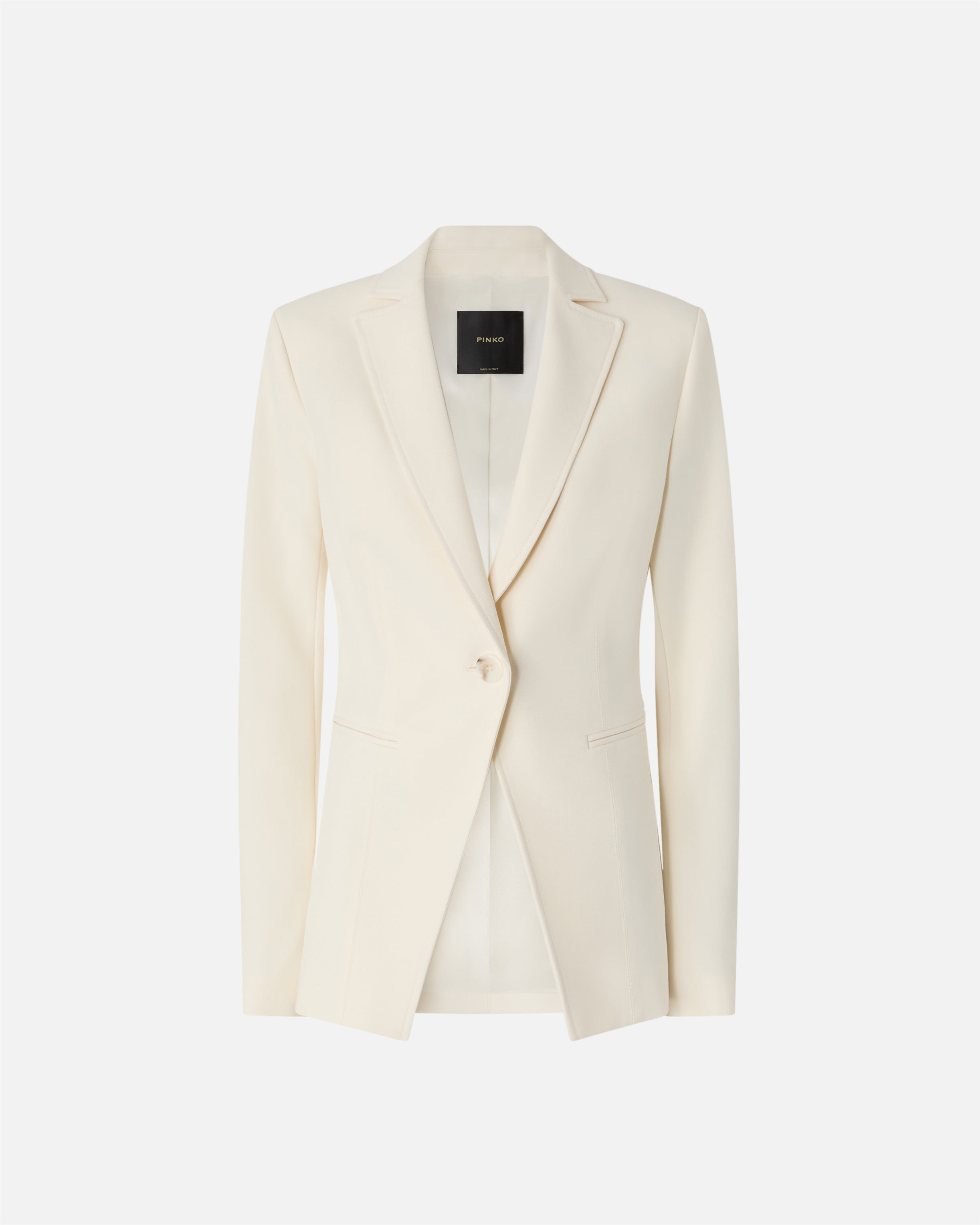 Single-breasted fitted-waist jacket with welt pockets and cuff slit detail, and dual-fabric design made exceptionally versatile by its two-way stretch. Practical and understated, this blazer is lined to provide comfort when worn and gives office looks an original finishing touch thanks to its striking front opening.