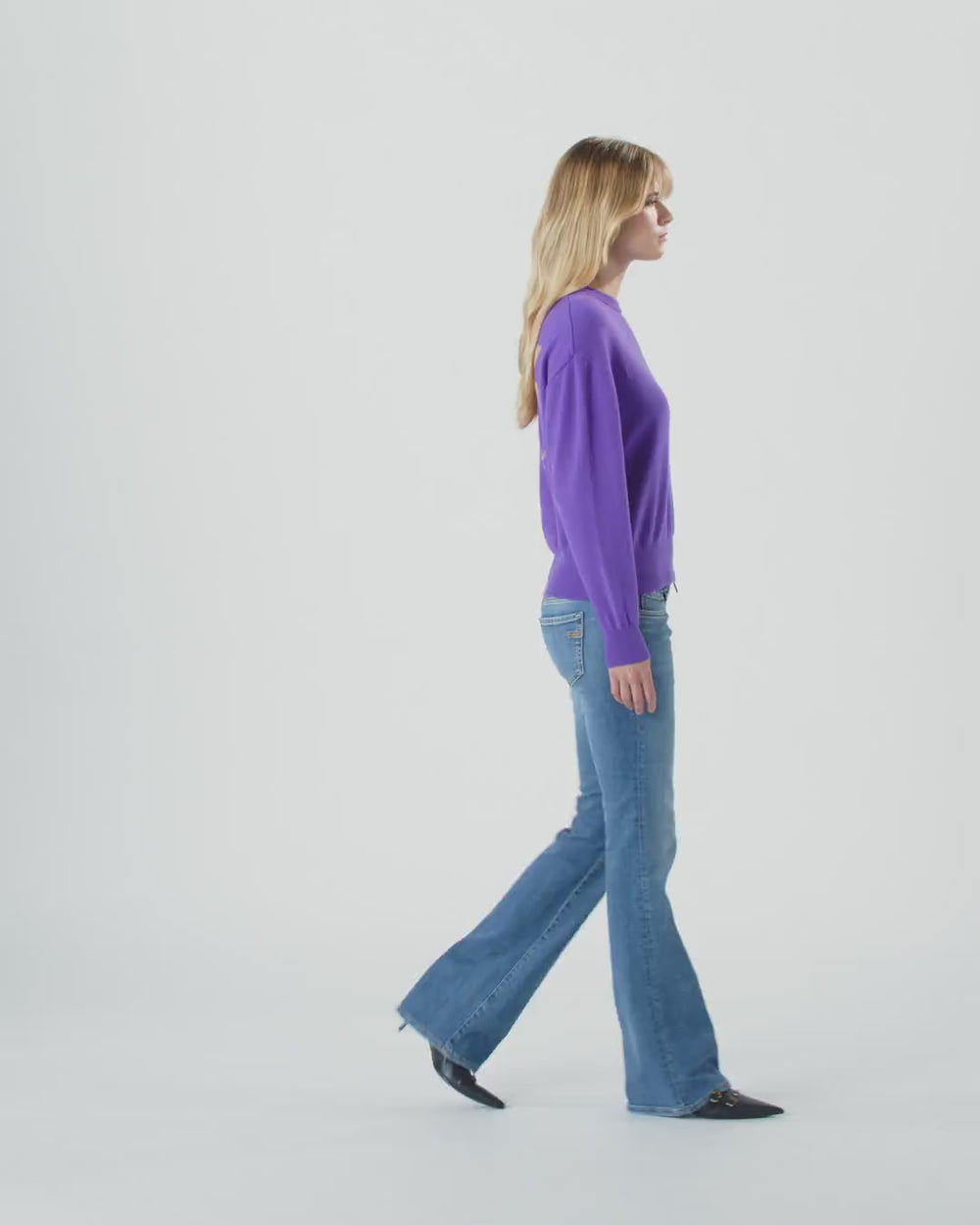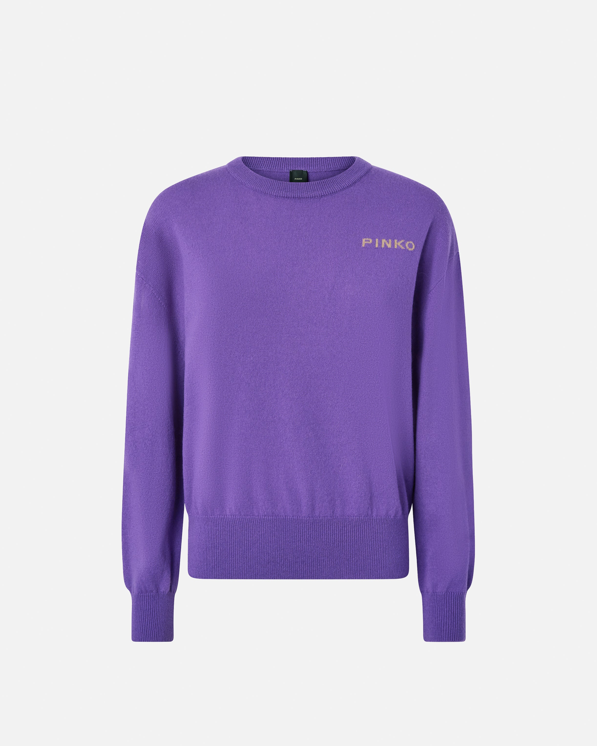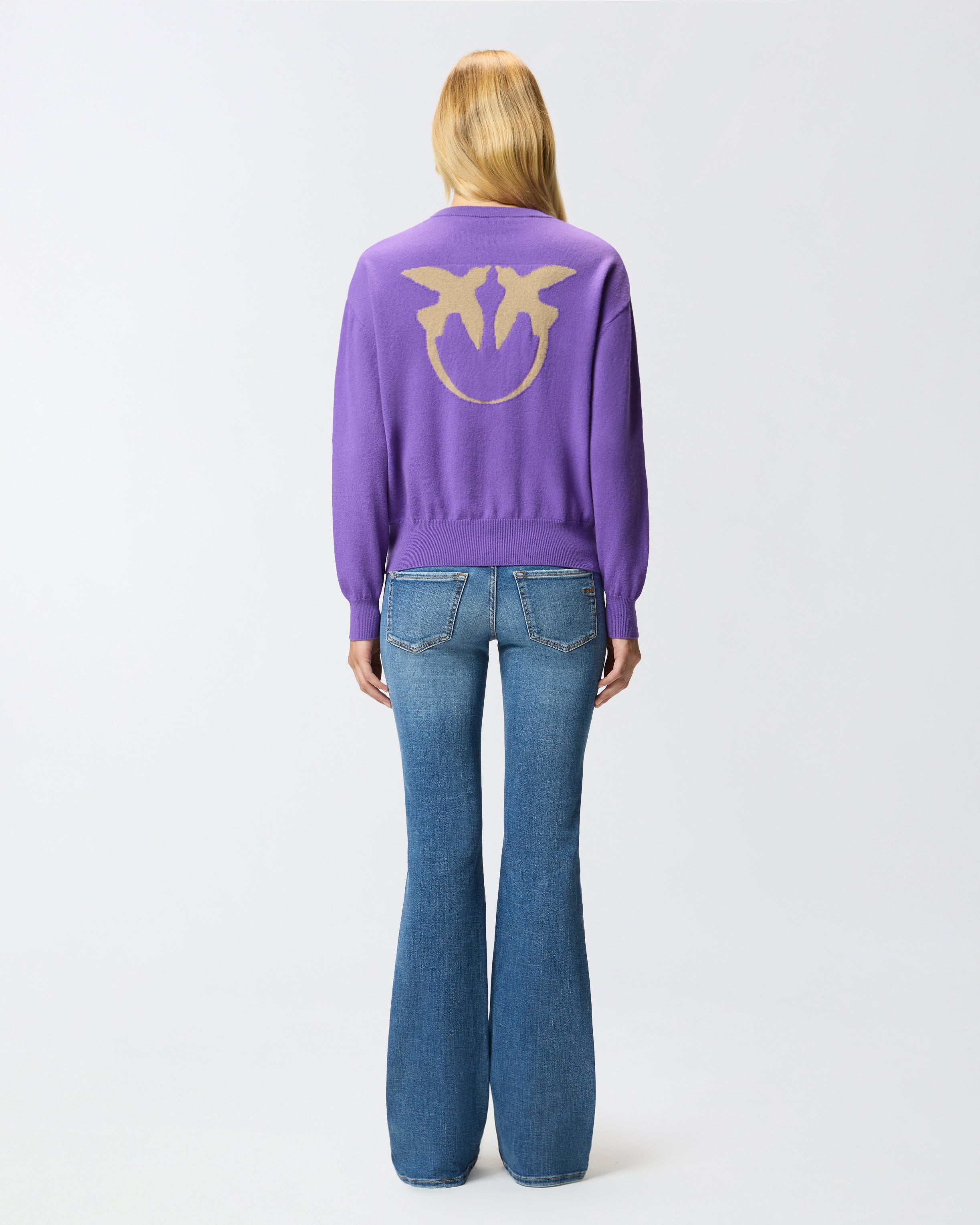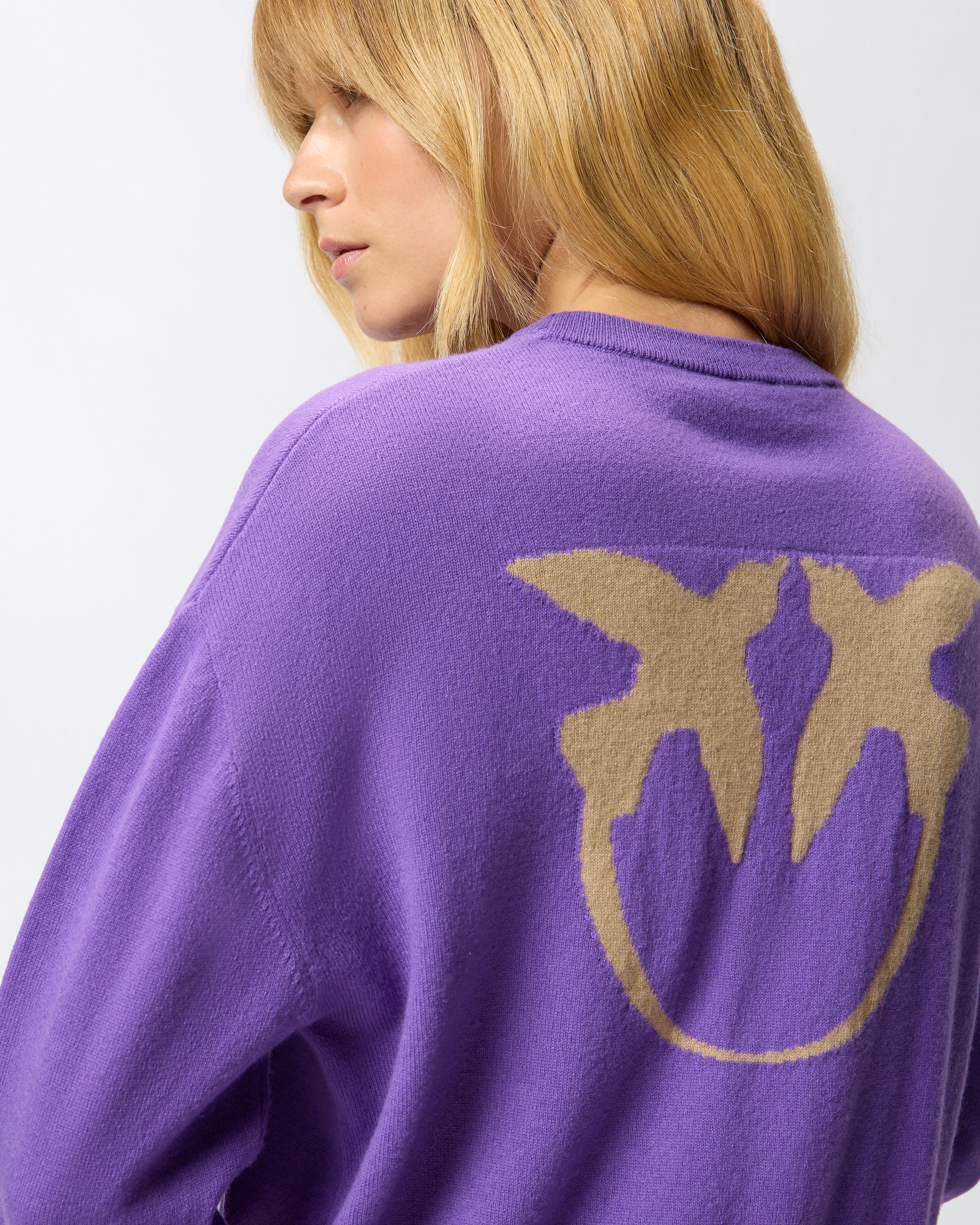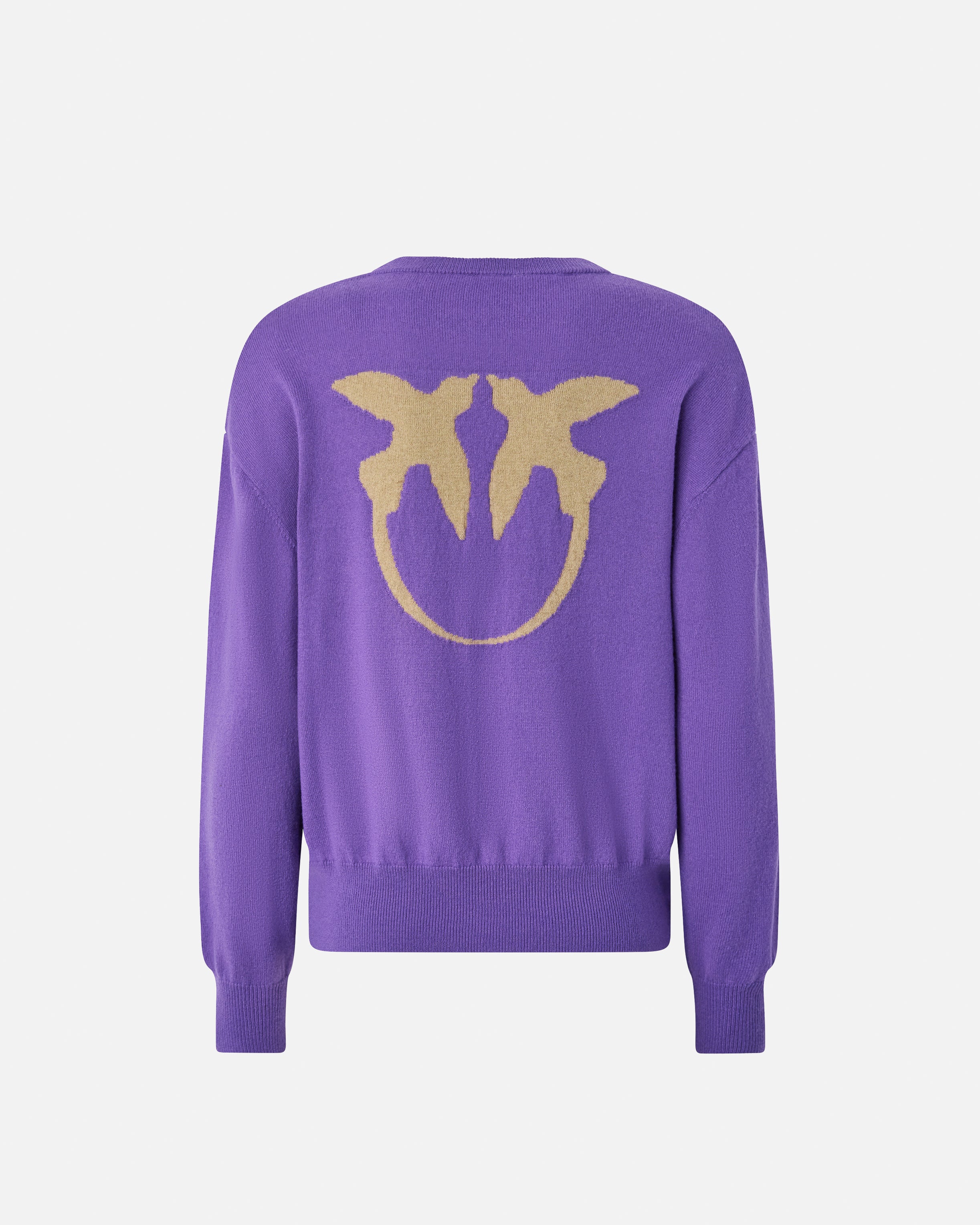 Long-sleeved crew-neck sweater in a fine wool and cashmere blend. The inimitable style of the brand is expressed to the fullest in this garment, embellished by the Love Birds maxi-logo on the back and the contrasting PINKO lettering logo on the front left side. The piece has undergone finishing tests to minimise the possible formation of pilling, ensuring greater fabric softness and durability. The design is completed with a ribbed crew-neck, hem and cuffs.