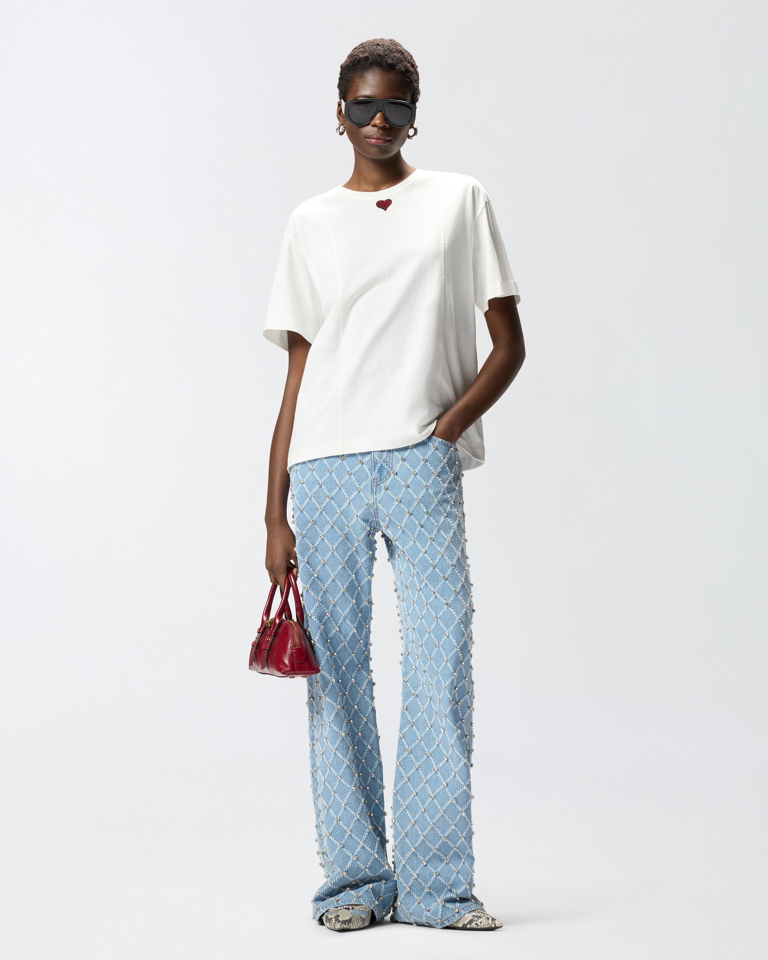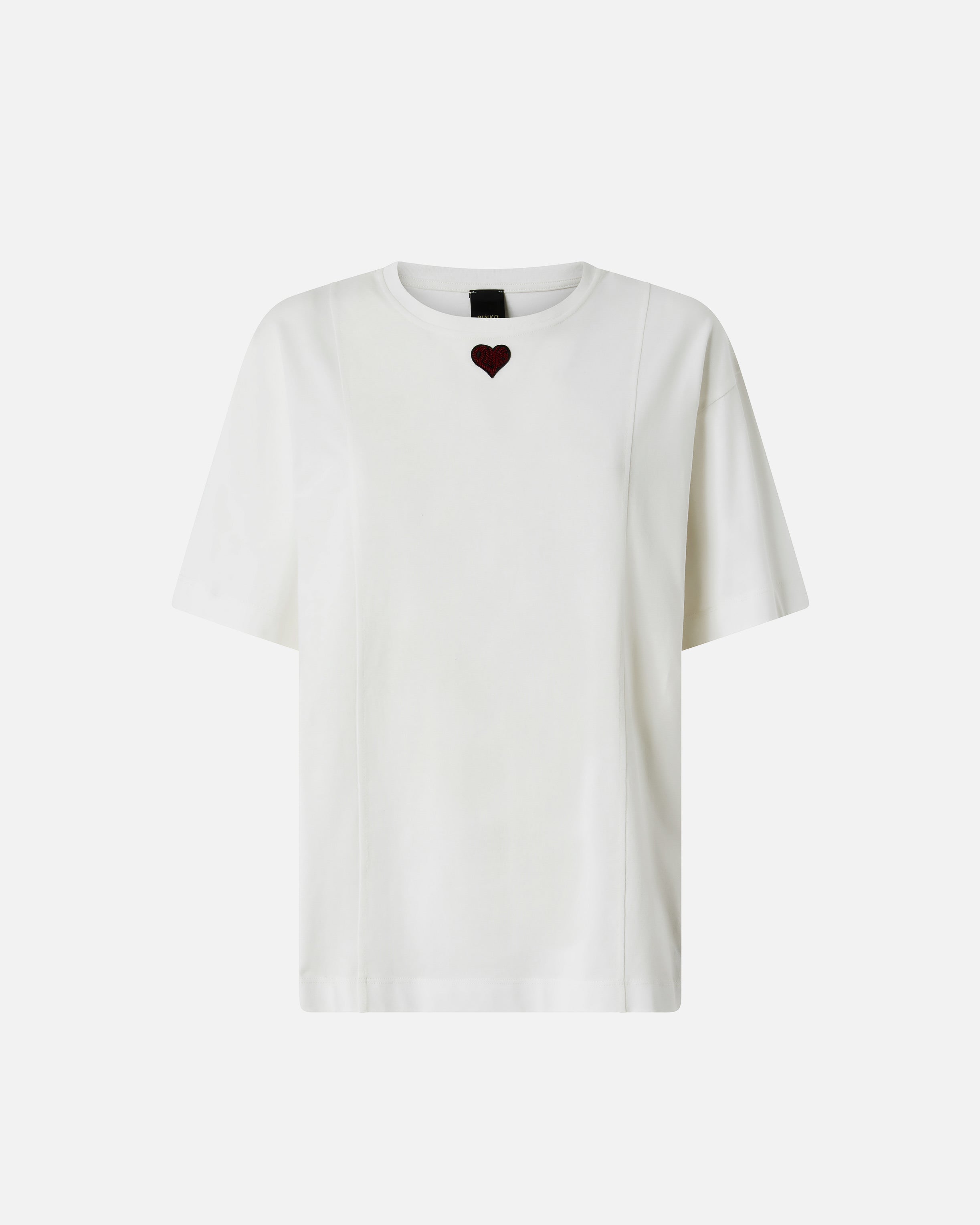 Crew-neck short-sleeved T-shirt in pure cotton jersey with embroidered heart on the front. A wardrobe staple reworked by PINKO, ideal for everyday outfits that are both functional and feminine. - TORTINO T-SHIRT