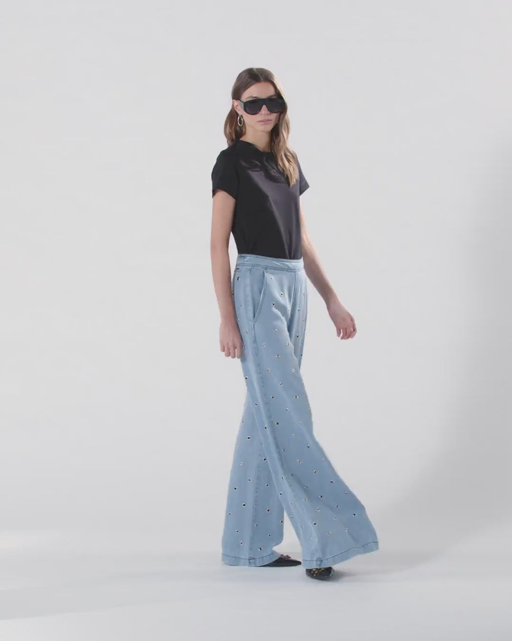 Crew-neck short-sleeved T-shirt in pure cotton jersey. This model features a refined Love Birds logo embroidered on the chest. Essential and contemporary, this T-shirt will become a true wardrobe staple for your summer looks and beyond.