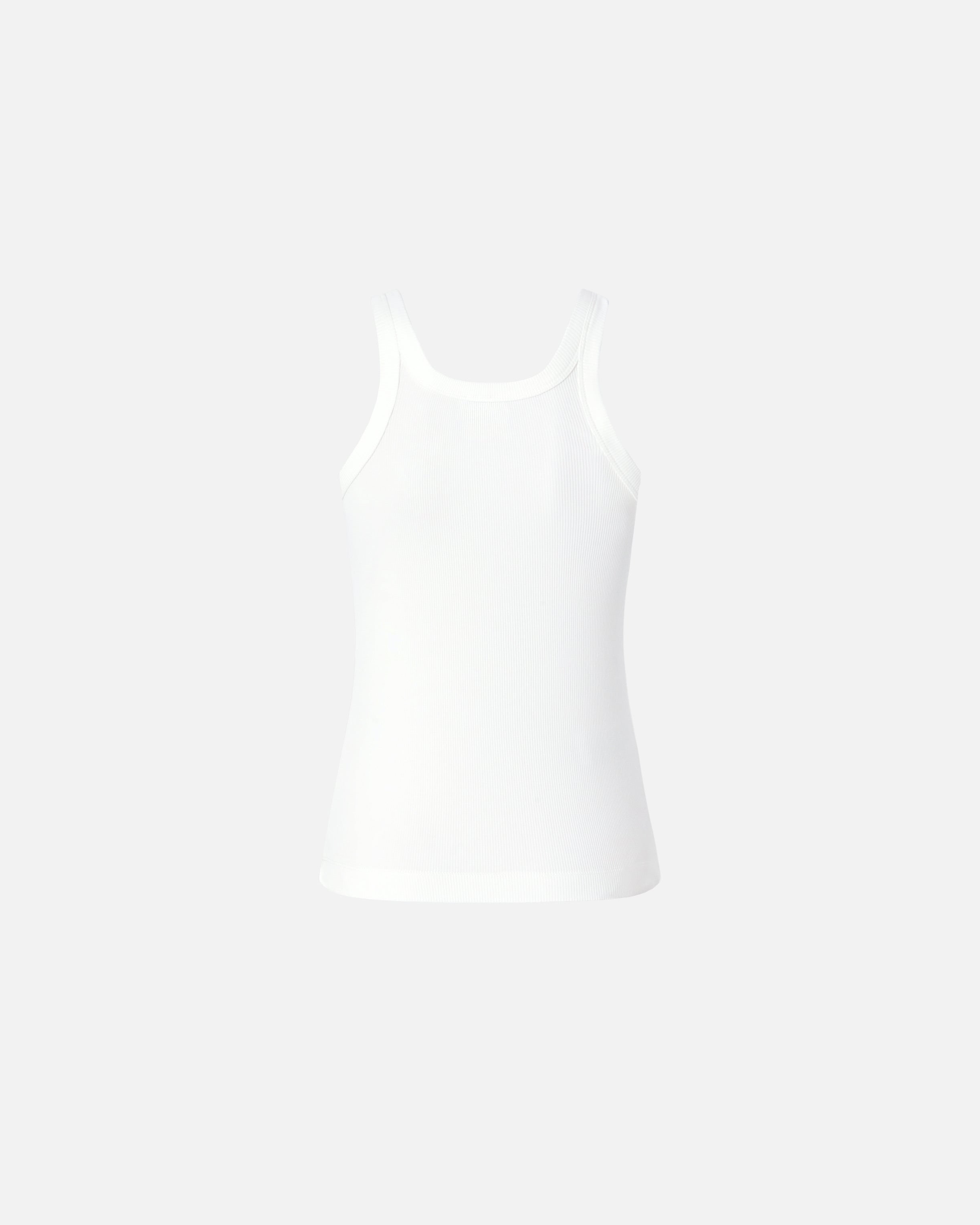 Vest top made of ribbed stretch cotton and embossed with the iconic PINKO lettering logo on the front surrounded by luxurious rhinestones. A minimalist women's staple, perfect as part of a functional, modern summer look.