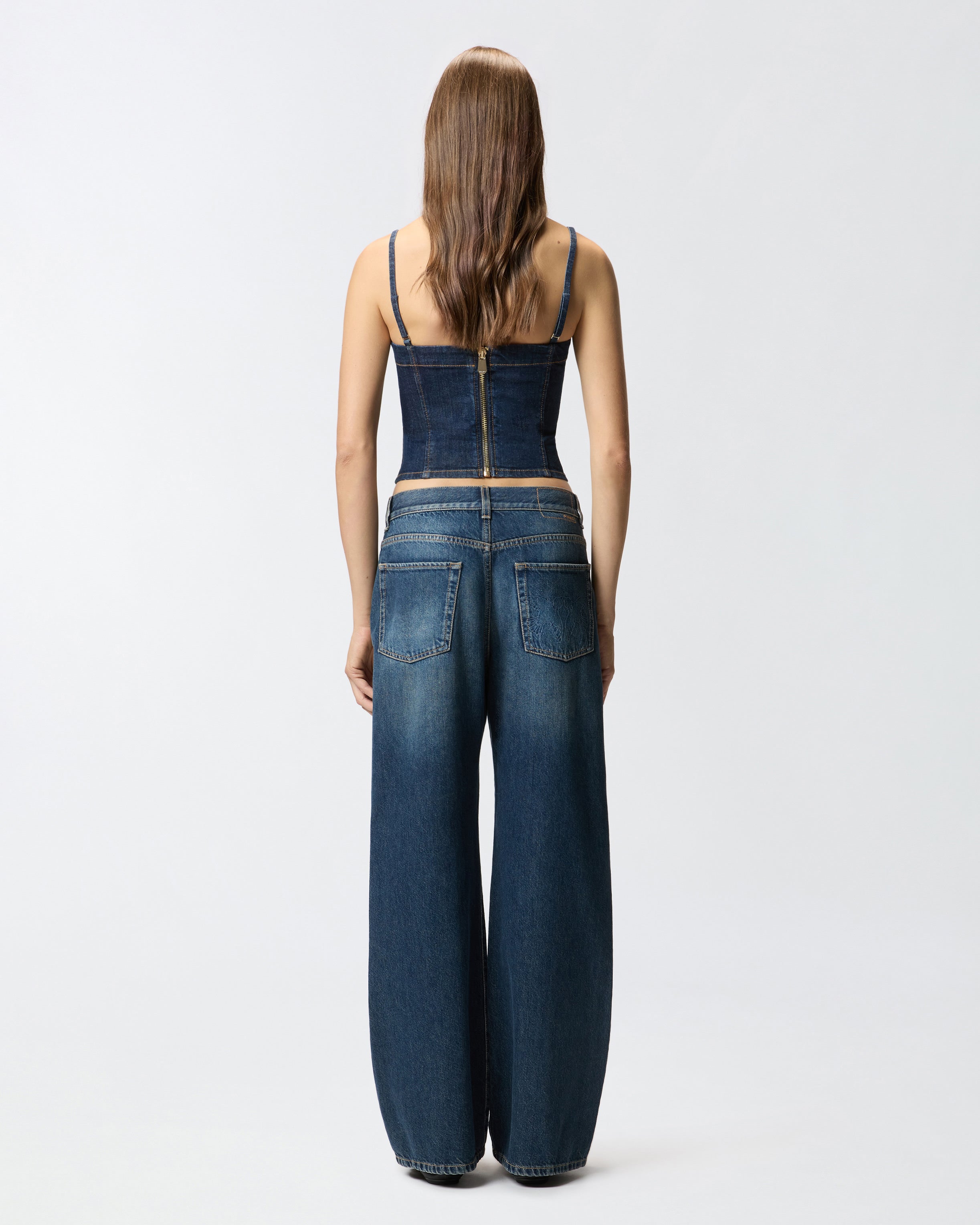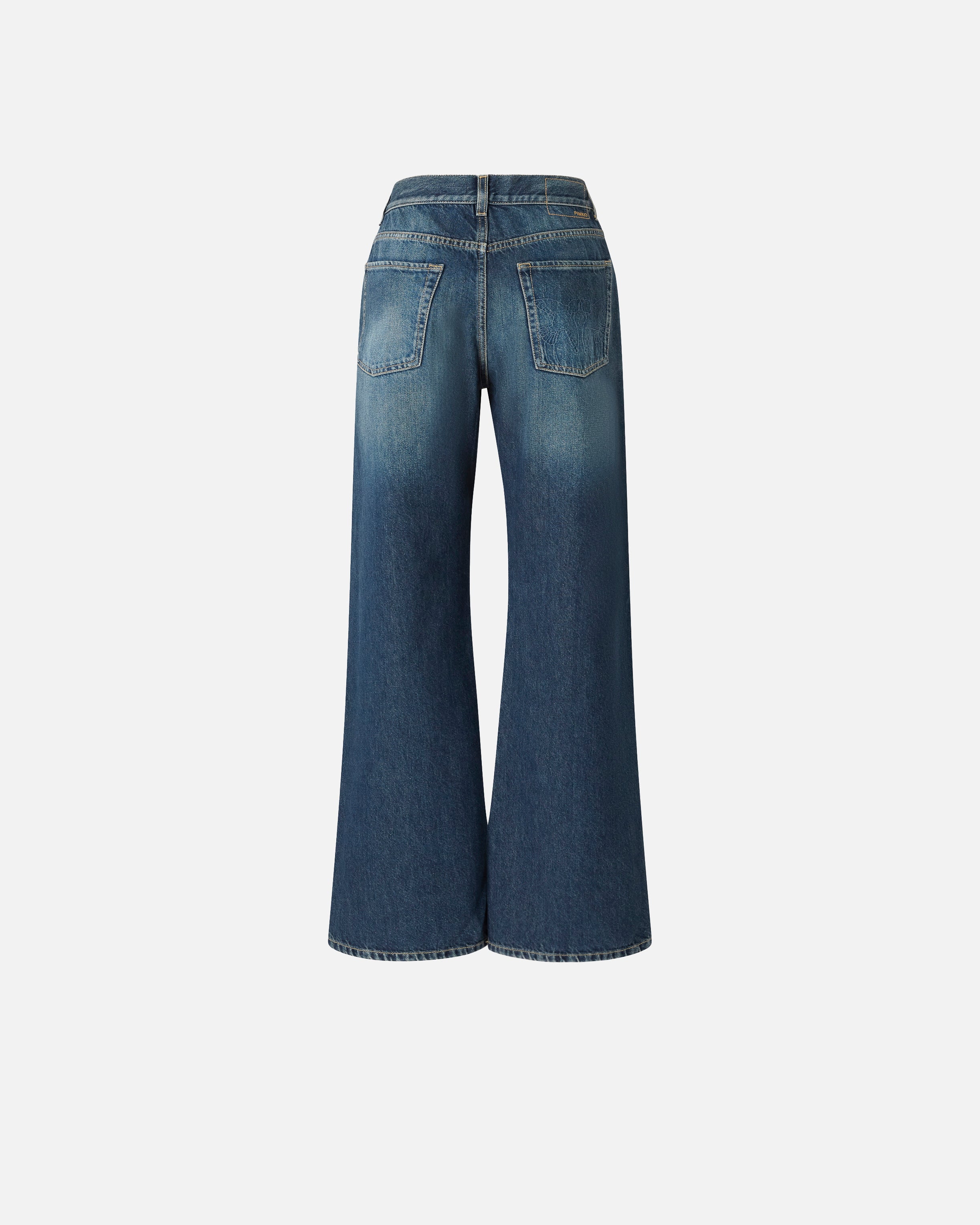 Women's five-pocket jeans with a straight, wide leg, made from soft lyocell and cotton denim for a more fluid feel and a stonewash treatment. The brand's lettering logo embroidered on the back of the waistband, the Love Birds logo with embroidered birds on the right back pocket and the detachable belt loop with Love Birds logo add pure PINKO style to the design. Play around with pairings and wear these jeans low on the waist with a dropped crotch for a more masculine look, or pair them with more feminine pieces for a style that is all about contrast. Belt loops and front concealed zip and button fastening. This model is a little wider than the usual size.