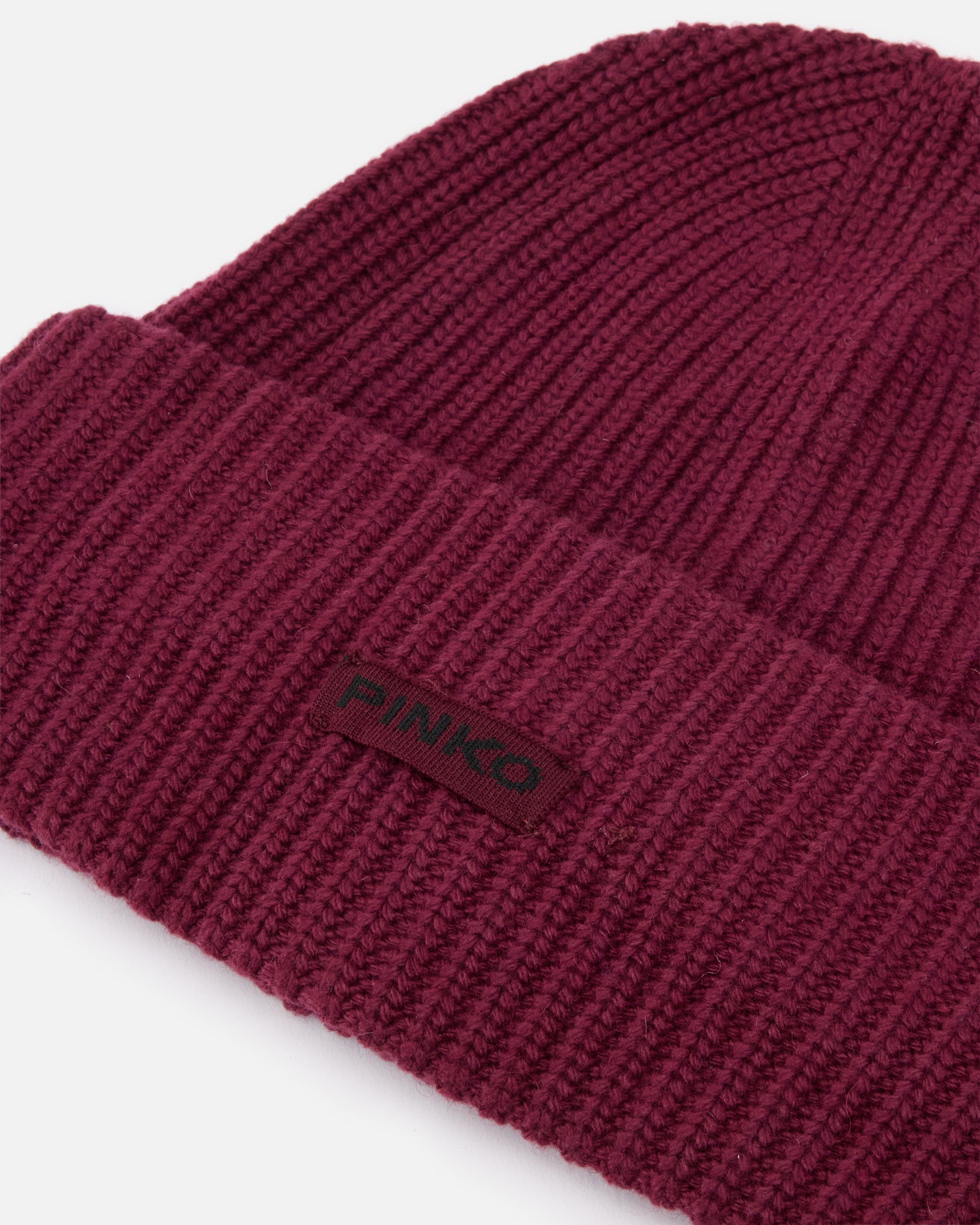 Beanie-style hat for braving the coldest temperatures with an unmistakable touch of PINKO style. Made from soft wool, cashmere and viscose-blend yarn that is extremely soft to the touch, the style features an all-over rib knit that creates a three-dimensional effect. The final touch is given by the tone-on-tone label with PINKO lettering logo on the back.