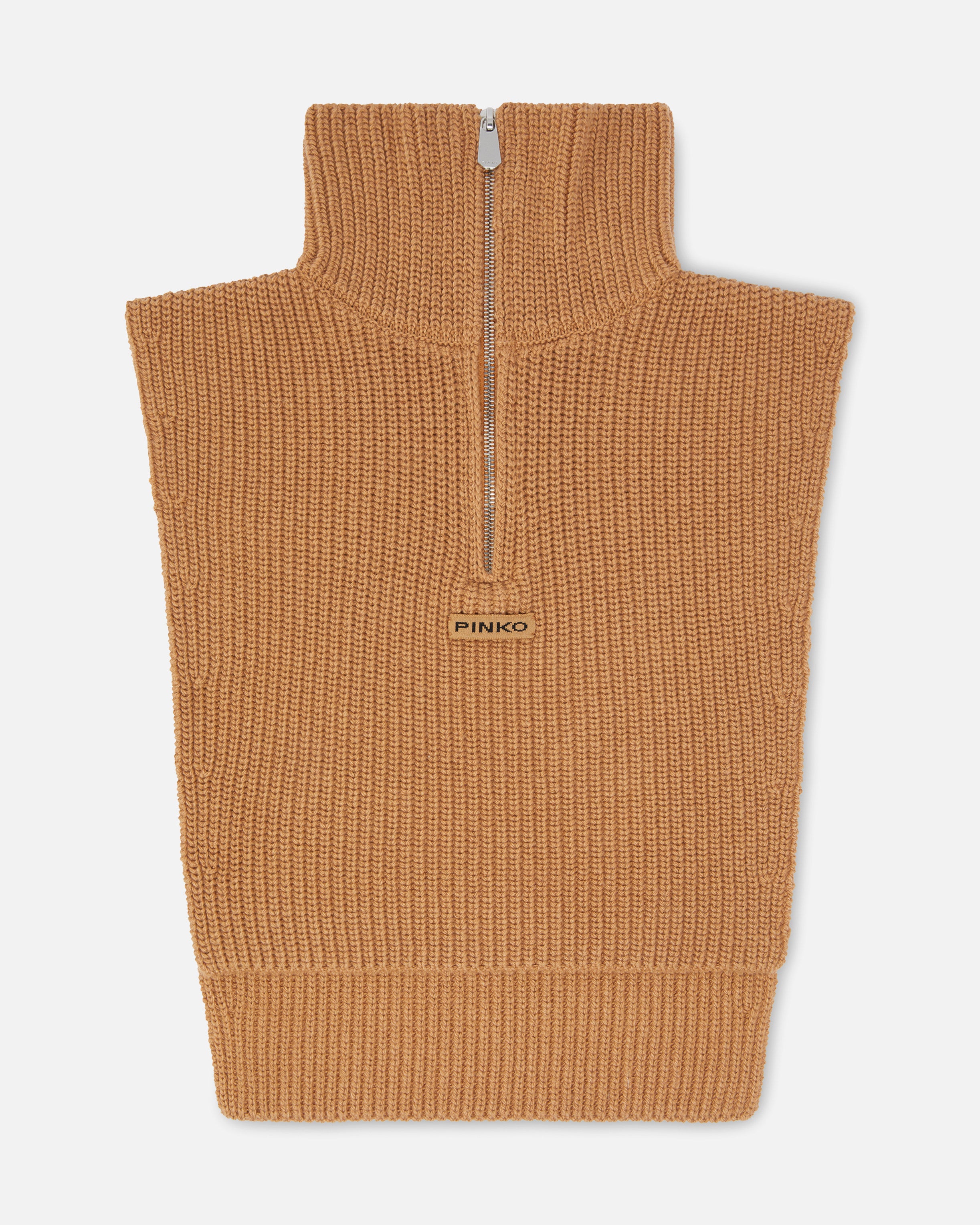 Neck warmer with zip, made from soft wool, cashmere and viscose-blend knit fabric that is extremely soft to the touch. The all-over rib knit creates a three-dimensional effect. The final touch is given by the tone-on-tone label with PINKO lettering logo on the back. Understated but striking, this style is designed to be worn just like a scarf and is perfect for completing your outfits with an original edge.