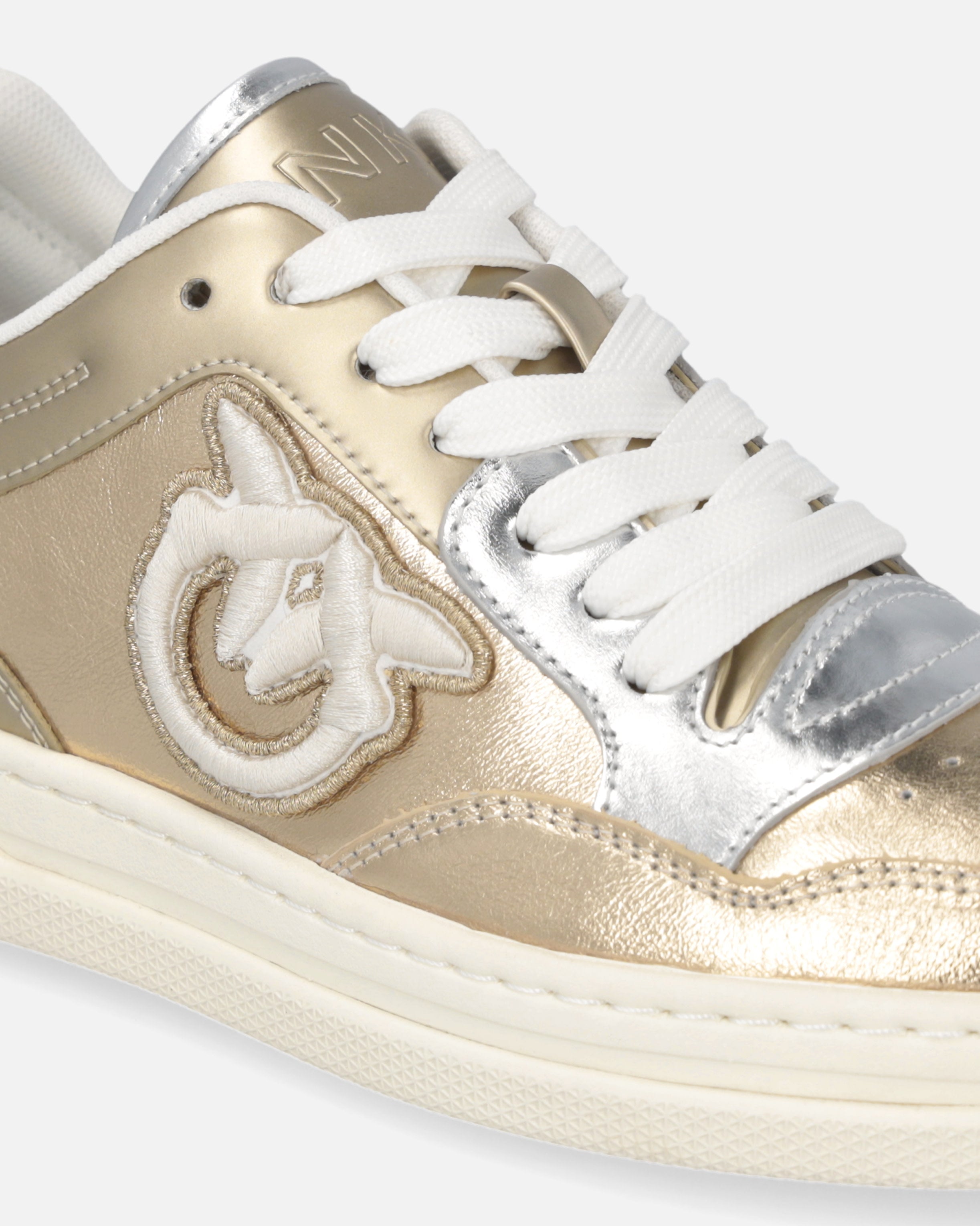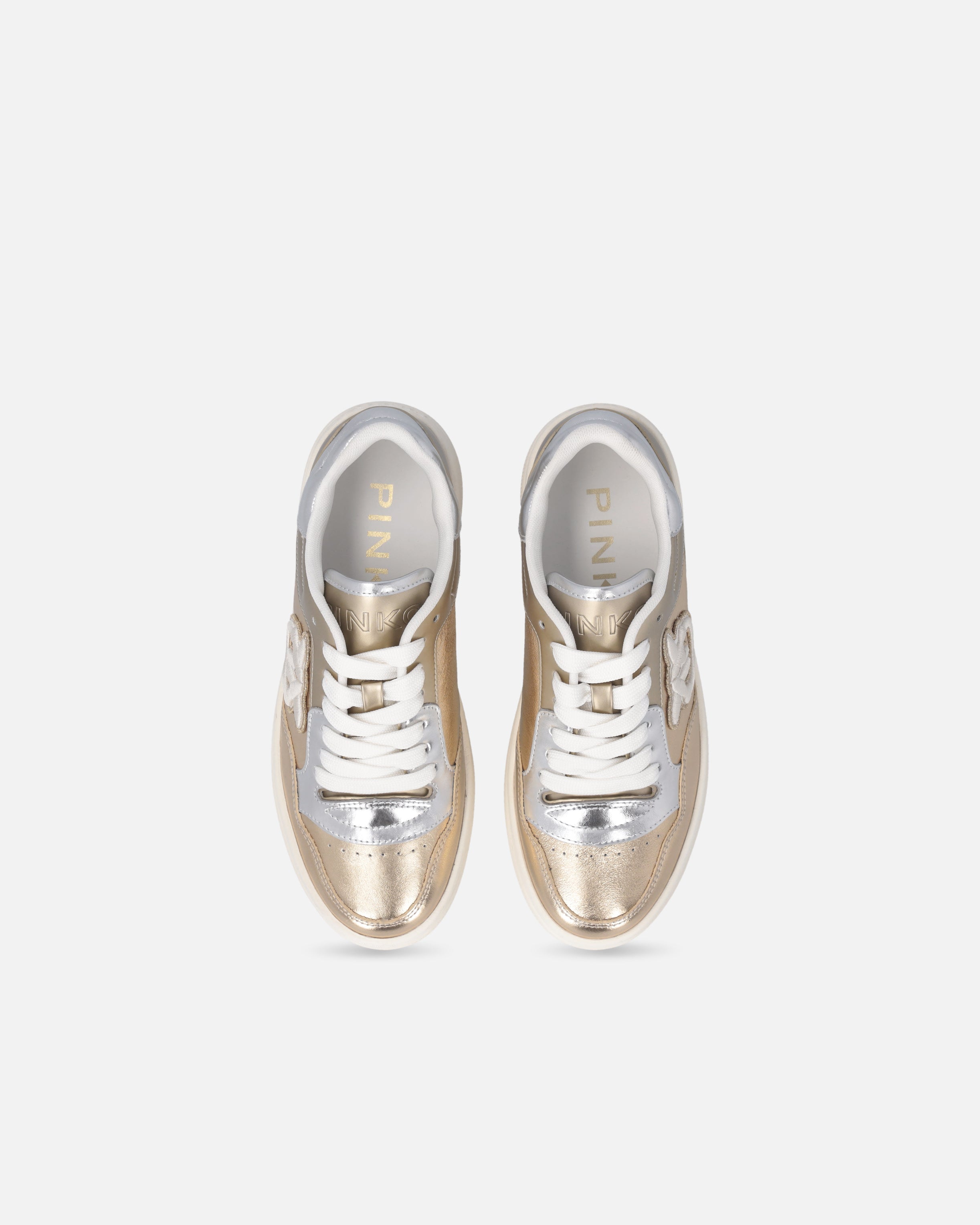 Lace-up sporty shoes in smooth, laminated-effect leather. The upper, multicoloured and made from a variety of materials, is dotted with inserts that enhance the model with the elegance that has always set the brand apart. The PINKO logo lettering adorns the tongue and insole, while the Love Birds logo appears on the sides of the sneakers. The 3.5 cm-high sole features a logo-branded outsole. This shoe is destined to become a go-to for your casual looks and beyond, don't you think?