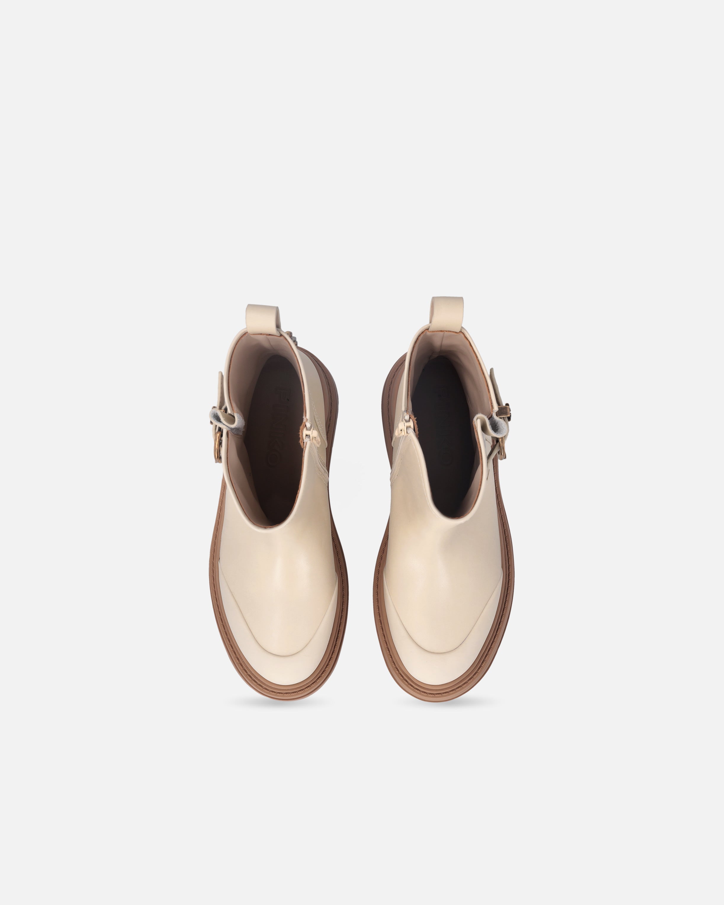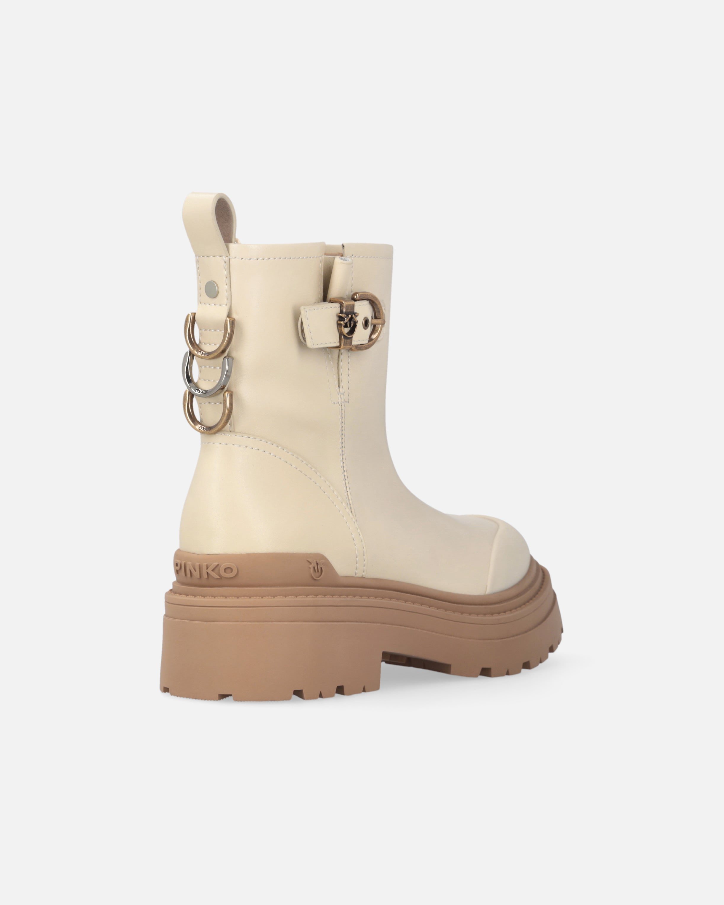 Smooth leather booties with 17 cm-high leg shaft and 5.5 cm platform sole. These shoes feature a side gusset to help put them on, which is fastened with an adjustable strap with buckle and metal loop bearing the Love Birds logo. This bold yet understated ankle boot is enhanced by gold- and silver-coloured metal elements on the back that enhance the style, making it the perfect shoe for those after the right balance between edgy and elegant. We all know that details are what make the difference: choose this pair to give your casual looks a unique touch.