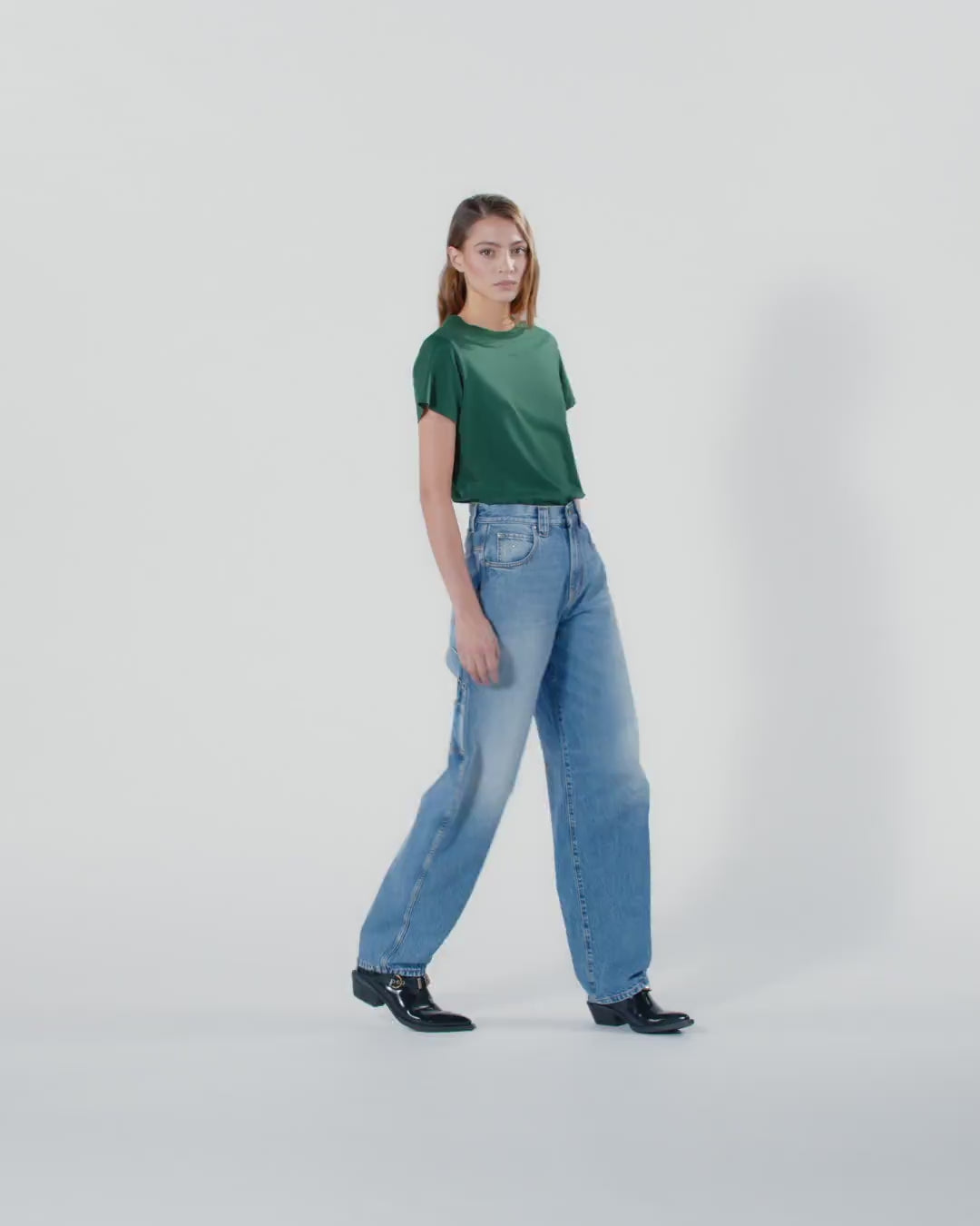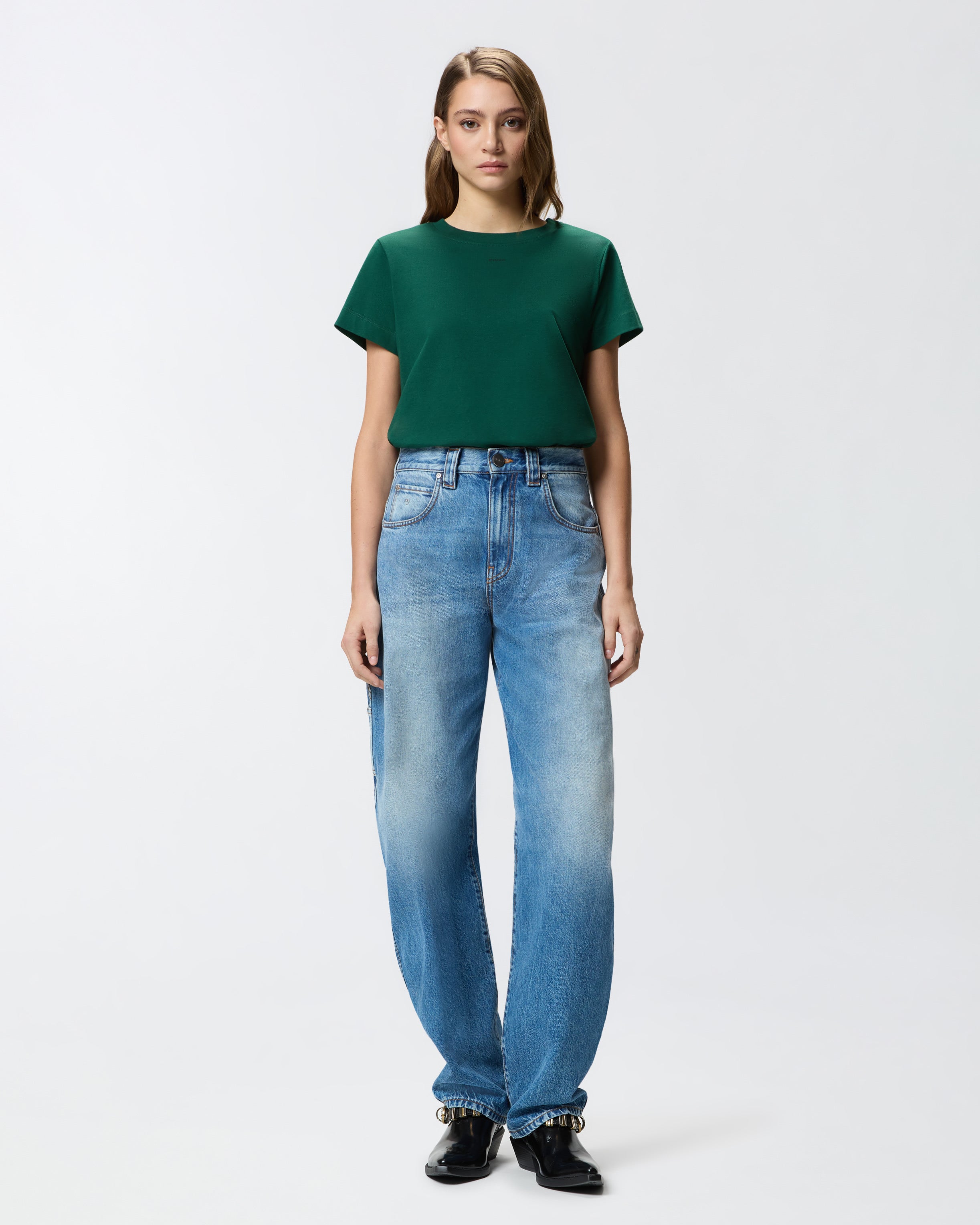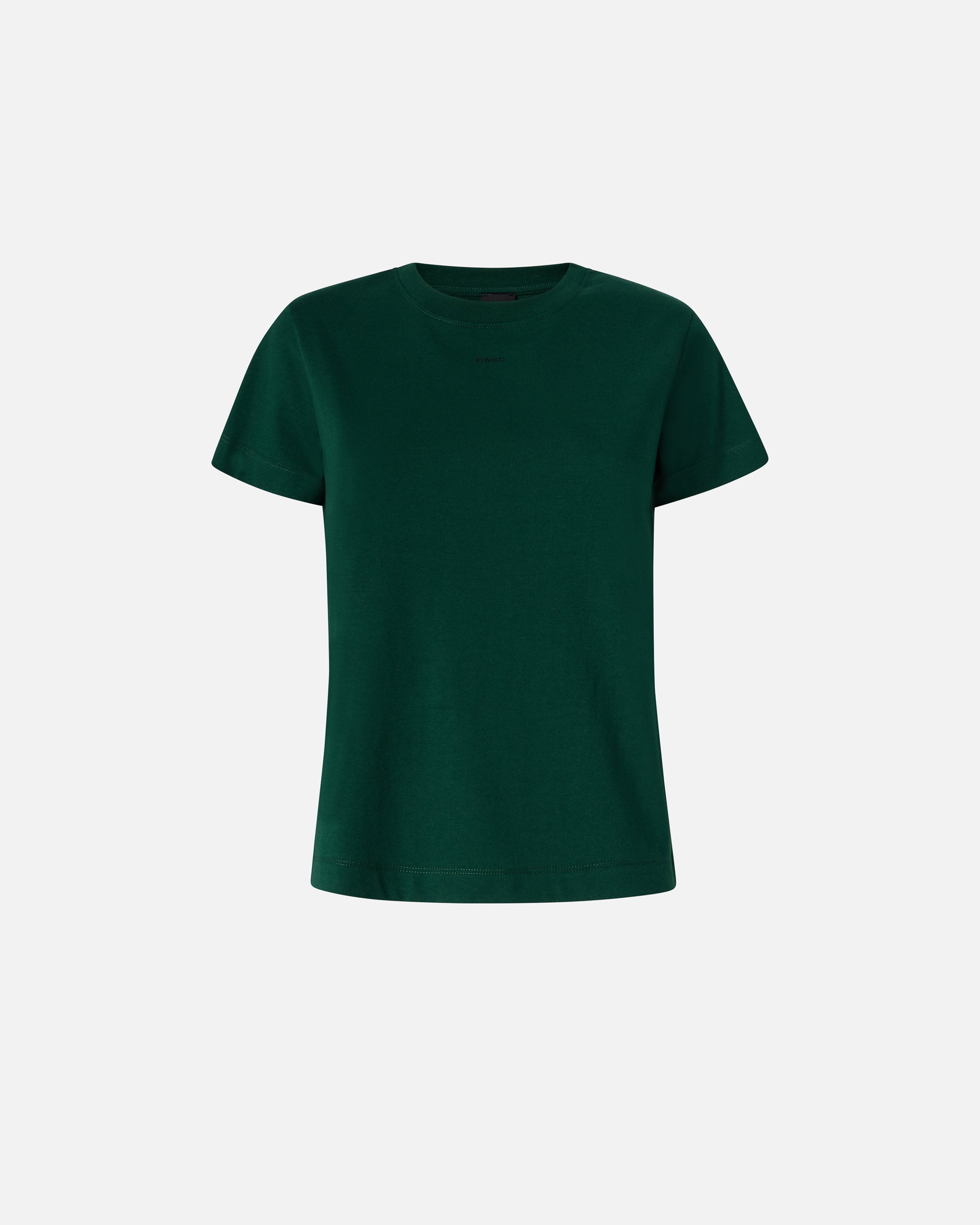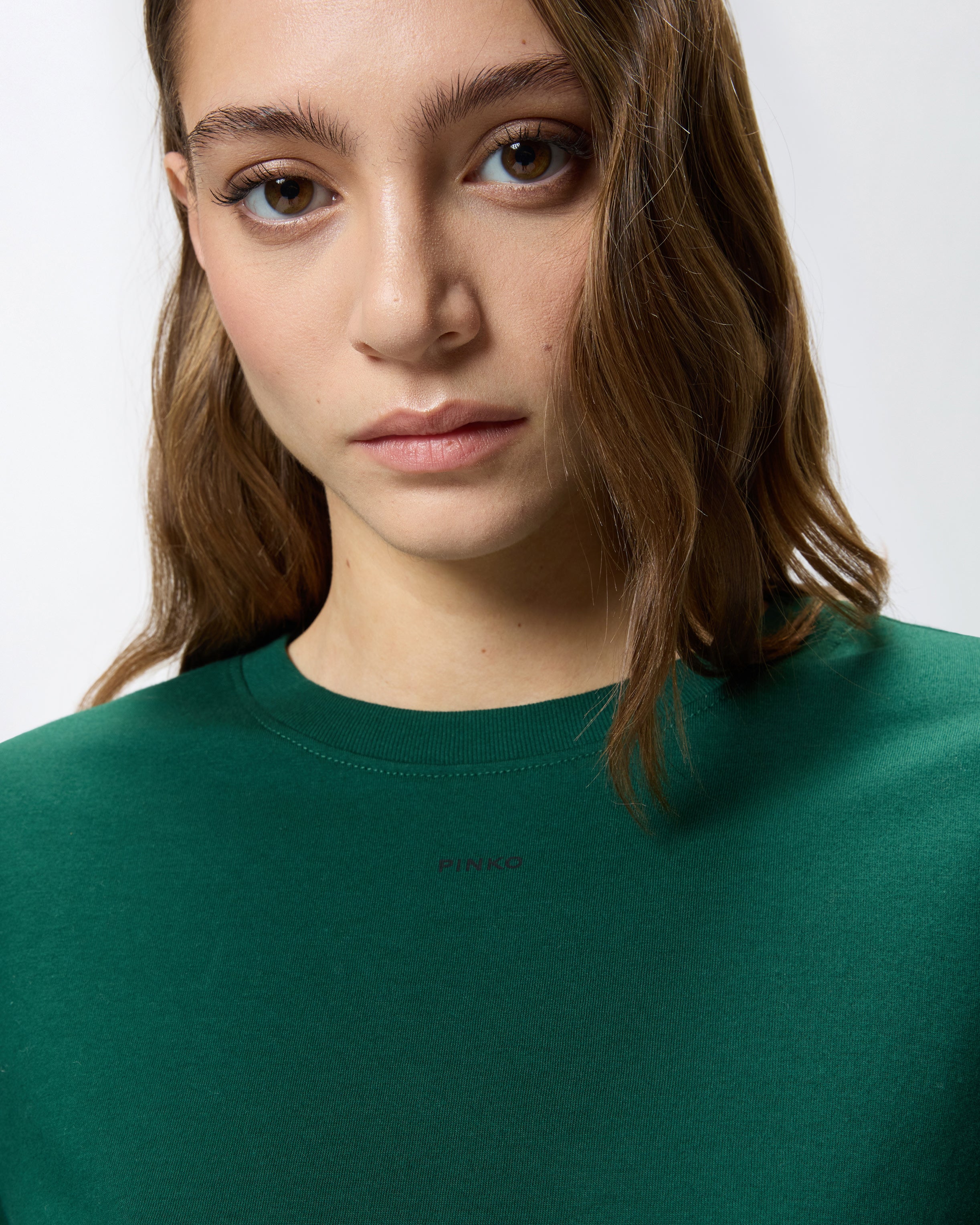 Slightly slim-fitting T-shirt in cotton jersey, with short sleeves and the small PINKO lettering logo print on the front. This T-shirt will work seamlessly with your favourite trousers, elevating your look in a simple, elegant and original way.