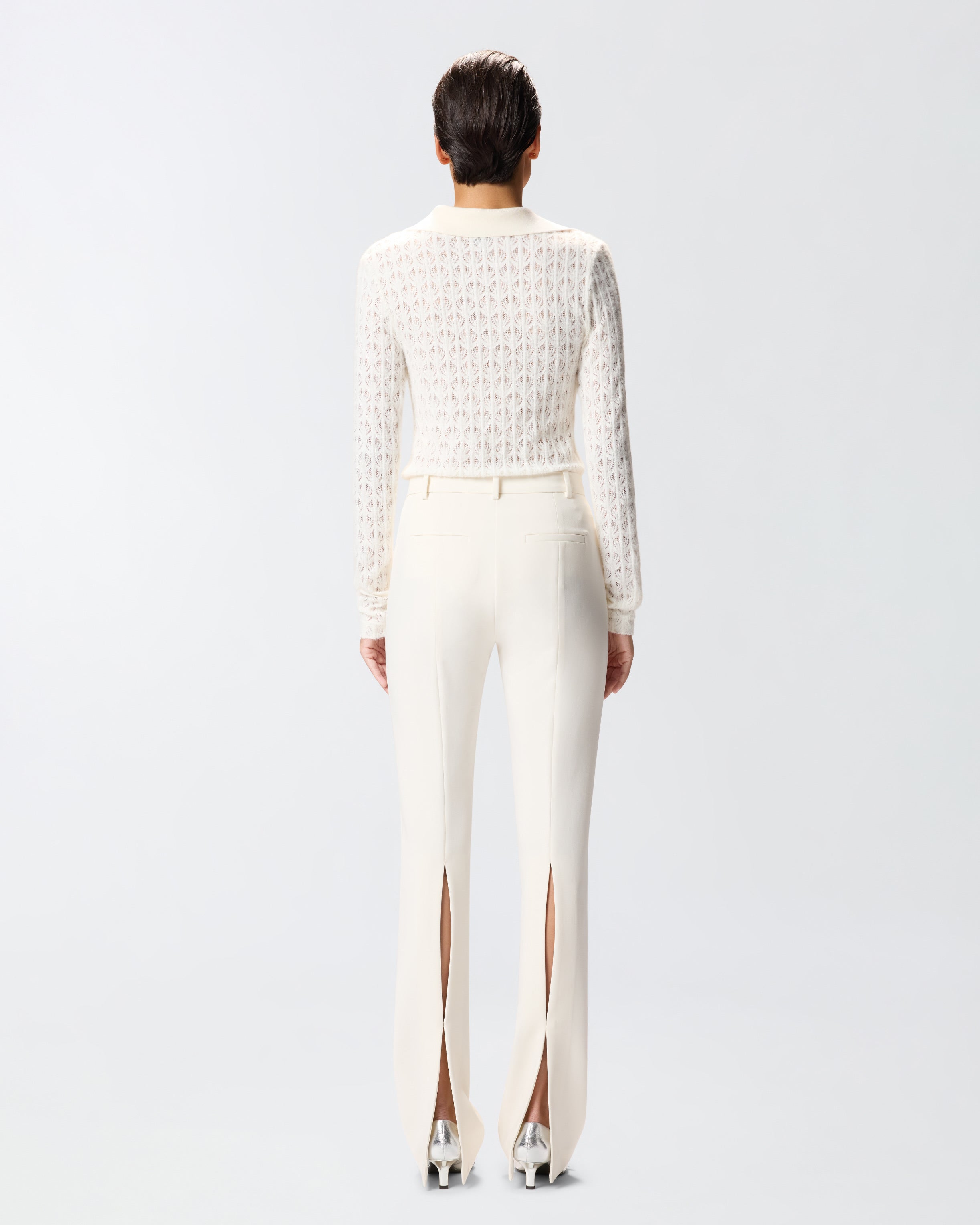 Long slim-fit trousers featuring a slit on the back that starts at the knee and can be adjusted with a half-length button to adjust the opening. The technical viscose fabric manages to combine softness and fluidity to create a sophisticated texture that offers optimal comfort and fit, without losing the structured appearance of the design. Clean and contemporary lines are the key detail of this minimalist model.