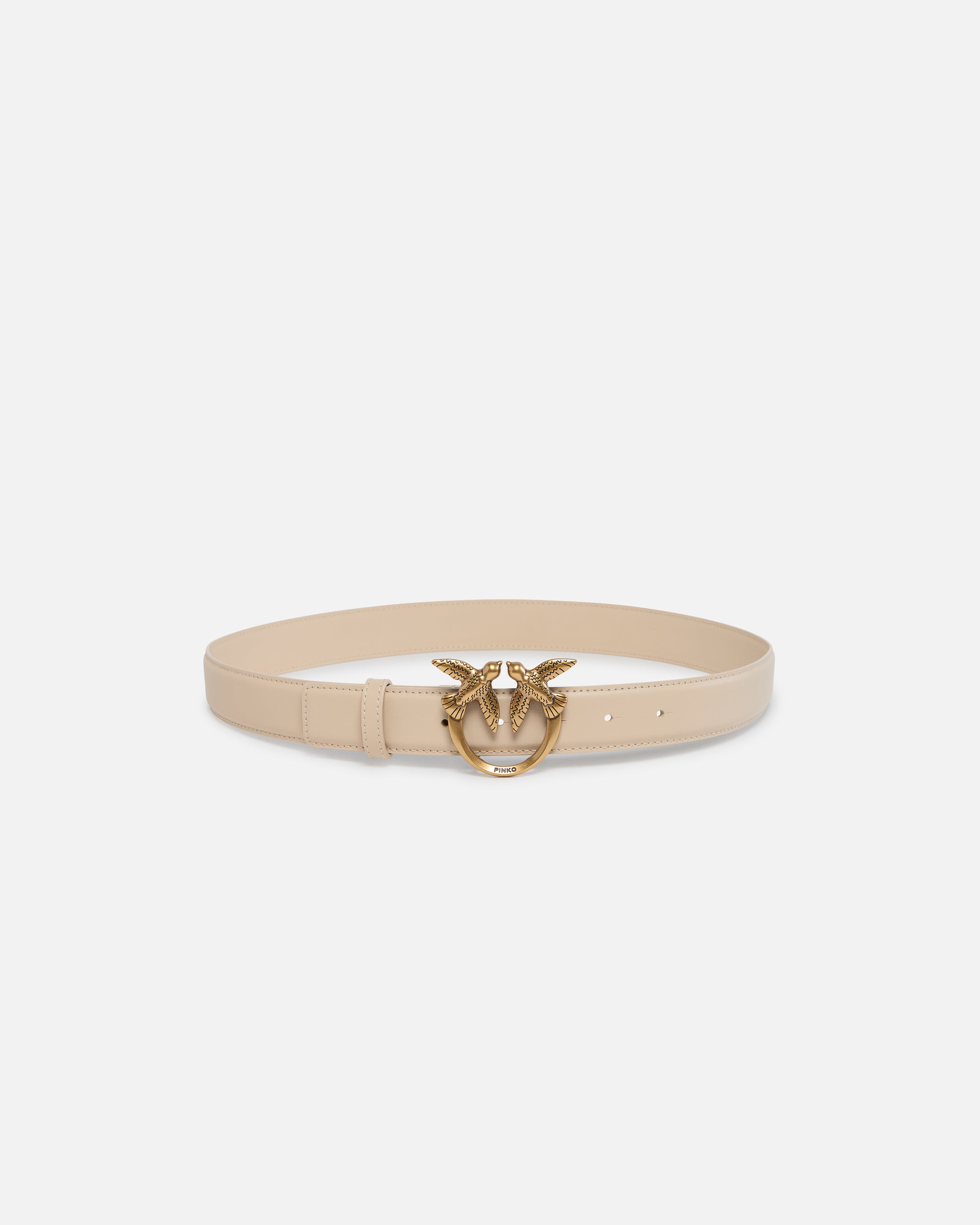 Belt in soft, silky leather, with metal Love Birds Diamond Cut buckle.