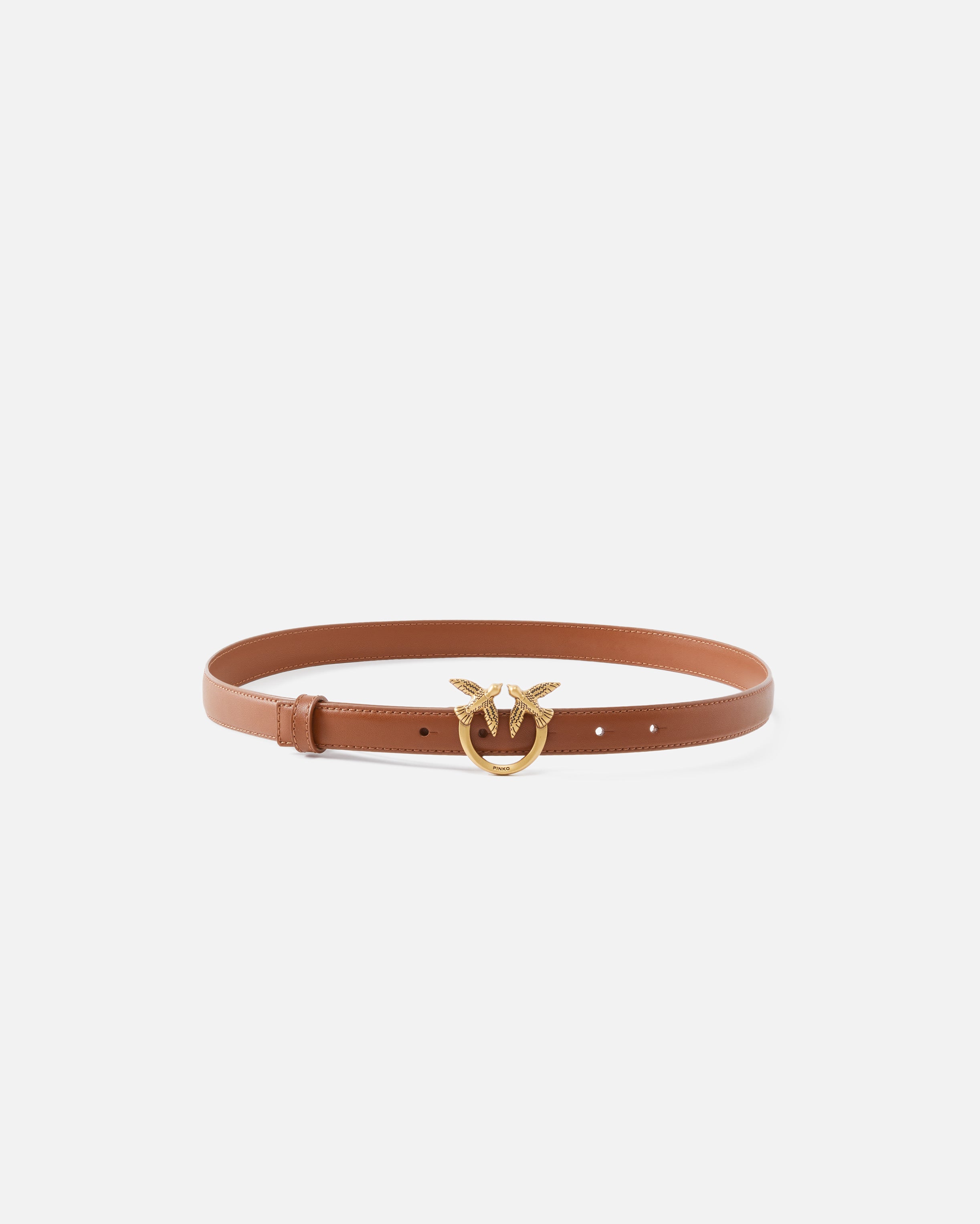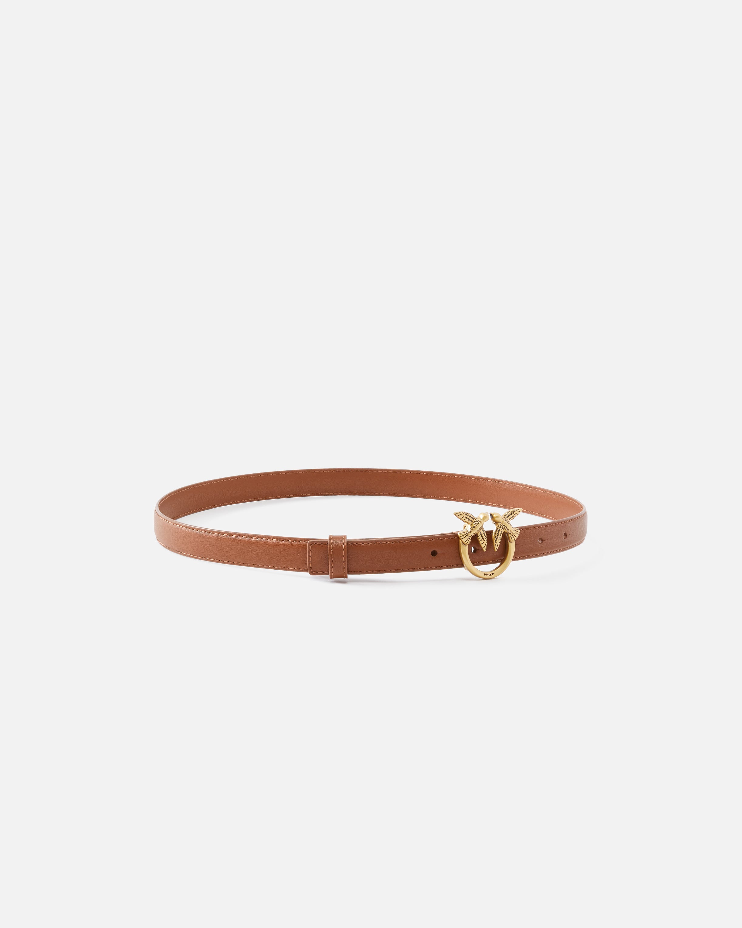 Thin belt in soft, silky leather, with metal Love Birds Diamond Cut buckle.
