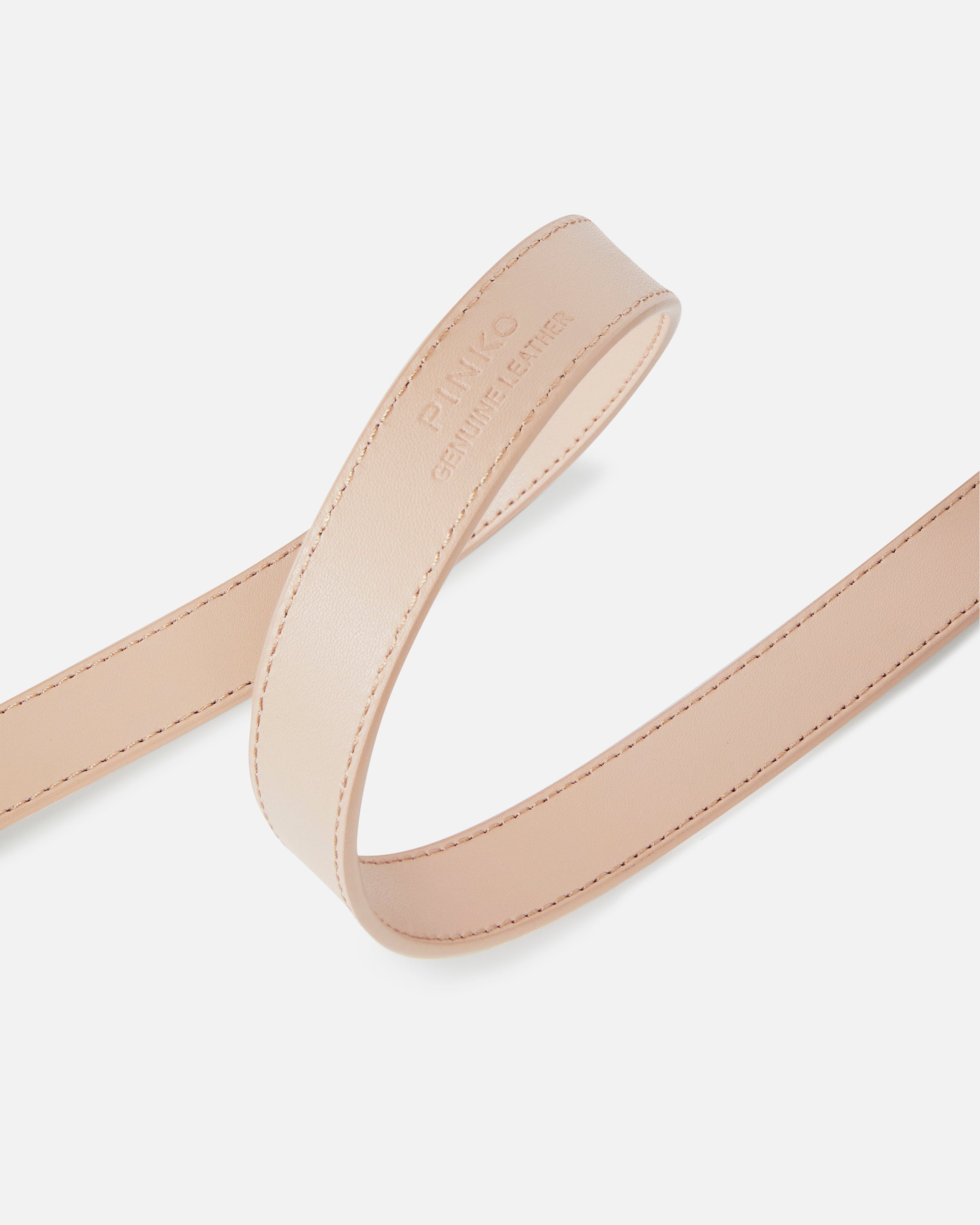 Thin belt in soft, silky leather, with metal Love Birds Diamond Cut buckle.