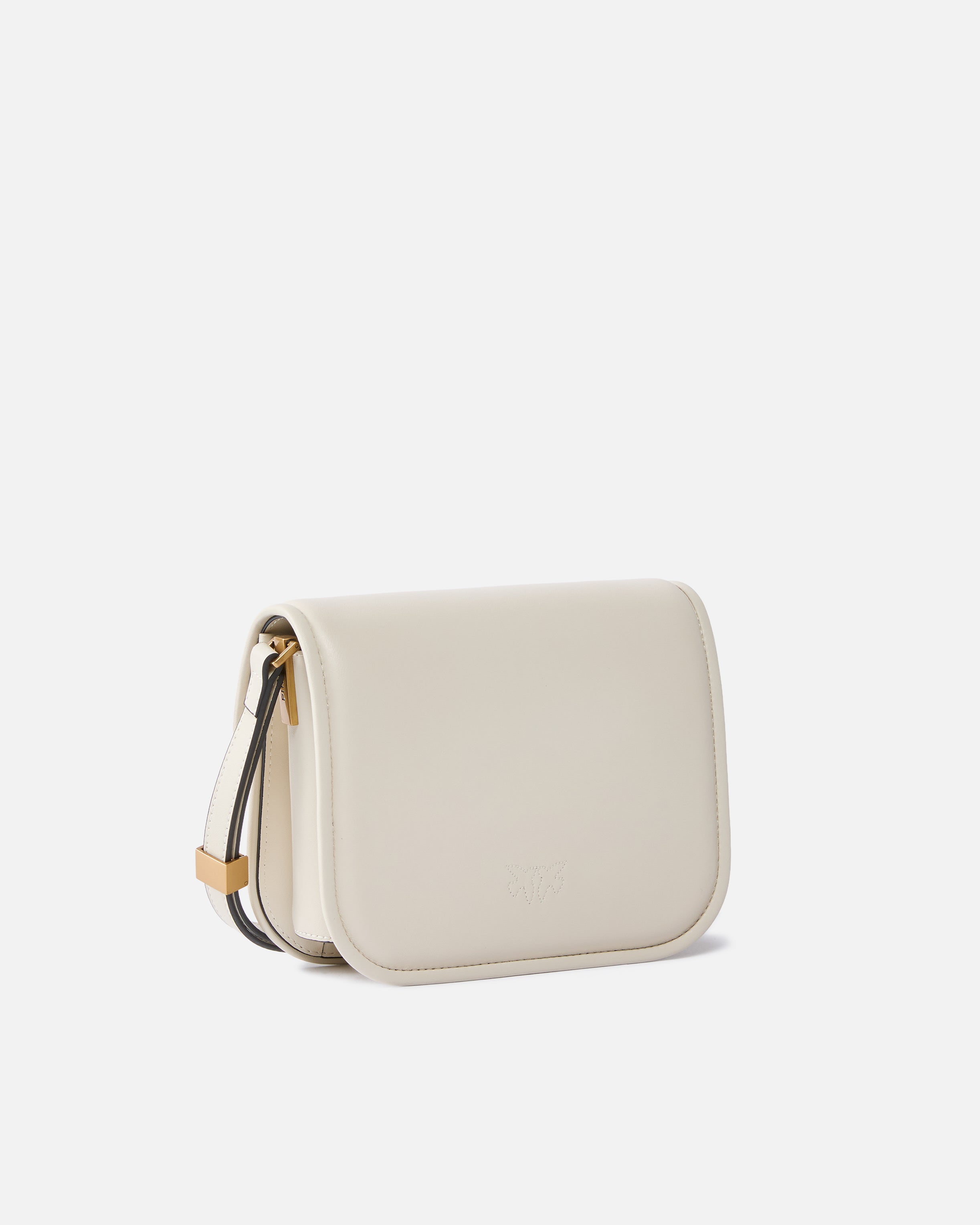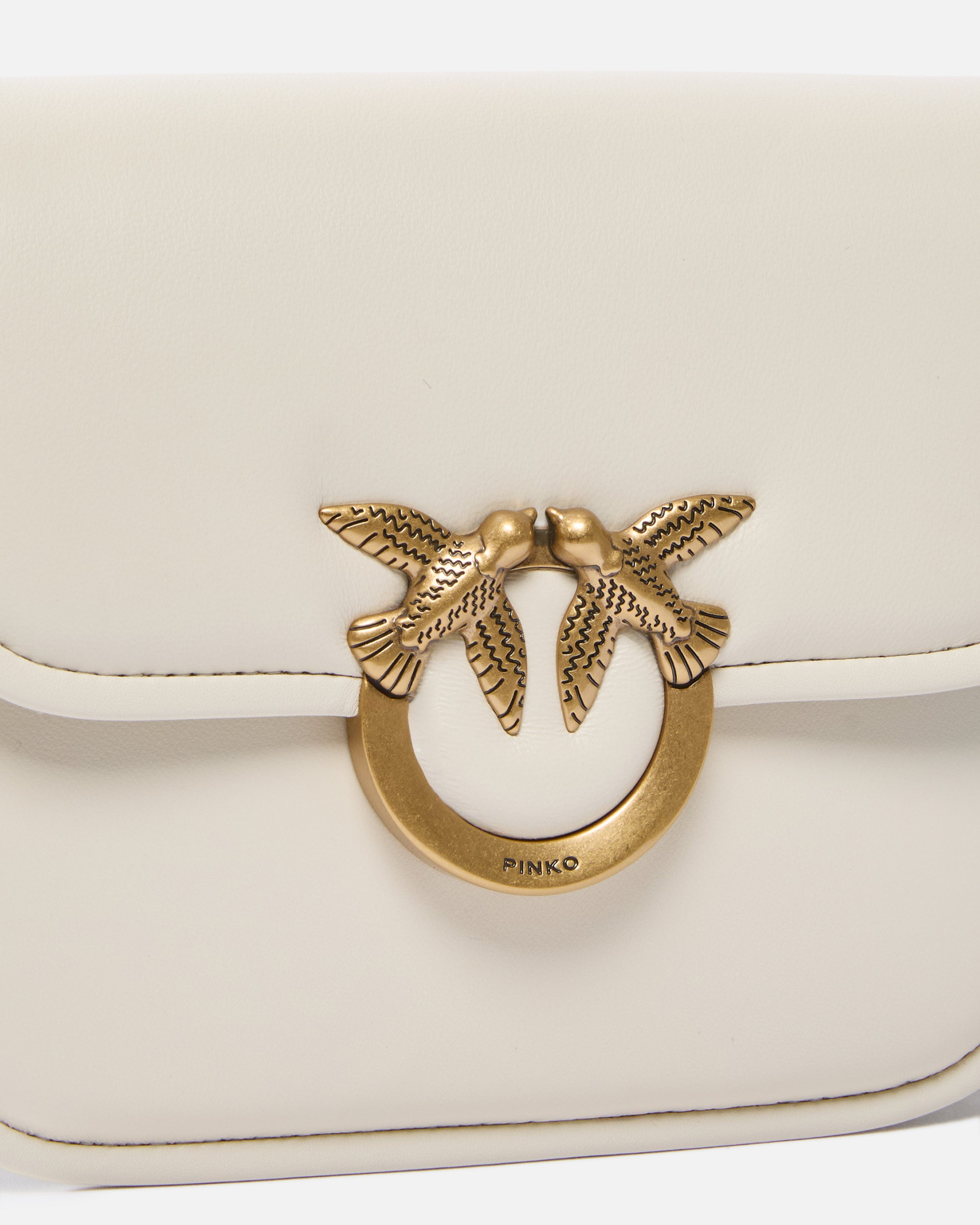 Small shoulder bag characterized by a square Love Bag Box shape made of lightly quilted nappa, which gives the rigid structure a more rounded line. The closure of the bag is completed by a golden metal buckle with Love Birds Diamond Cut bird logo on the flap. The inside of the mini bag is lined in cotton drill fabric and includes a practical wall pocket closed with zip. The fixed leather shoulder strap is adjustable to customize the carrying on the shoulder or by hand. Activate your PINKO bag: check the authenticity of your product and access the personalized experience by bringing your smartphone close to the Love Birds embroidery on the back of the bag!