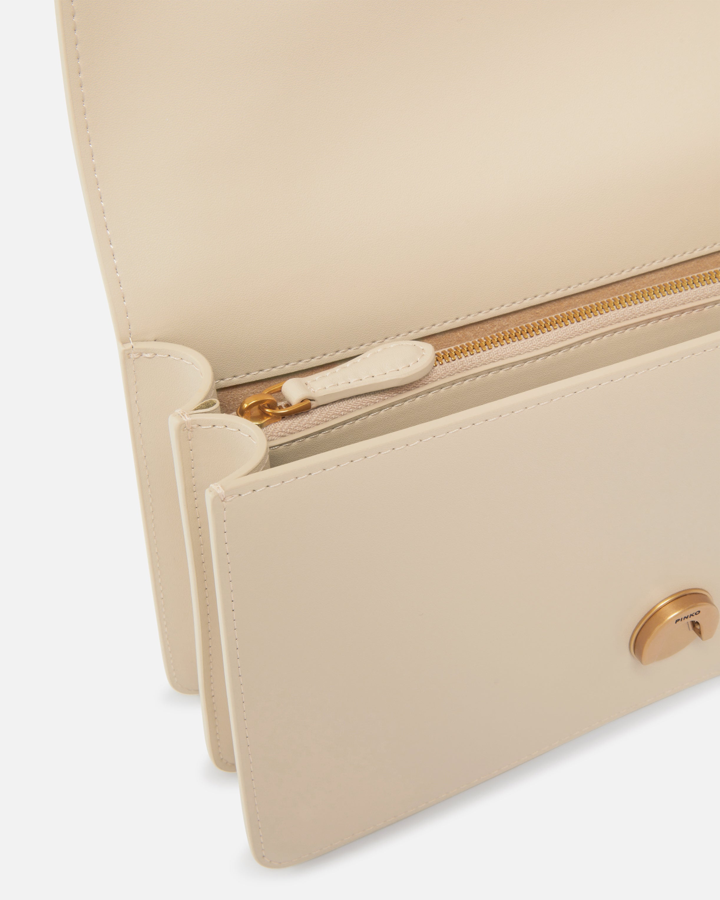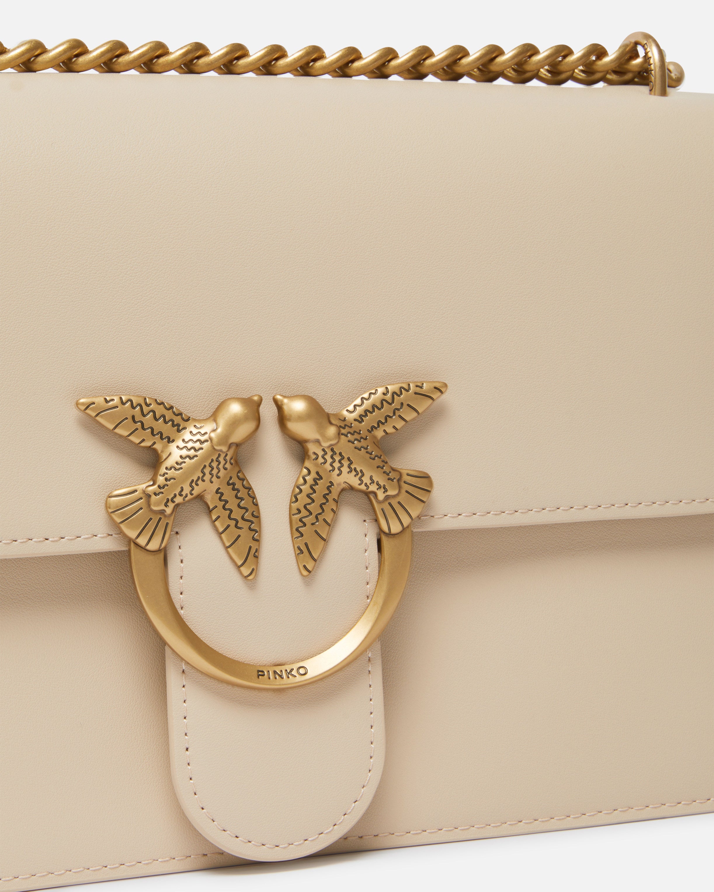Classic Love Bag One in soft, silky leather. The fastening is embellished with the iconic metal Love Birds Diamond Cut buckle. The accessory boasts a suede microfibre-lined interior, complete with a zipped centre divider pocket and leather slip pocket. The shoulder strap combines the classic round-link chain with a practical, adjustable leather shoulder pad.
