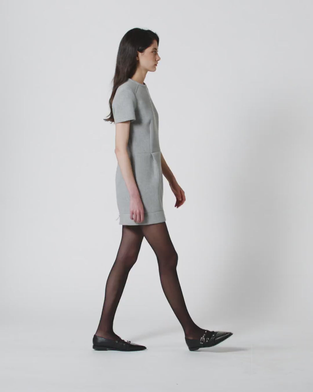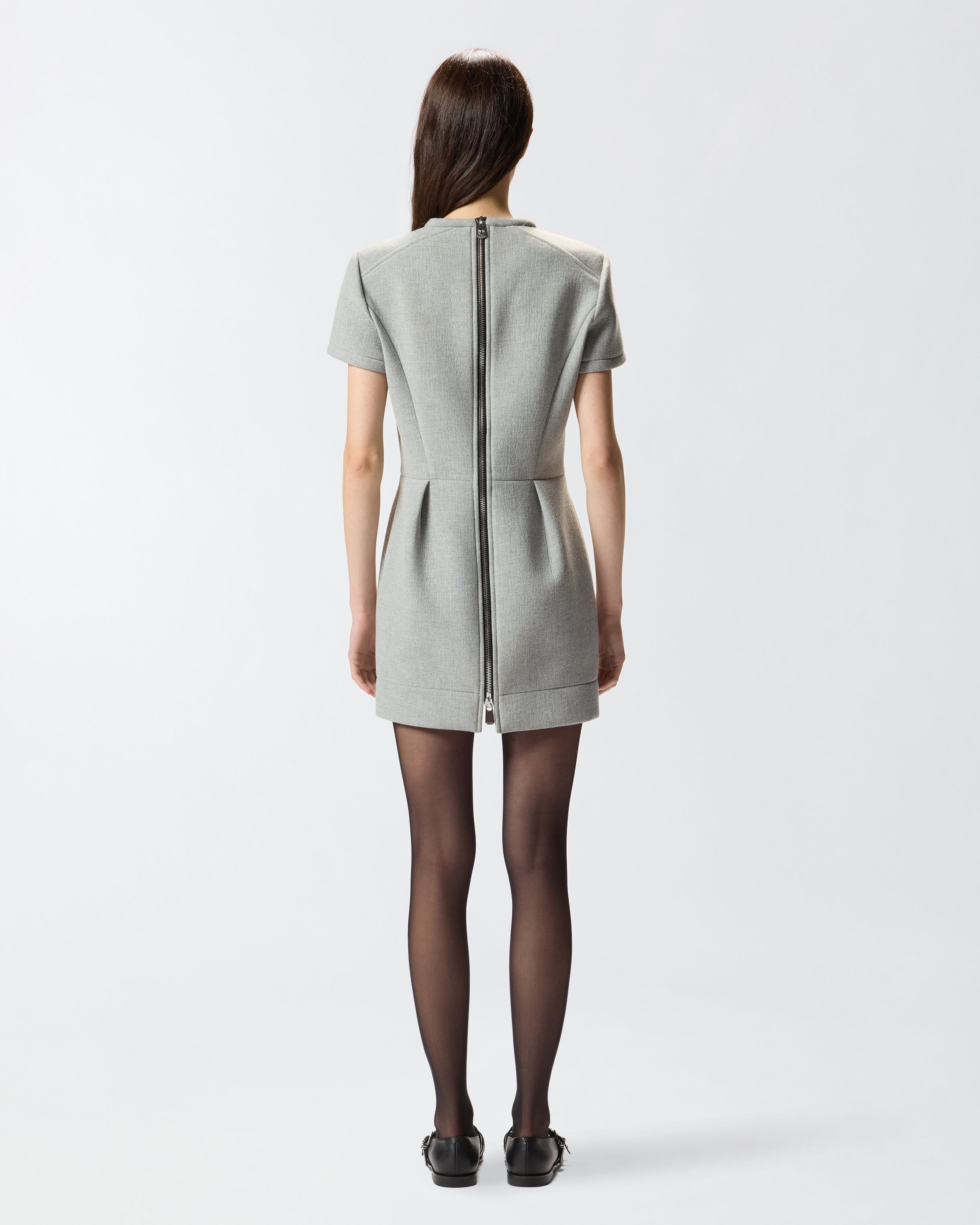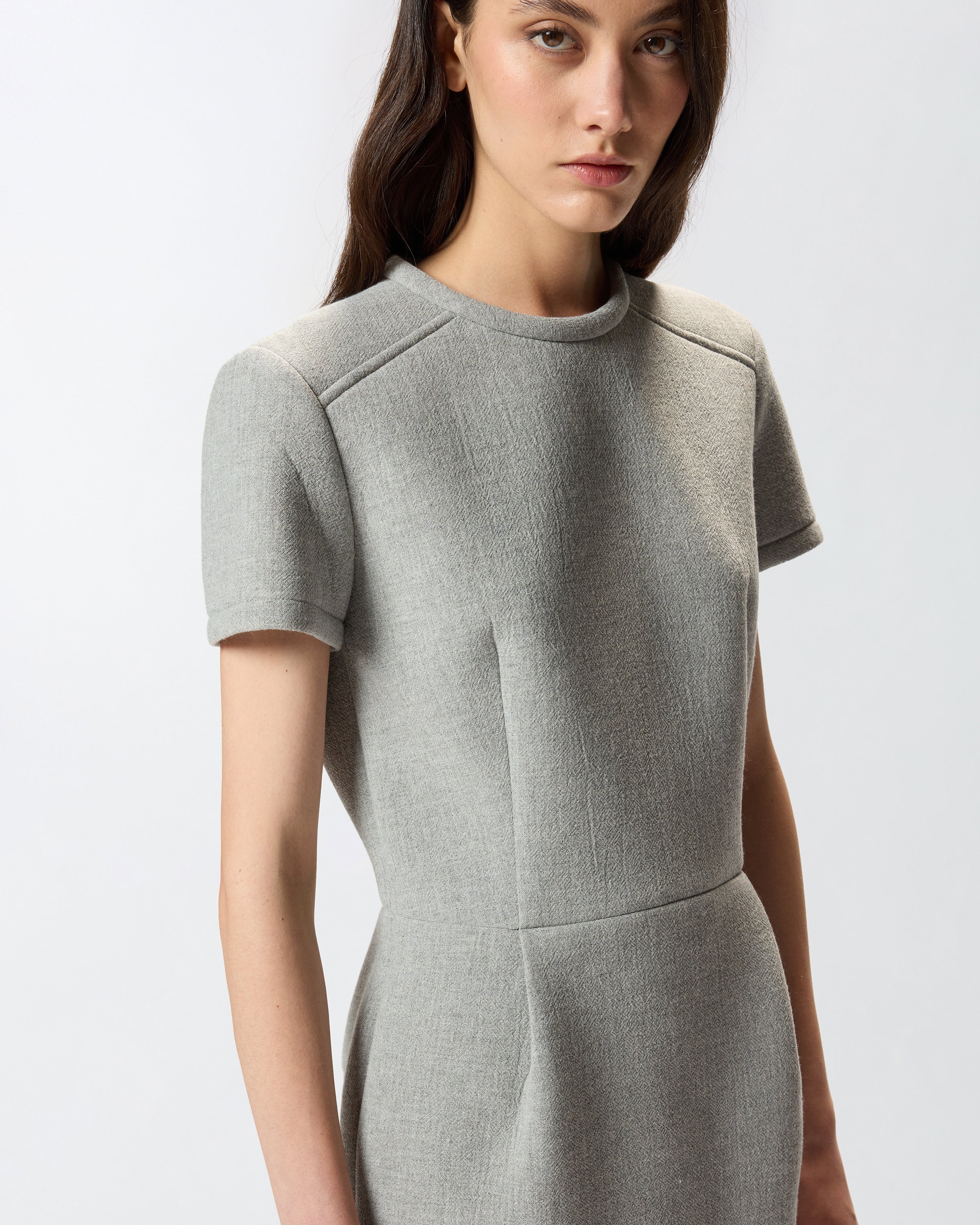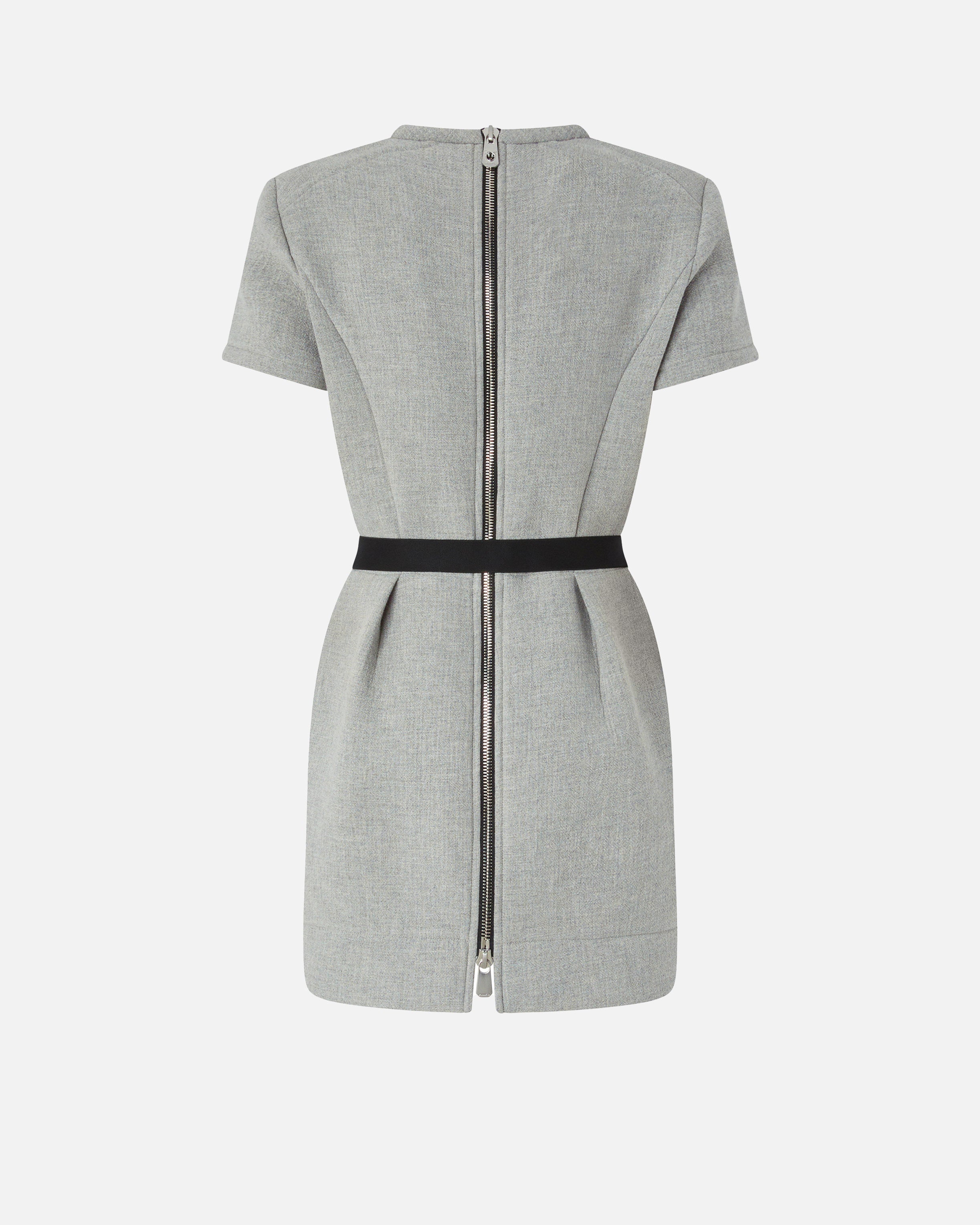Short-sleeved fitted-waist mini dress in washed and bonded wool gauze with two-way zip fastening in the middle on the back. The fabric gives the garment a modern, compact effect, while the structured design delivers the perfect proportions for everyday looks. The finishing touch is provided by the removable fabric waist belt featuring the Love Birds logo, a symbol of the brand's singular style.